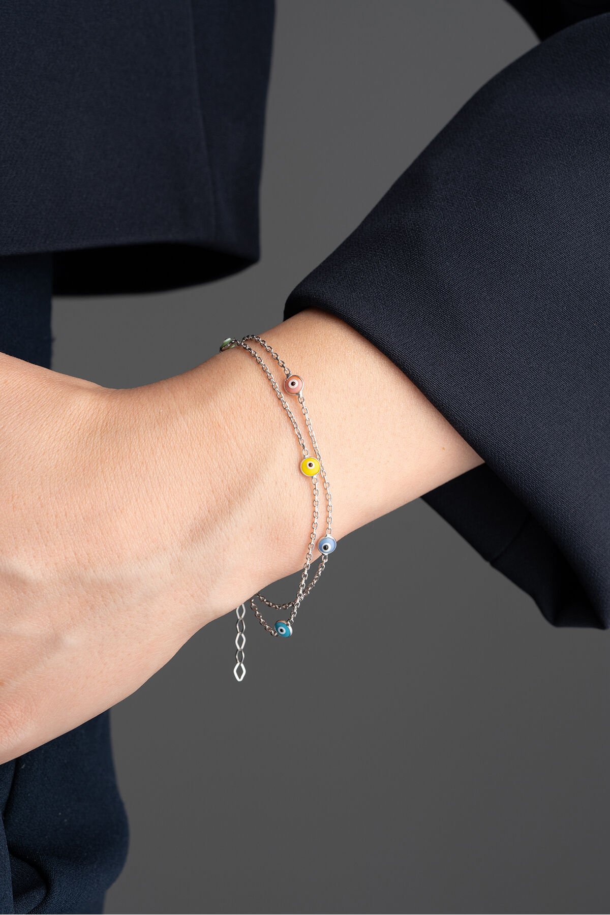 925 Ayar Gümüş Çiftli Renkli Nazar Bileklik