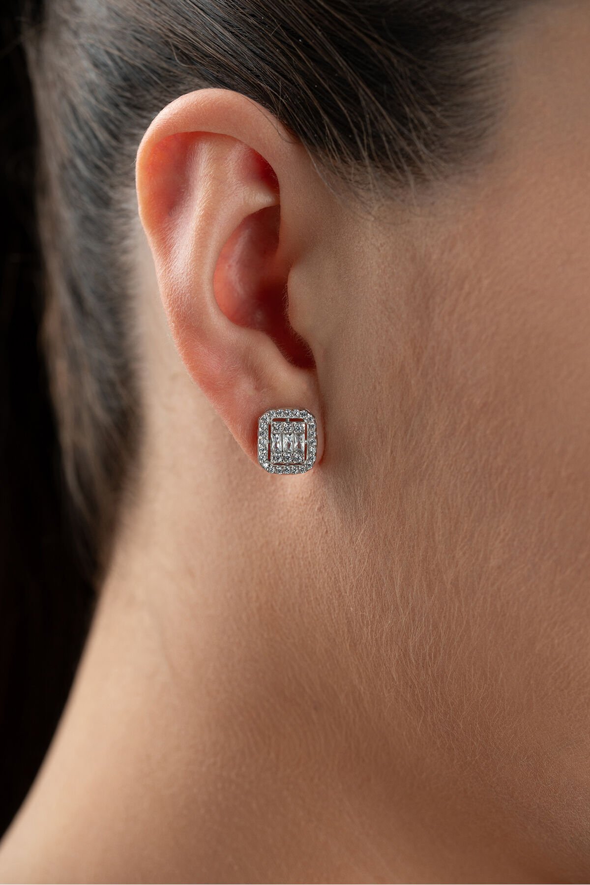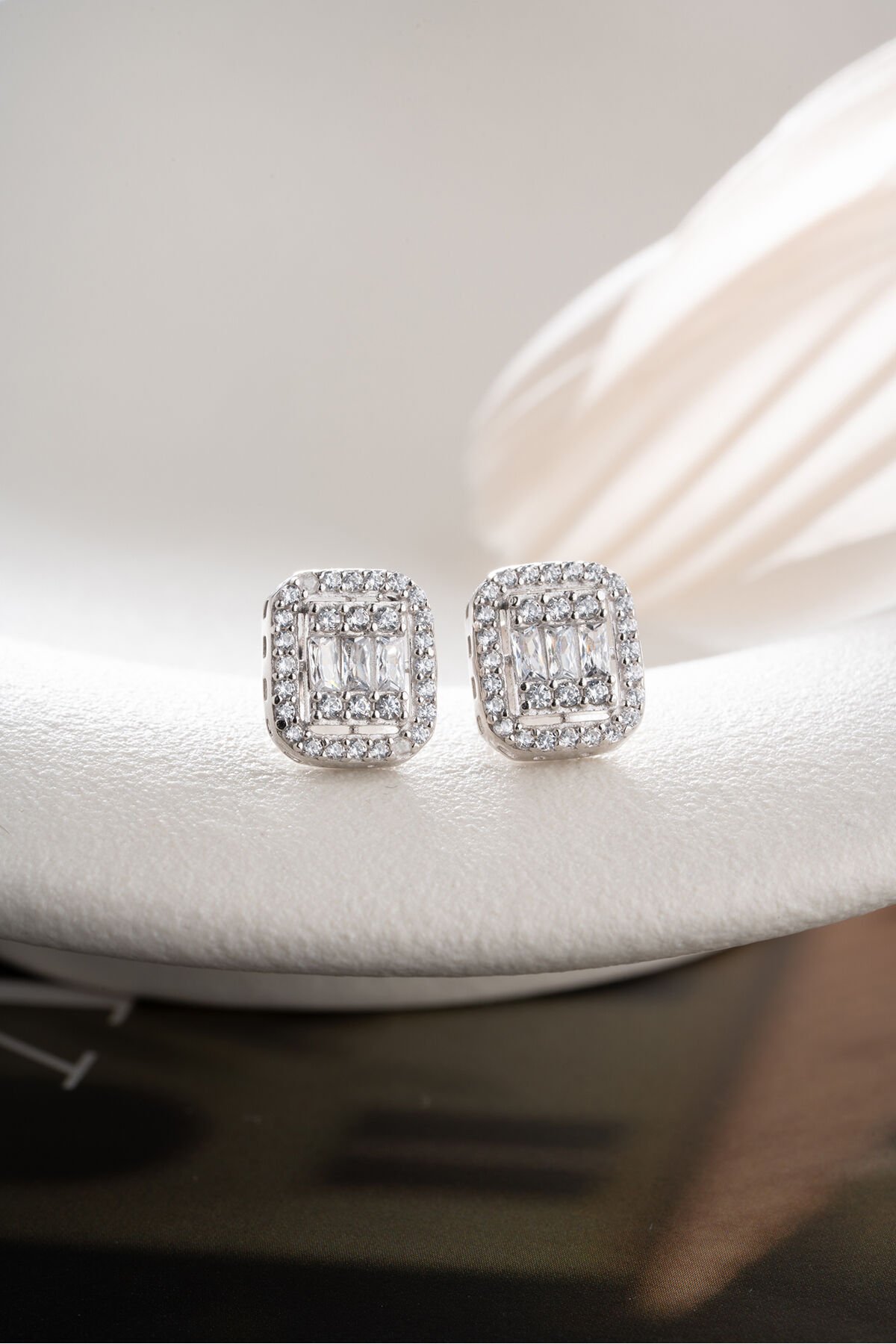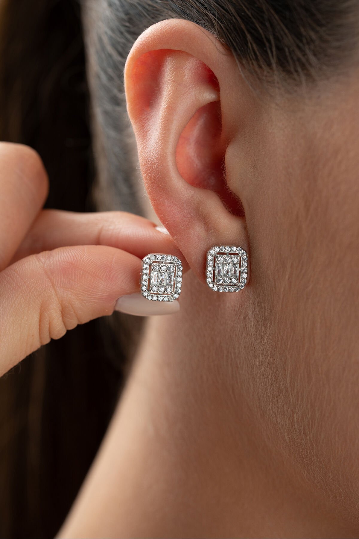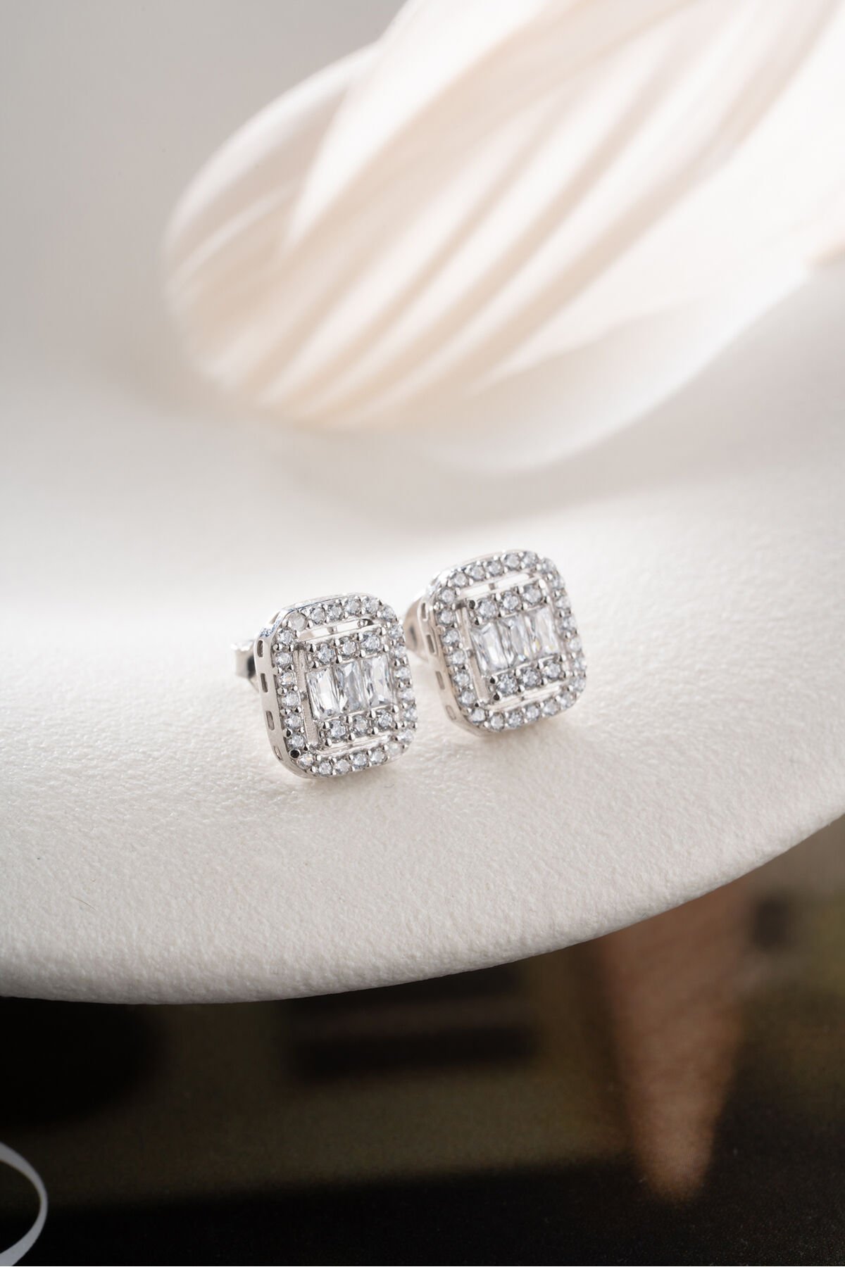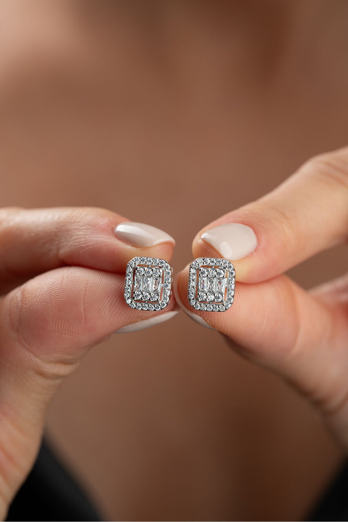925 Ayar Gümüş Çivili Baget Taşlı Küpe