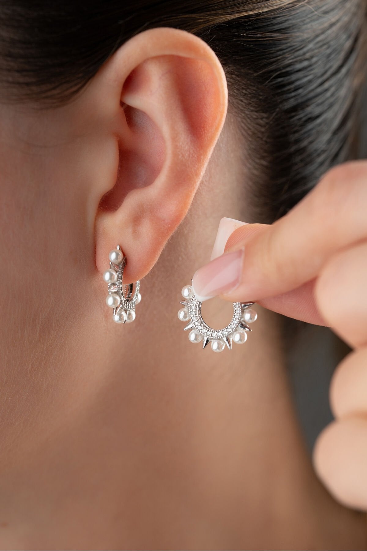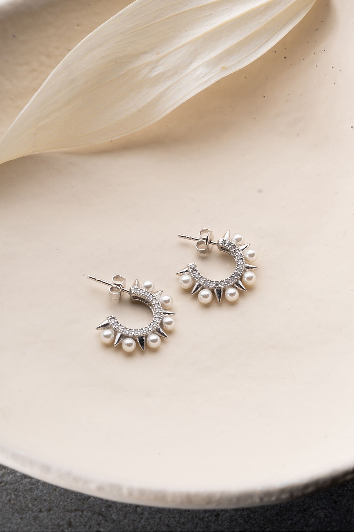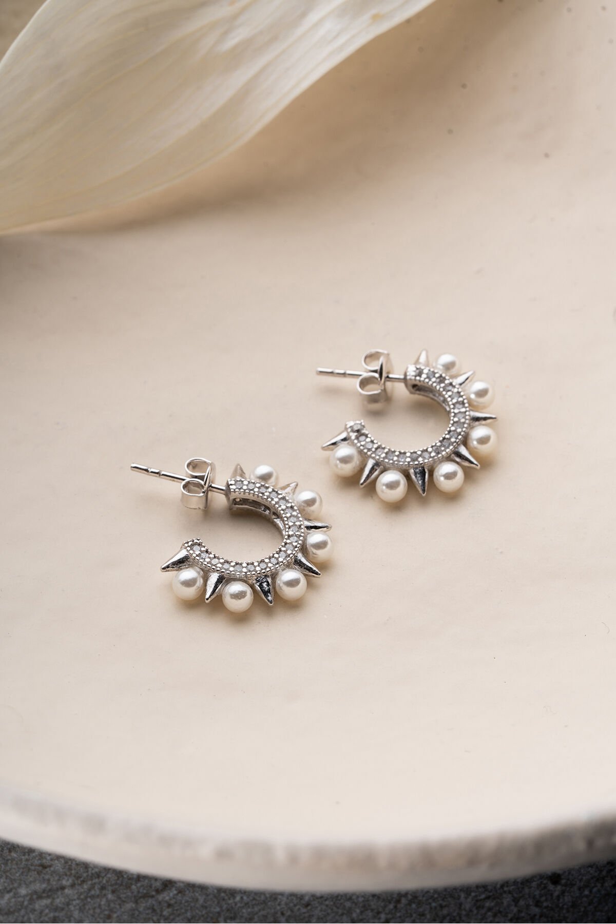 925 Ayar Gümüş Çivili İncili Küpe