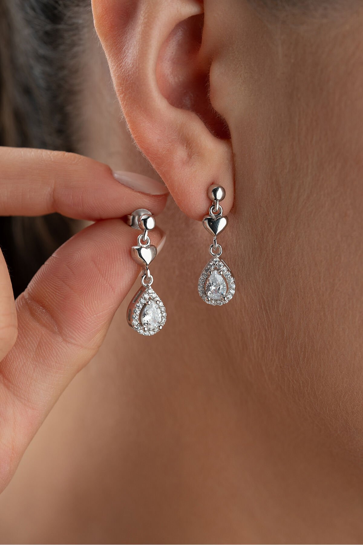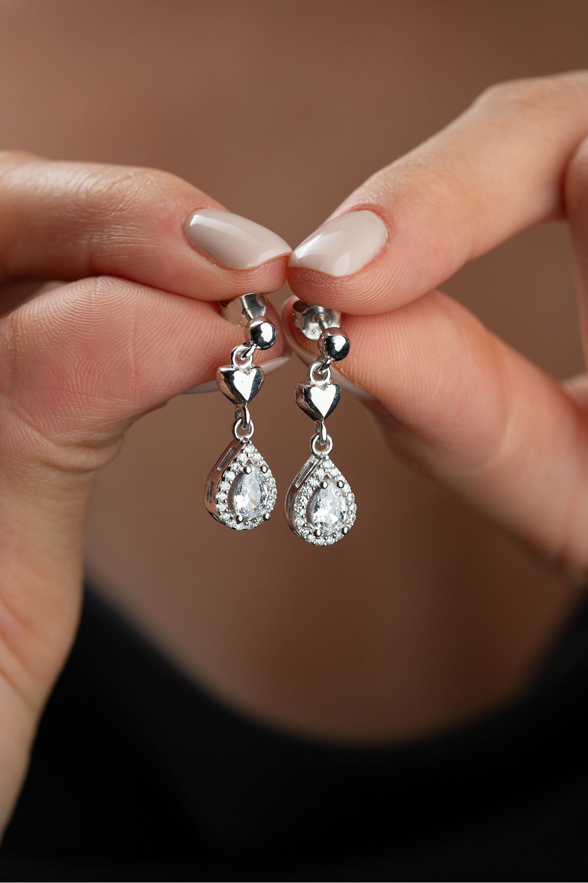 925 Ayar Gümüş Çivili Sallantılı Damla Küpe