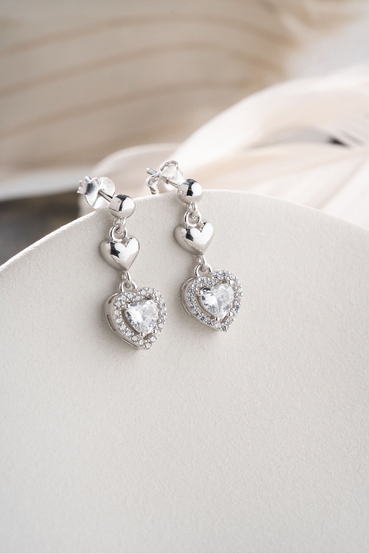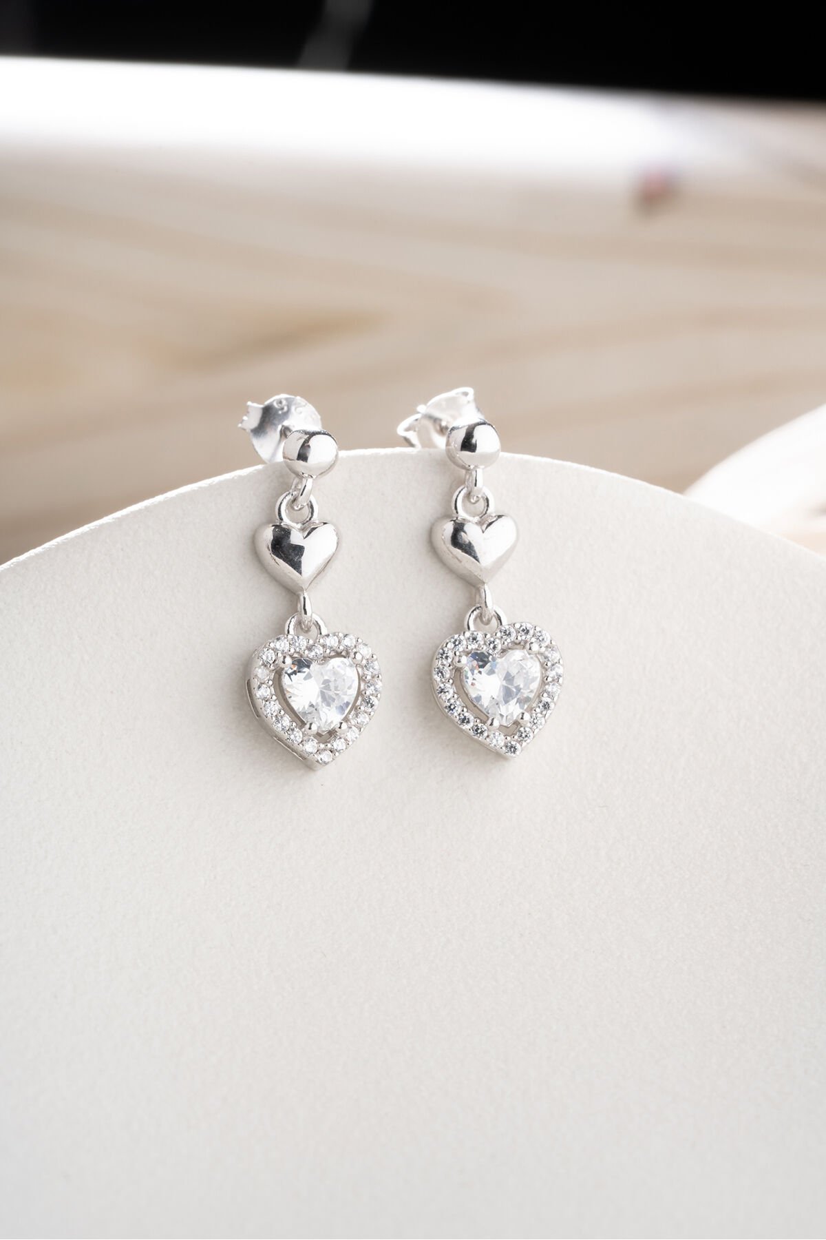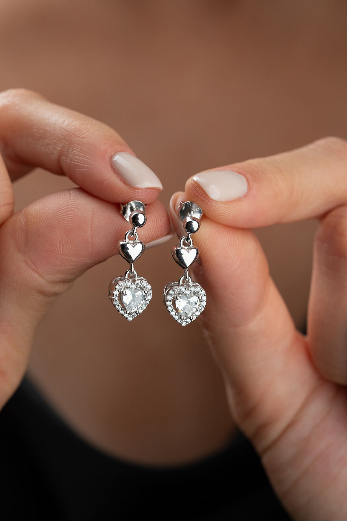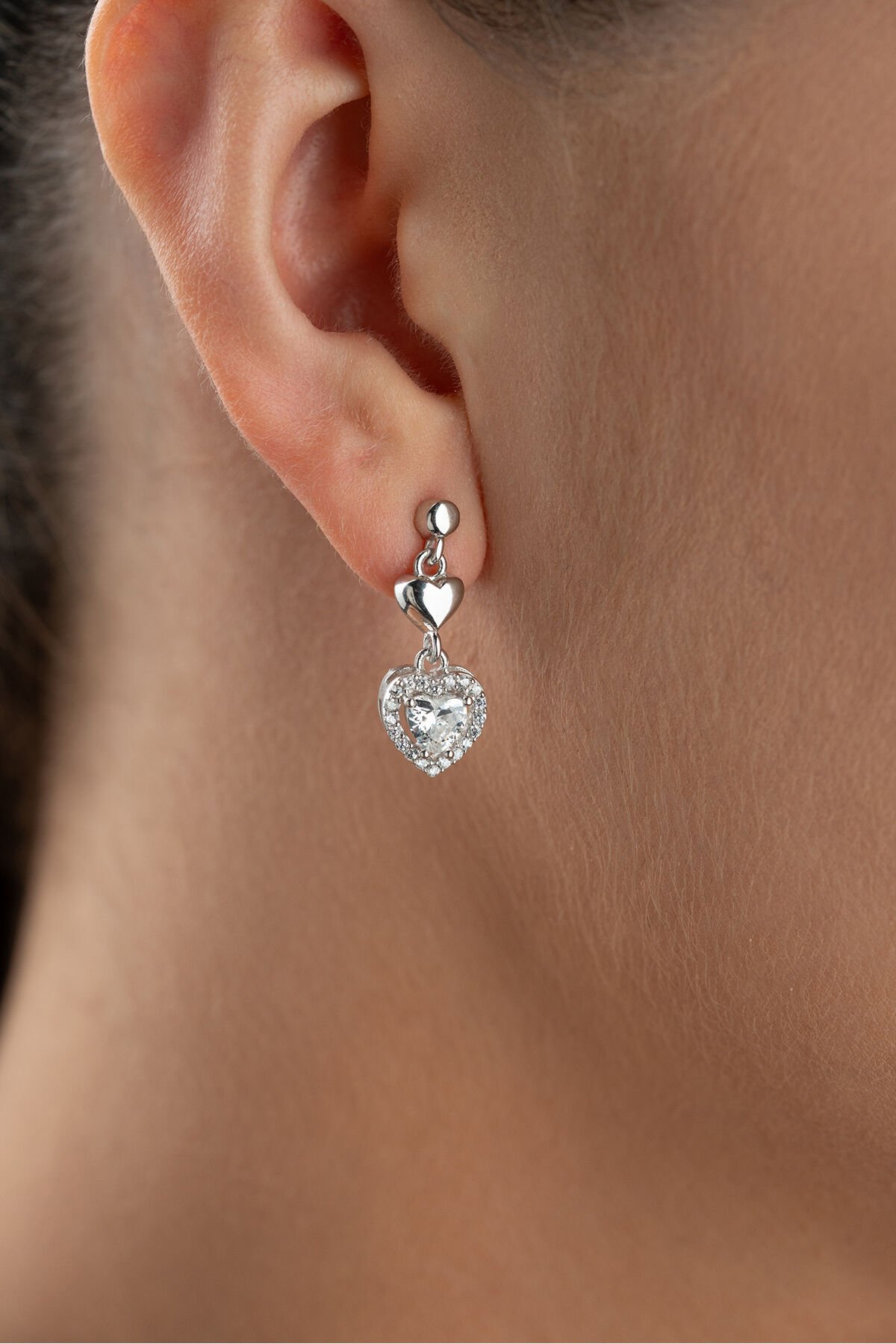 925 Ayar Gümüş Çivili Sallantılı Kalp Küpe