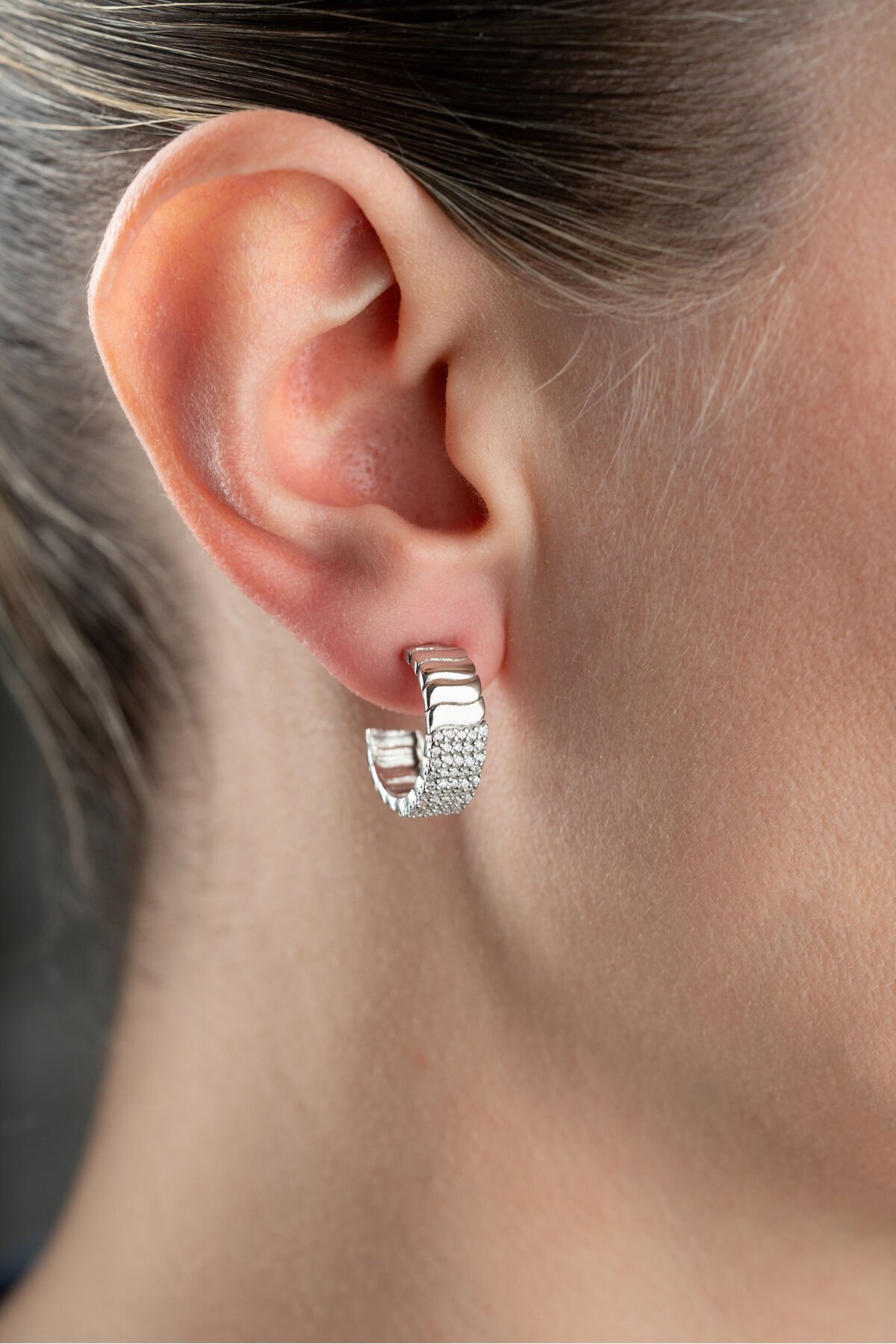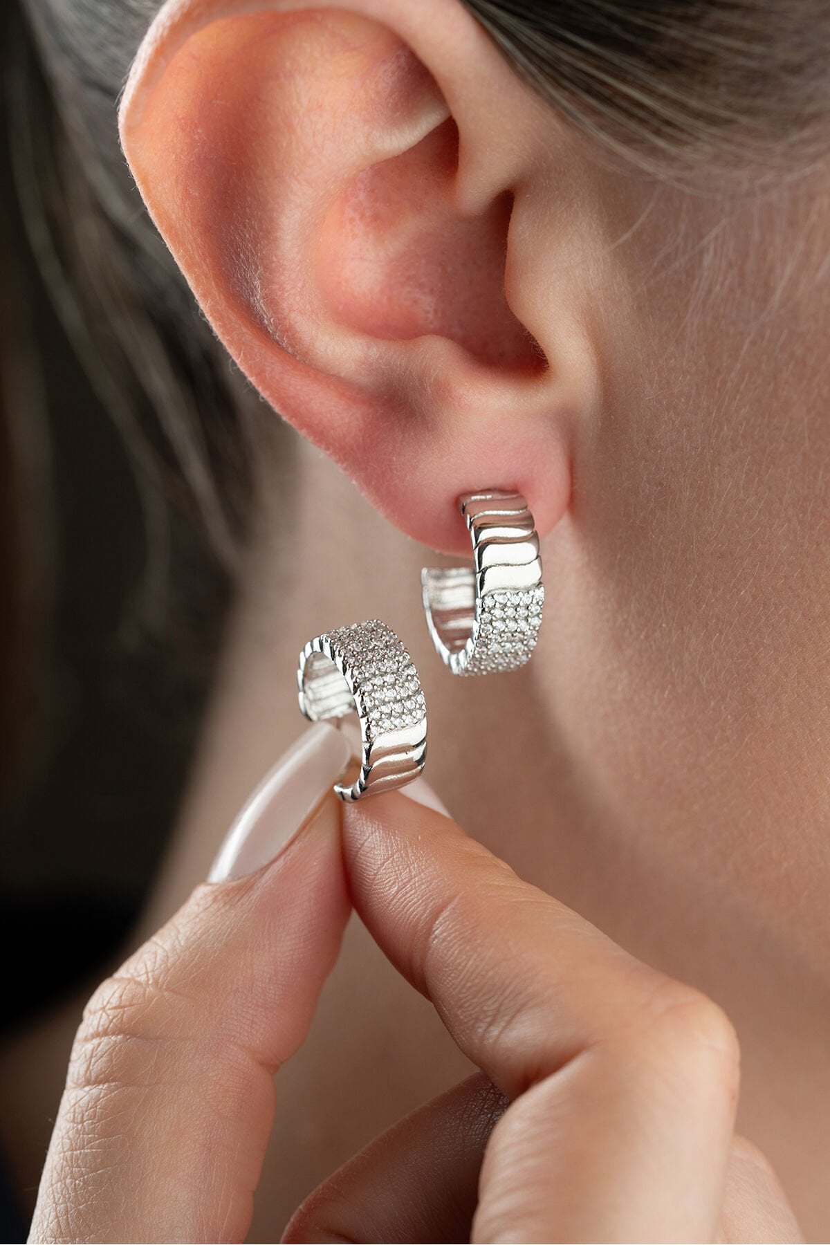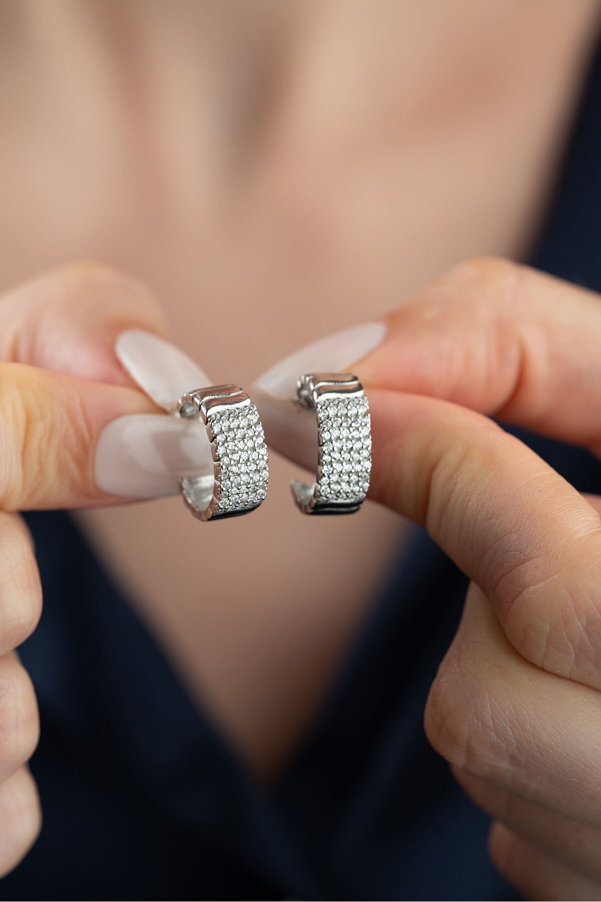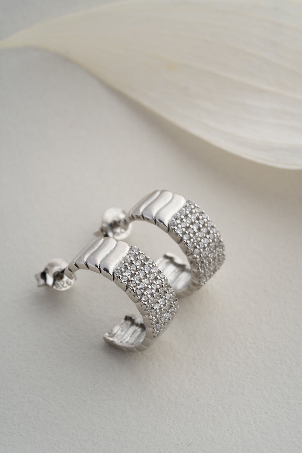 925 Ayar Gümüş Çivili Zirkon Taşlı Küpe