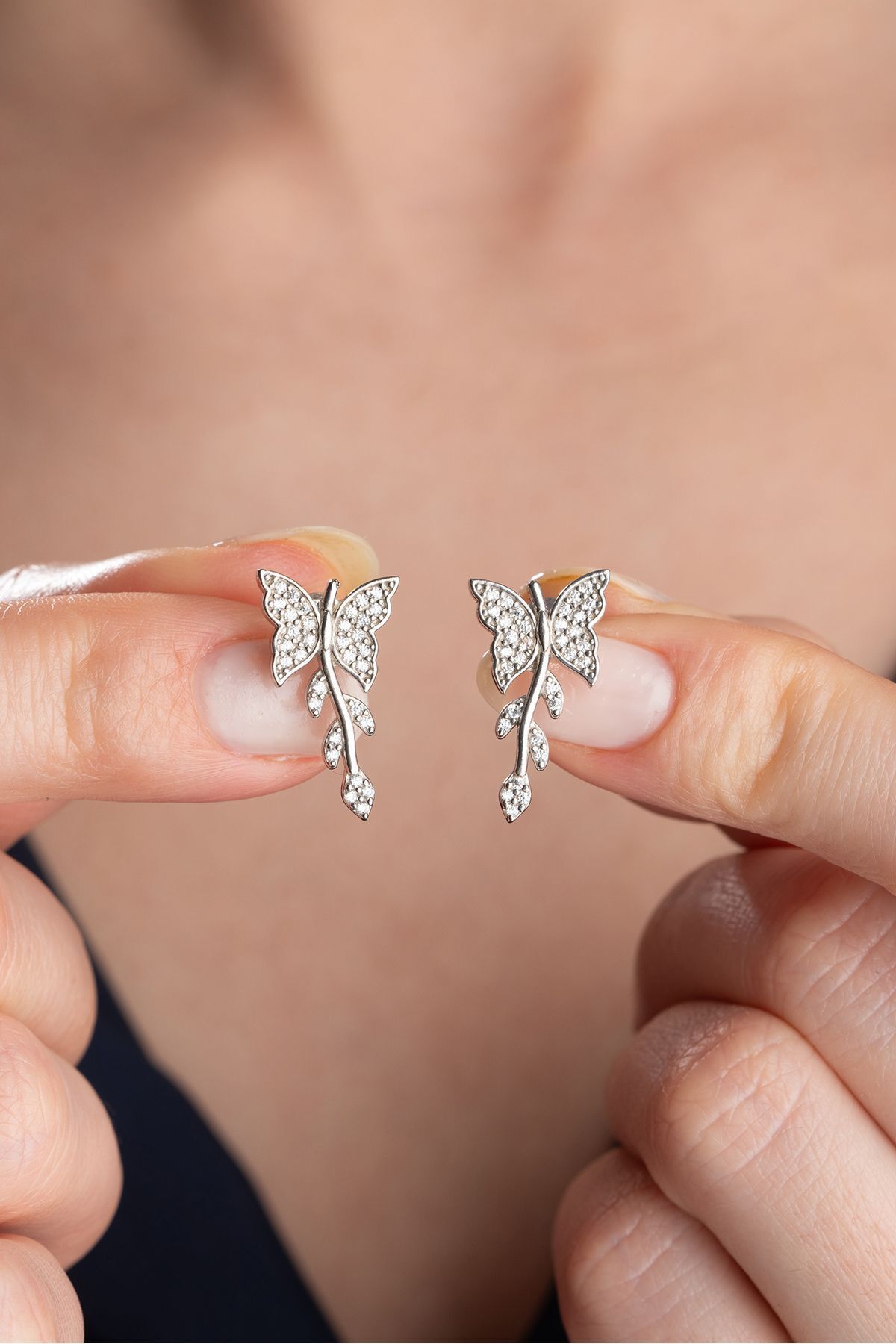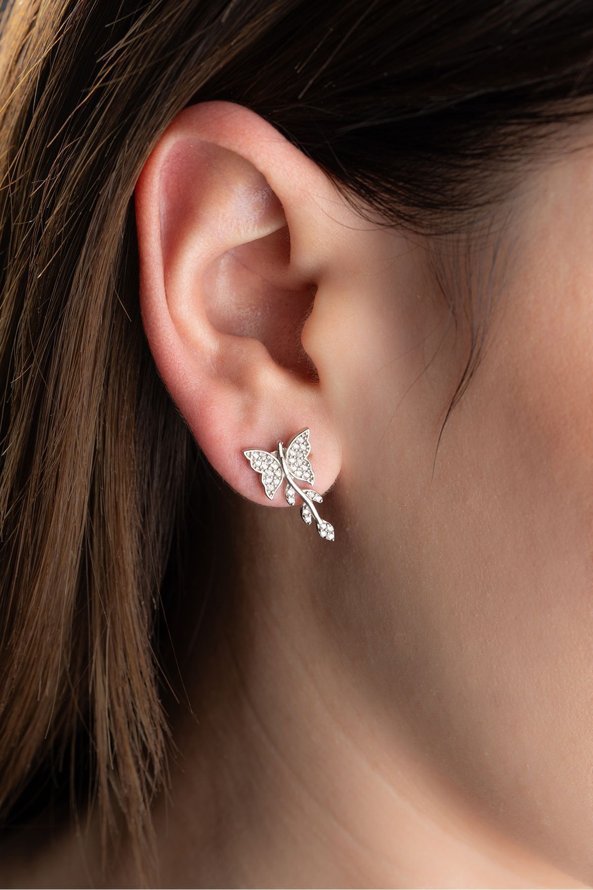 925 Ayar Gümüş Daldaki Kelebek Küpe