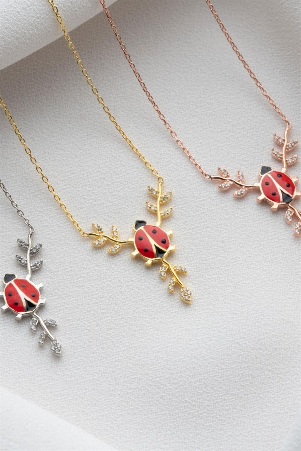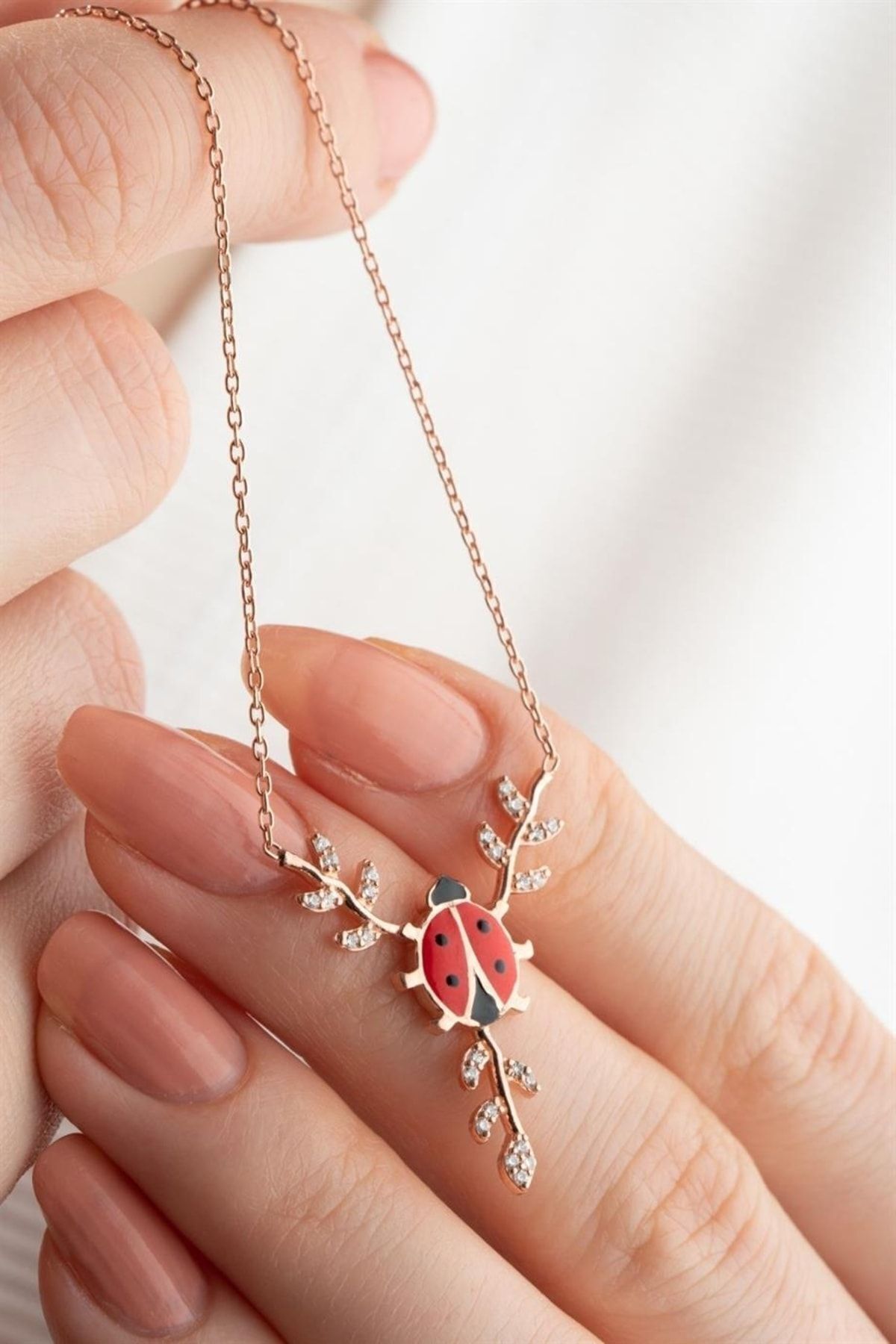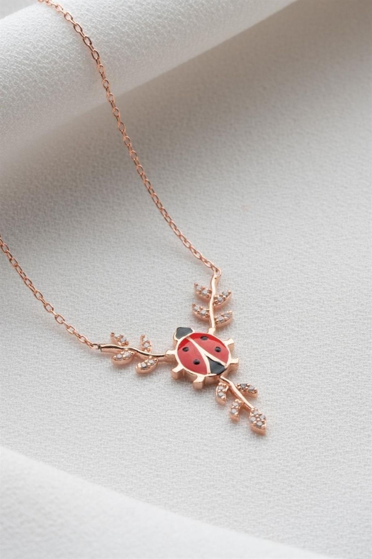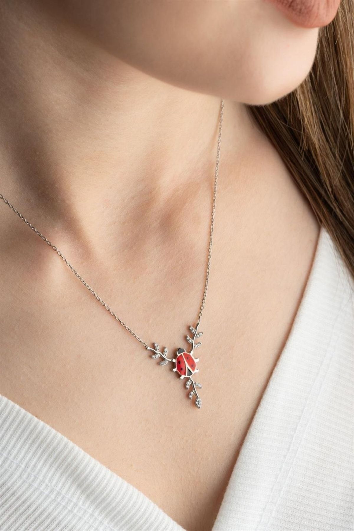 925 Ayar Gümüş Daldaki Uğurböceği Kolye