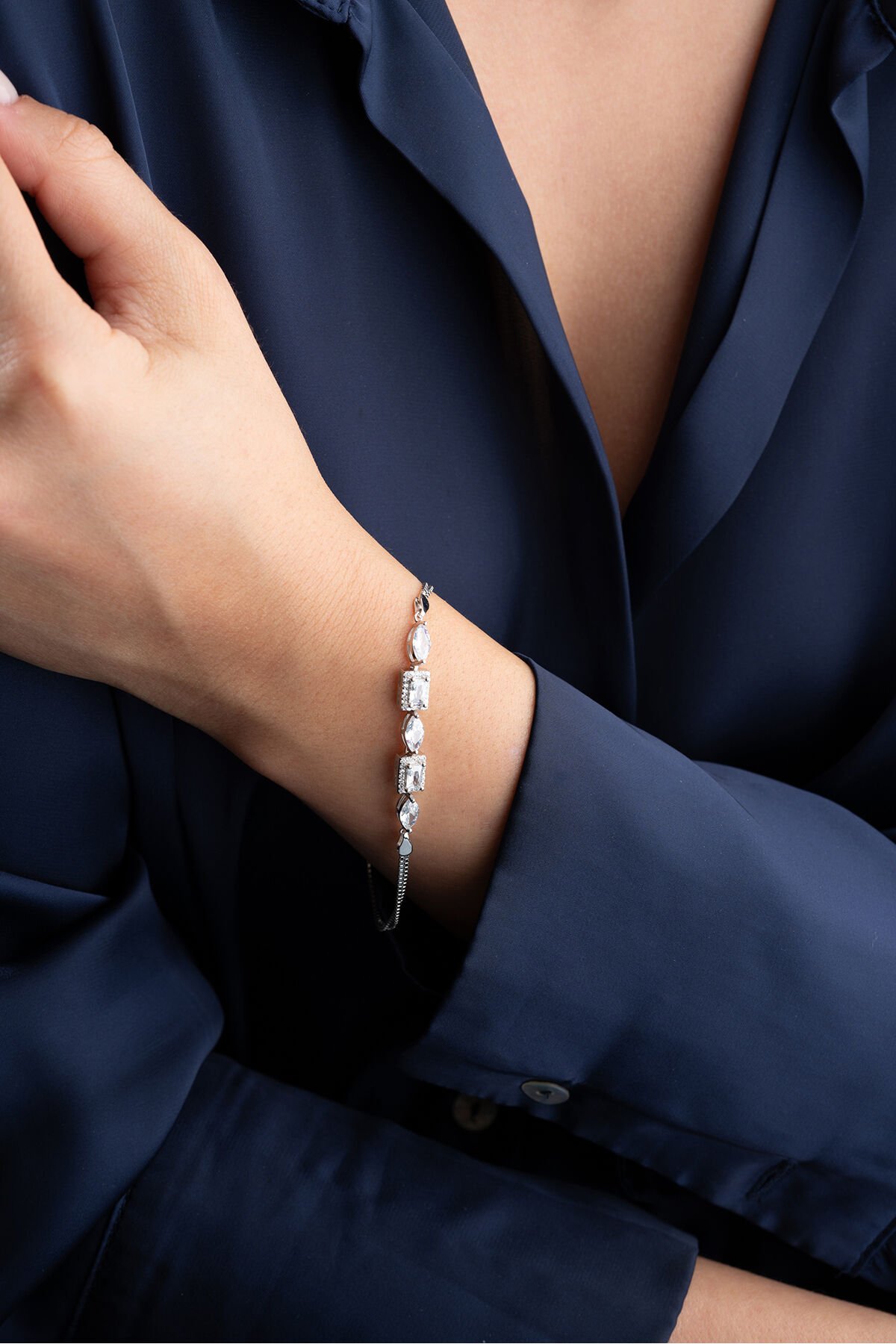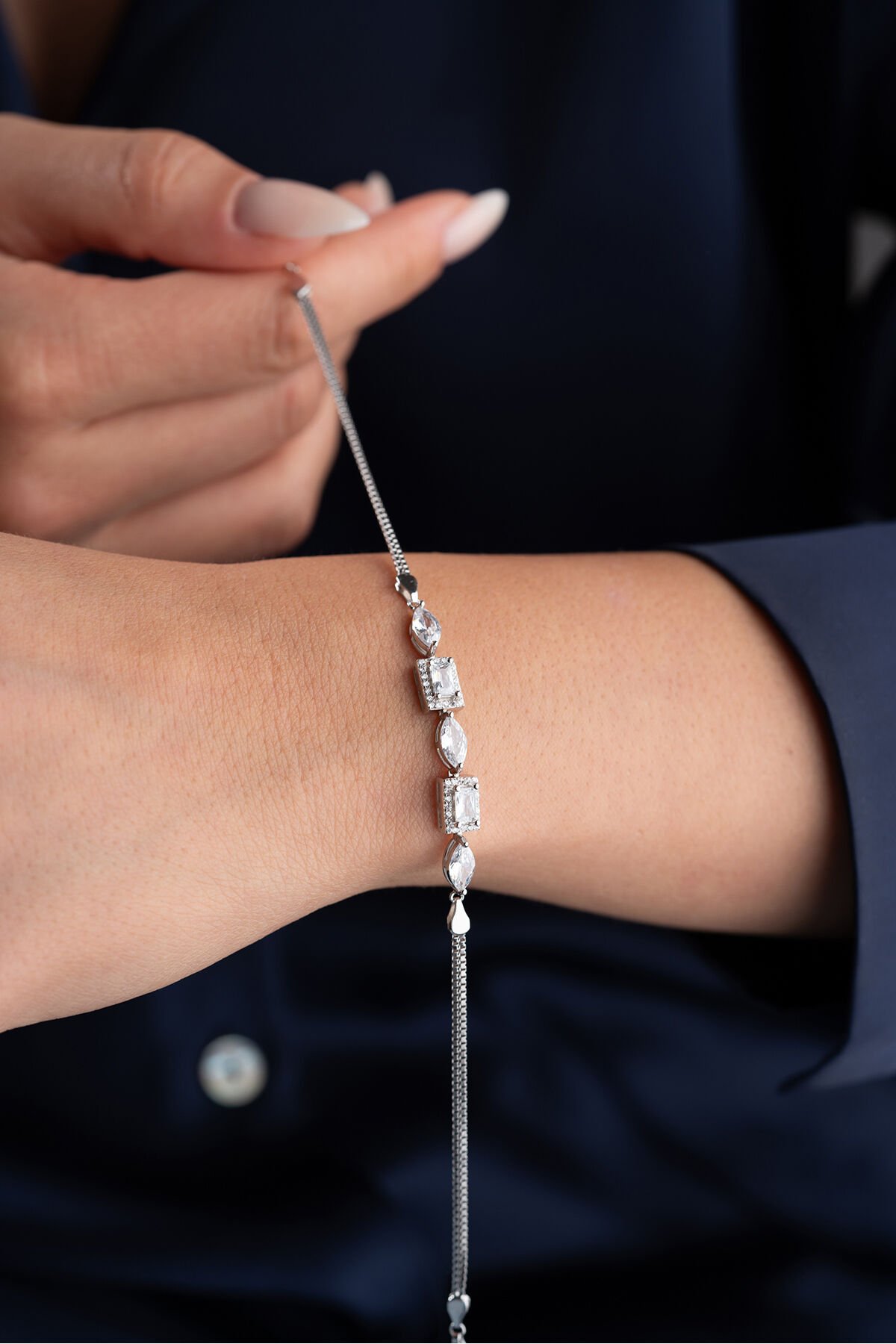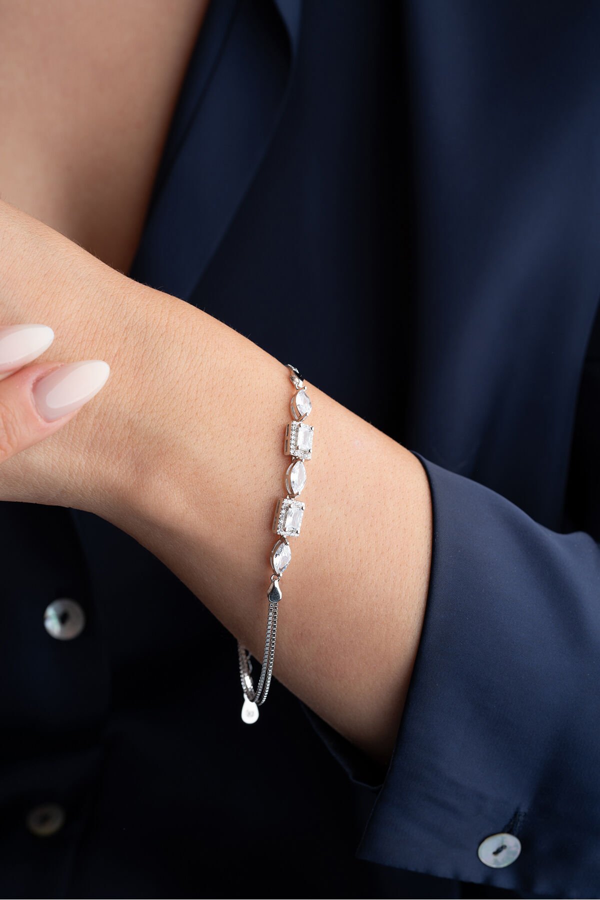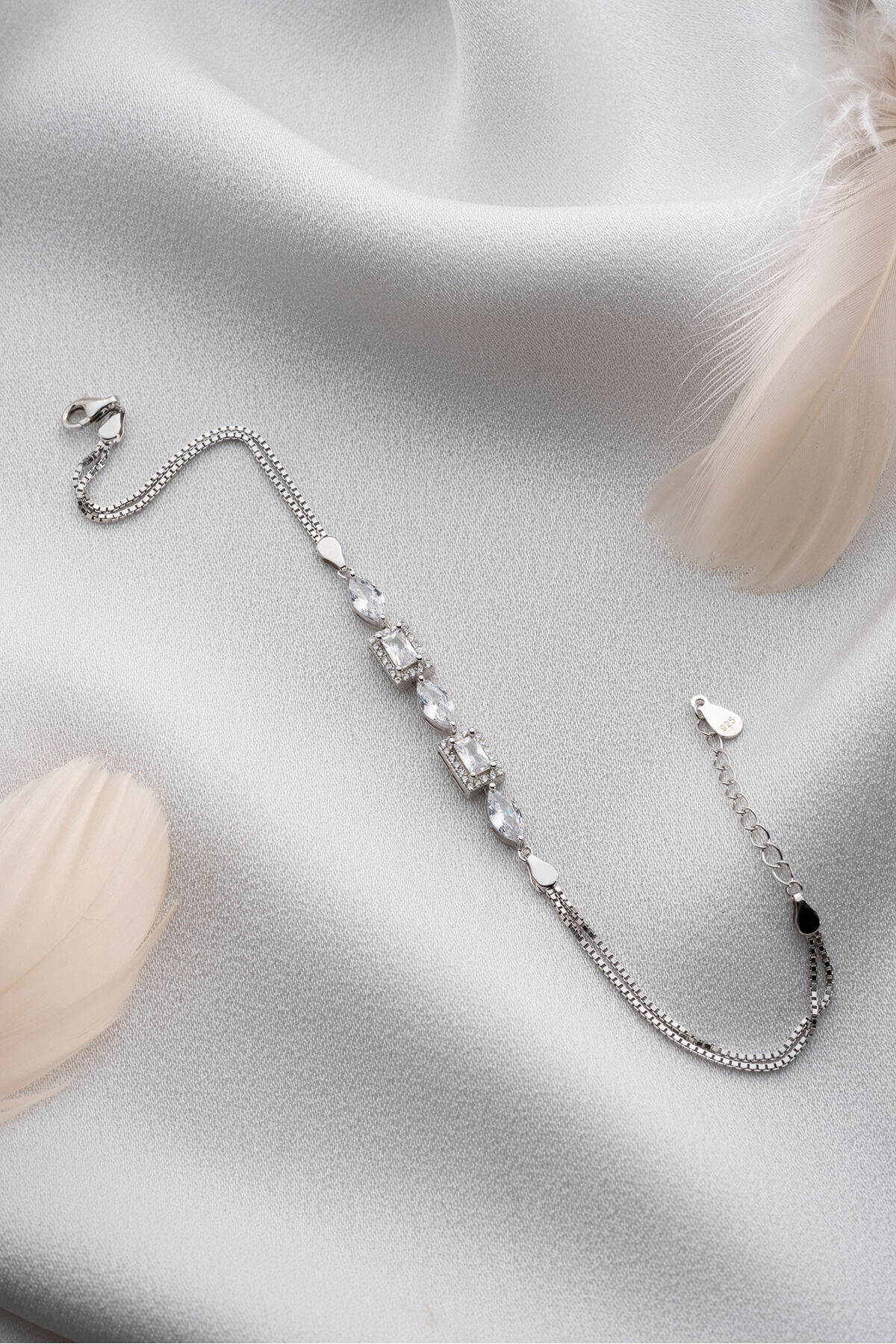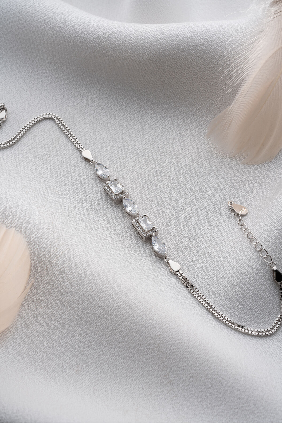 925 Ayar Gümüş Damla Baget Taşlı Trend Bileklik