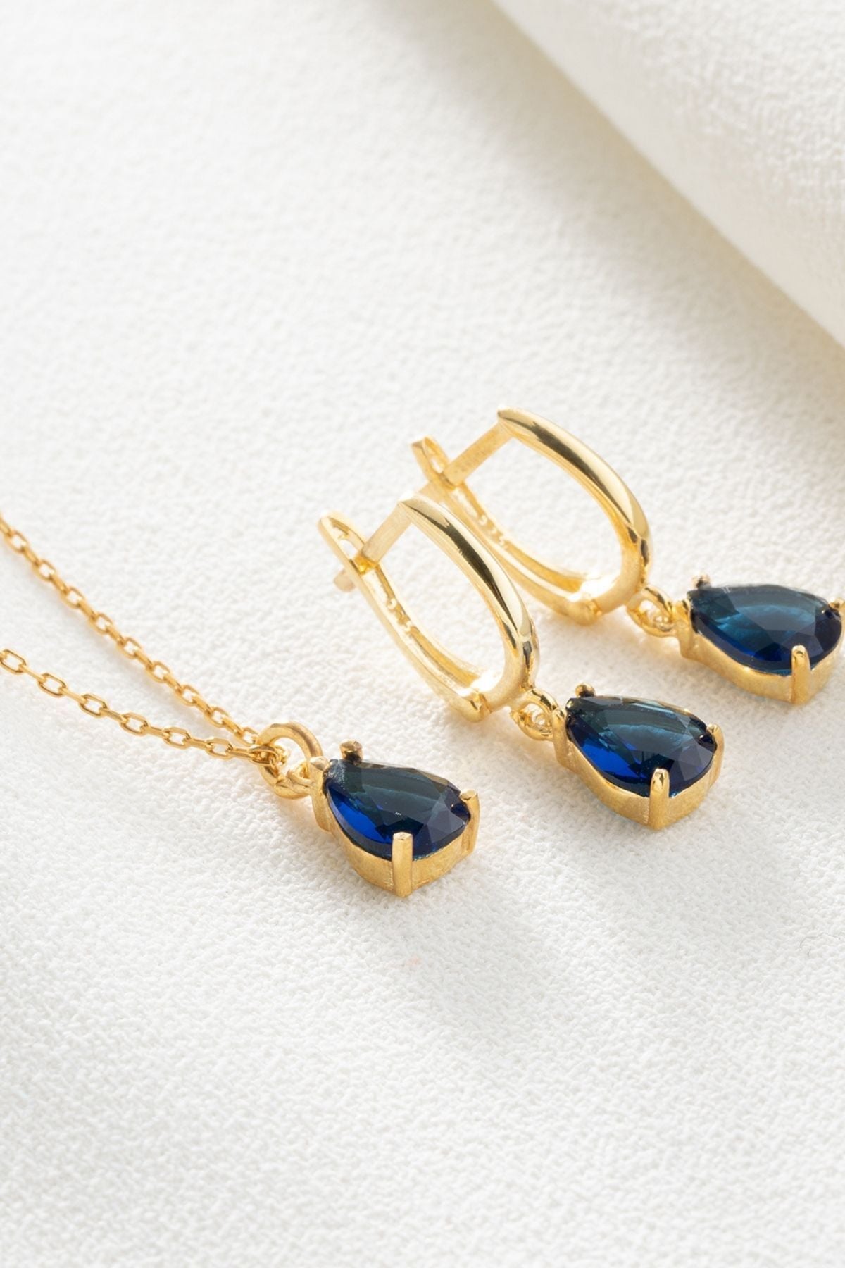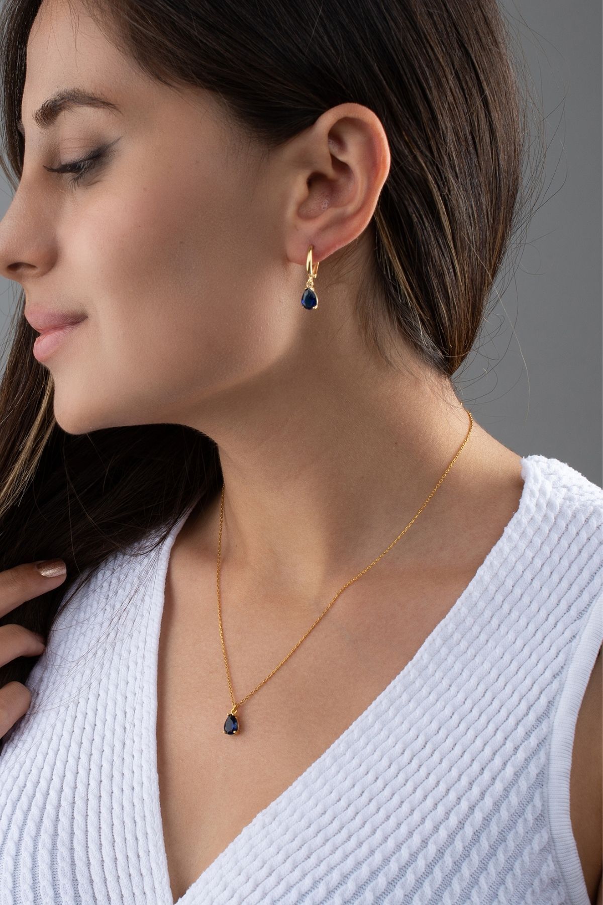 925 Ayar Gümüş Damla Model Kolye Küpe Seti