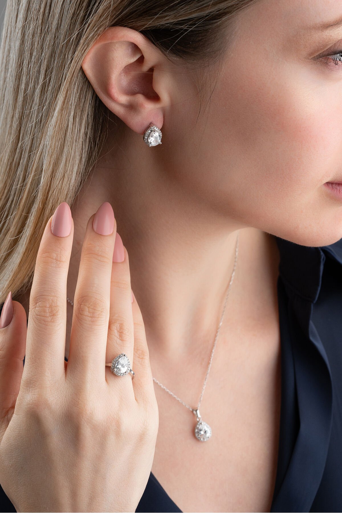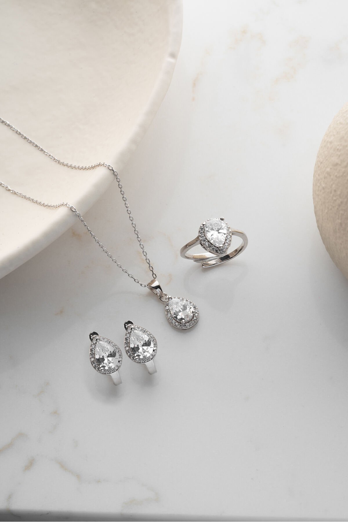 925 Ayar Gümüş Damla Model Takım Set