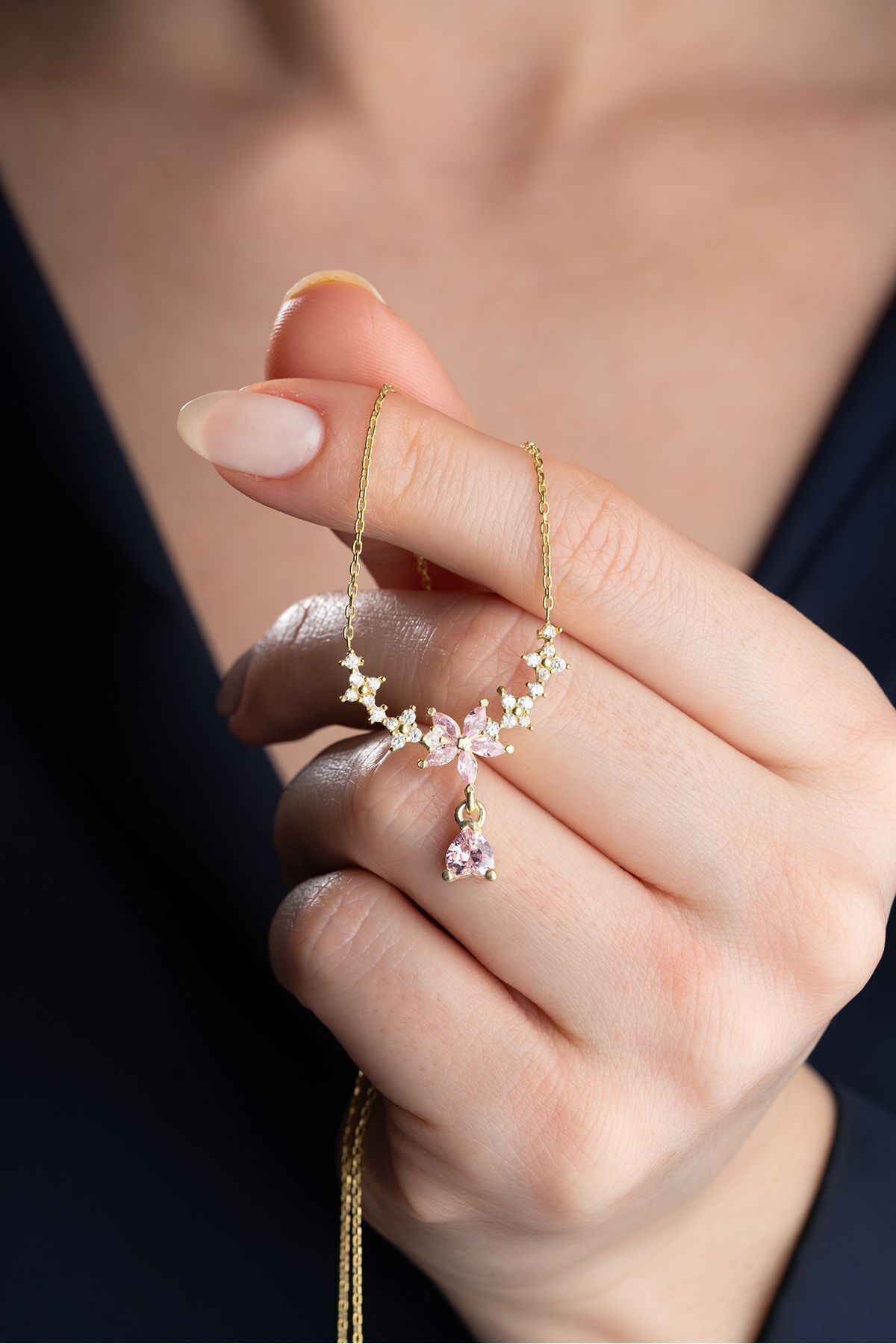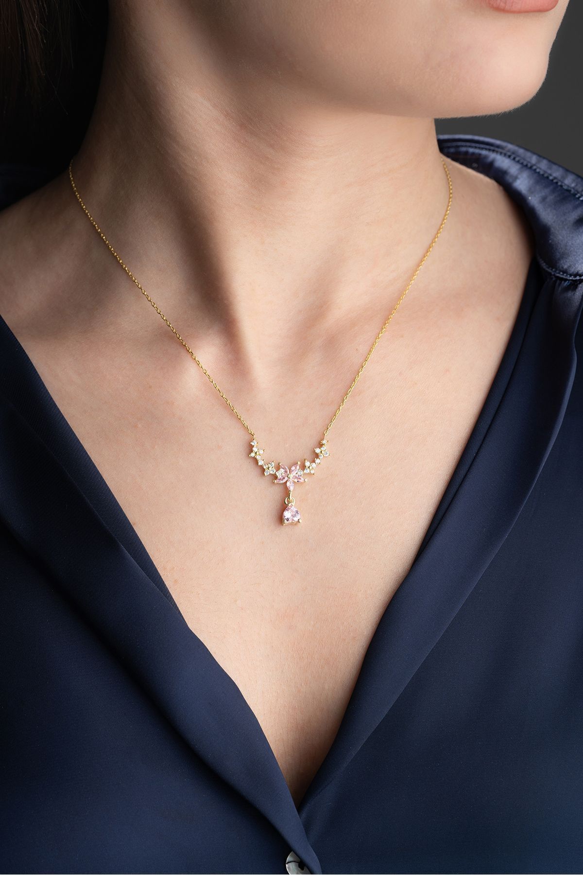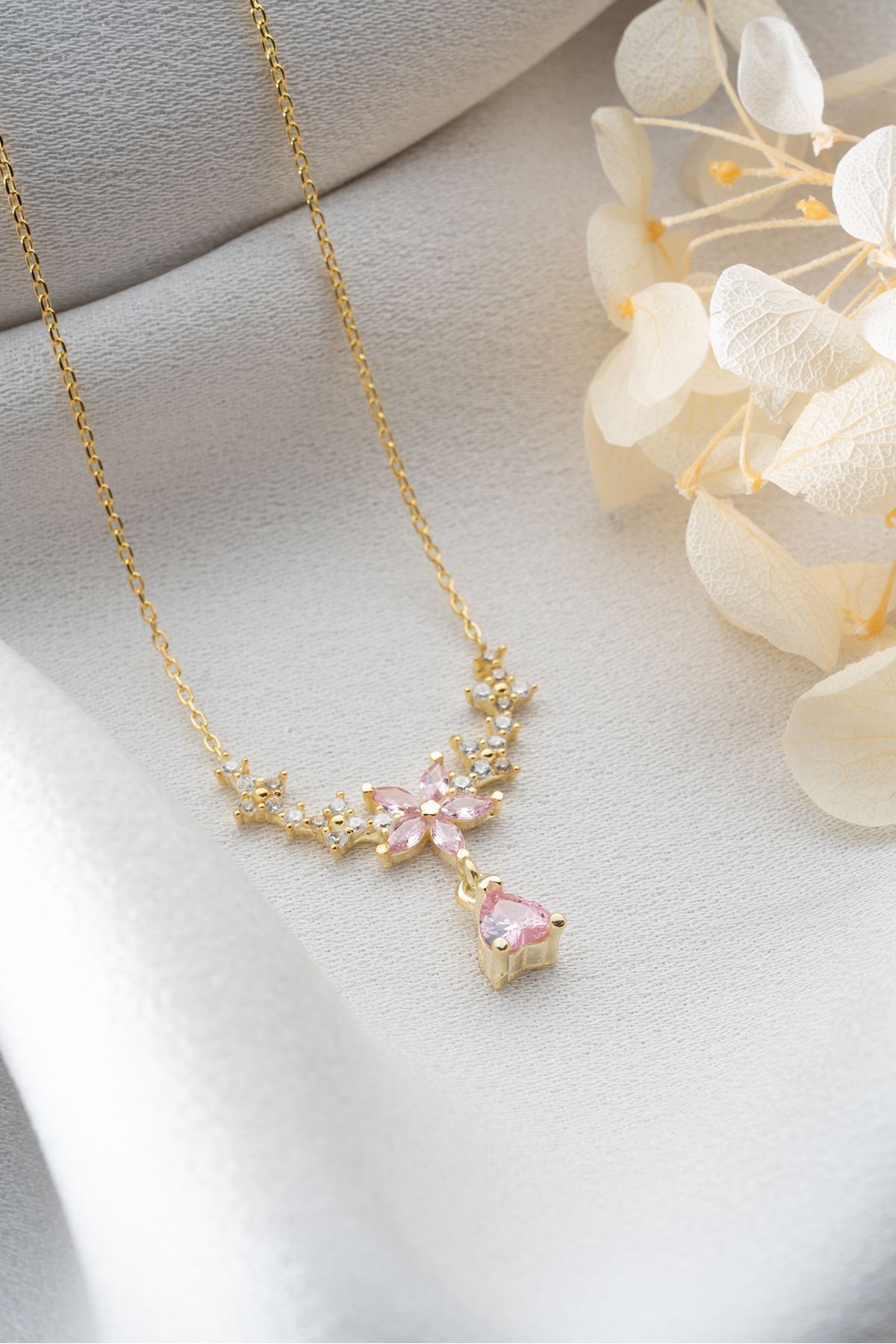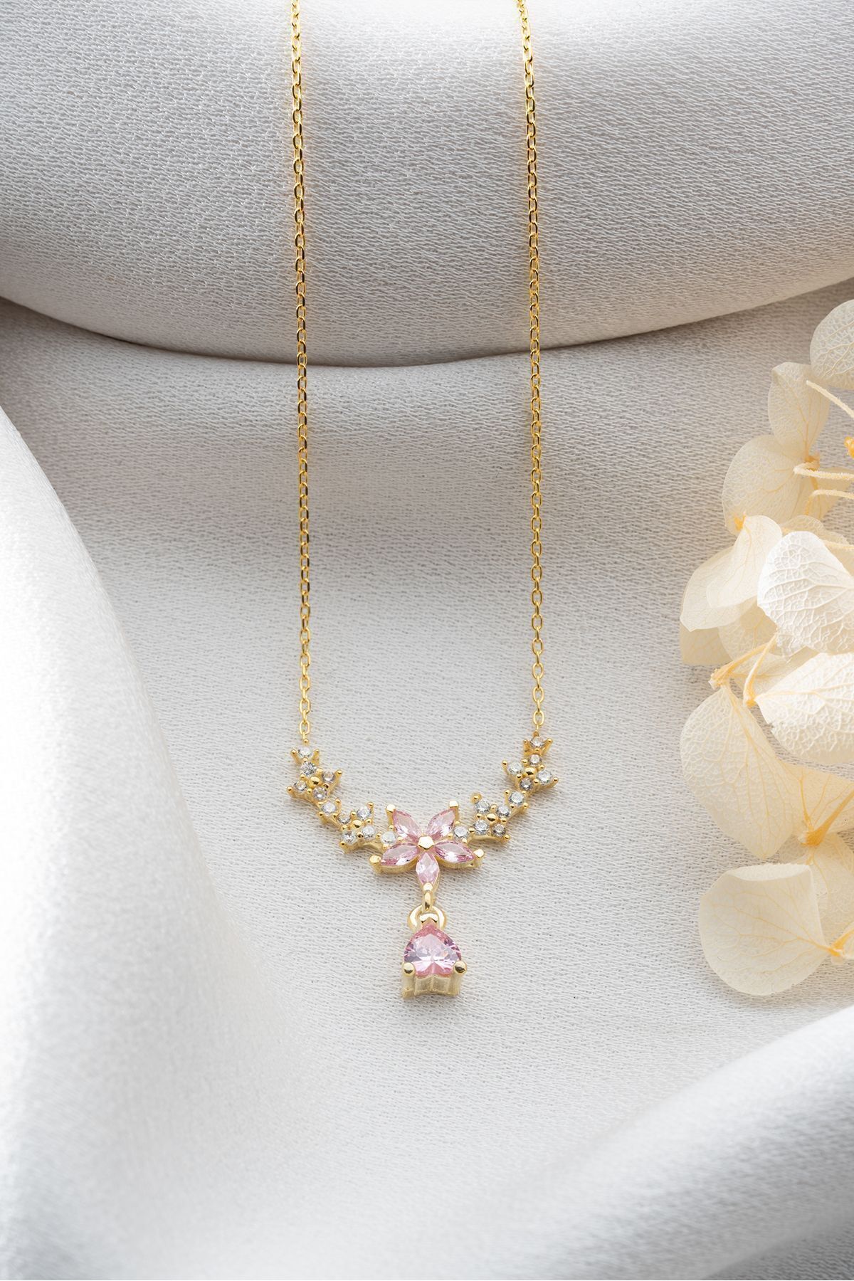 925 Ayar Gümüş Damla Taşlı Çiçek Kolye