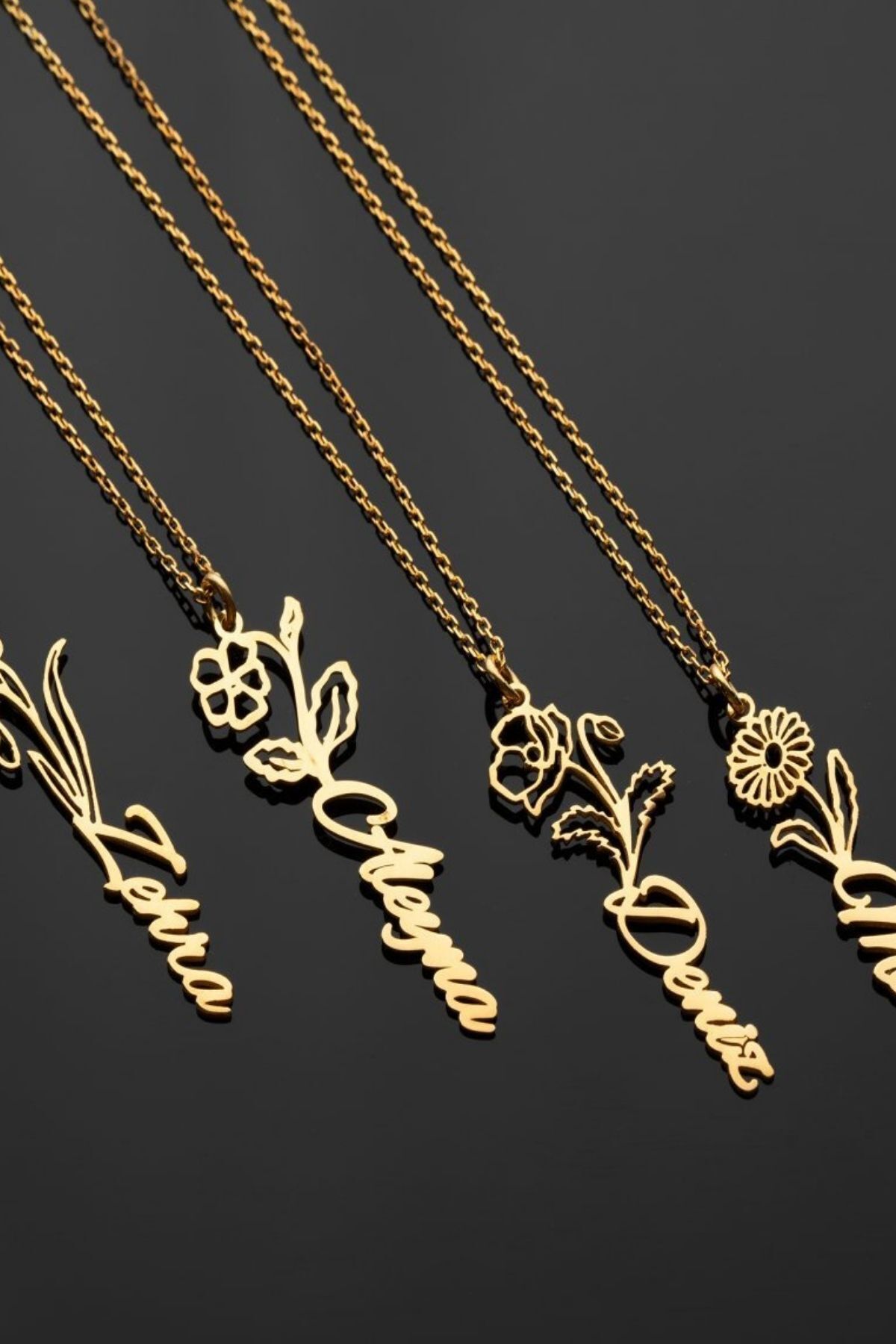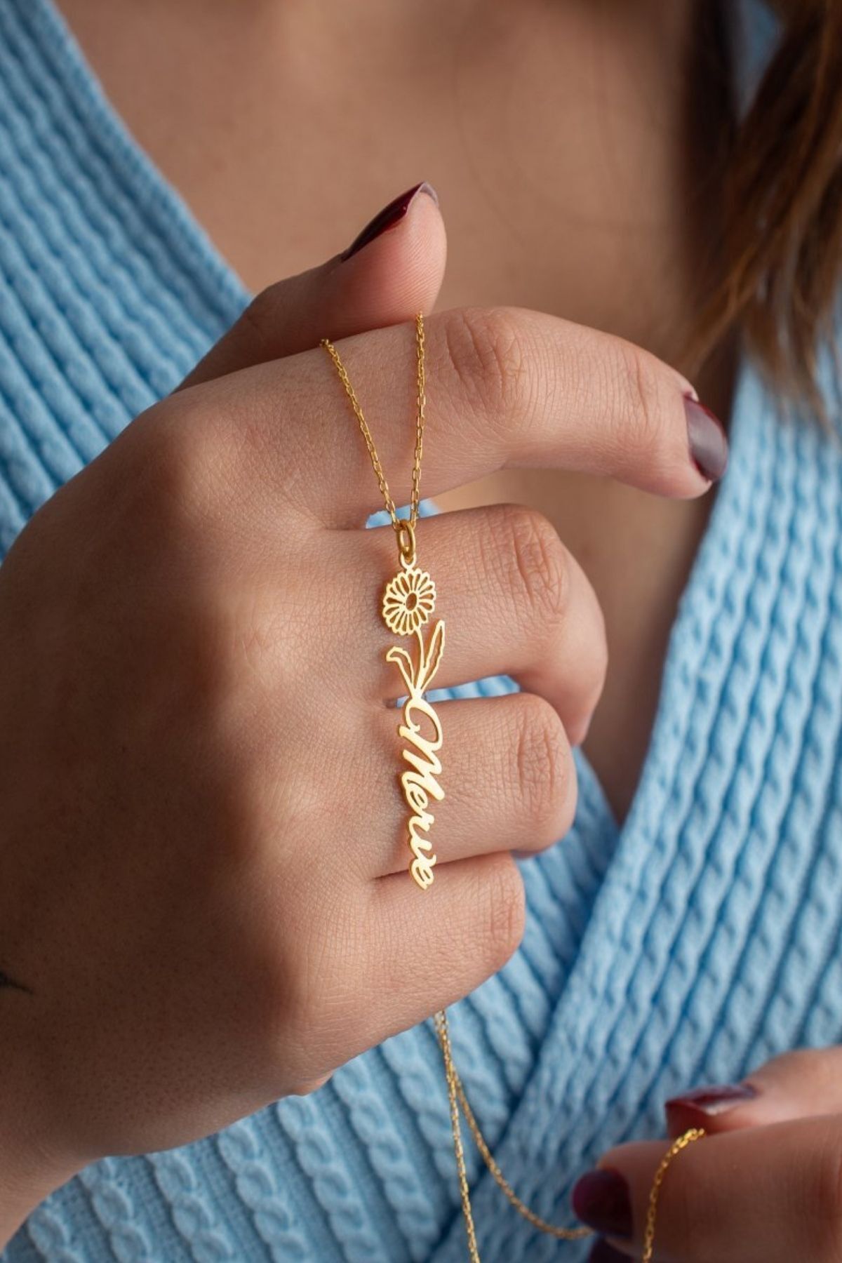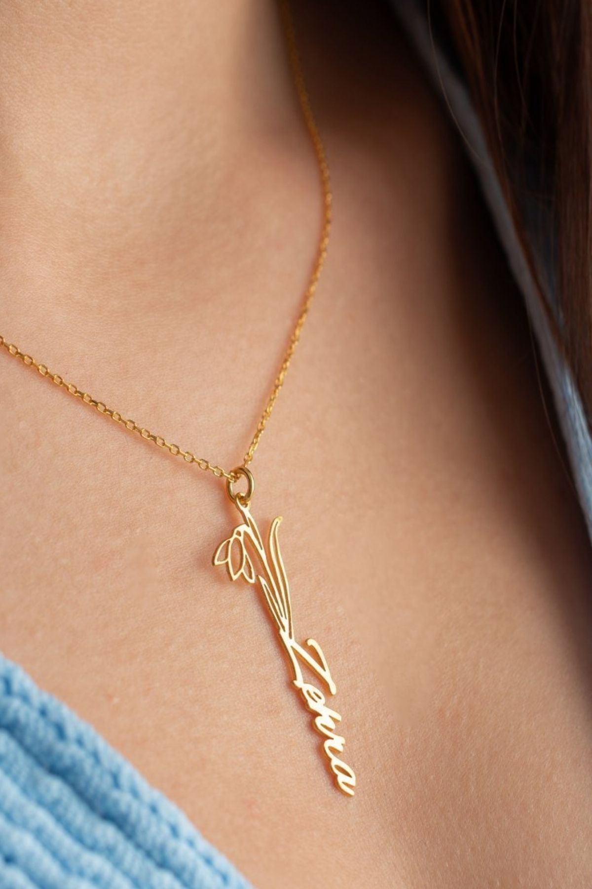 925 Ayar Gümüş Doğum Aylarına Özel Isimli Çiçek Kolye