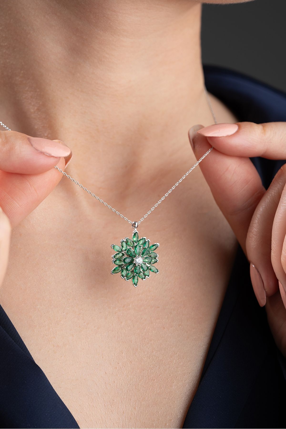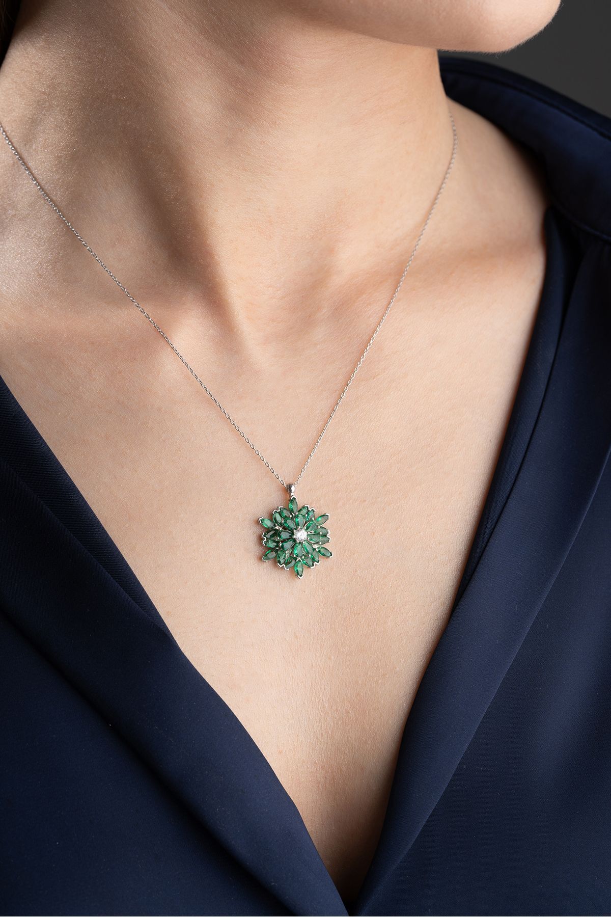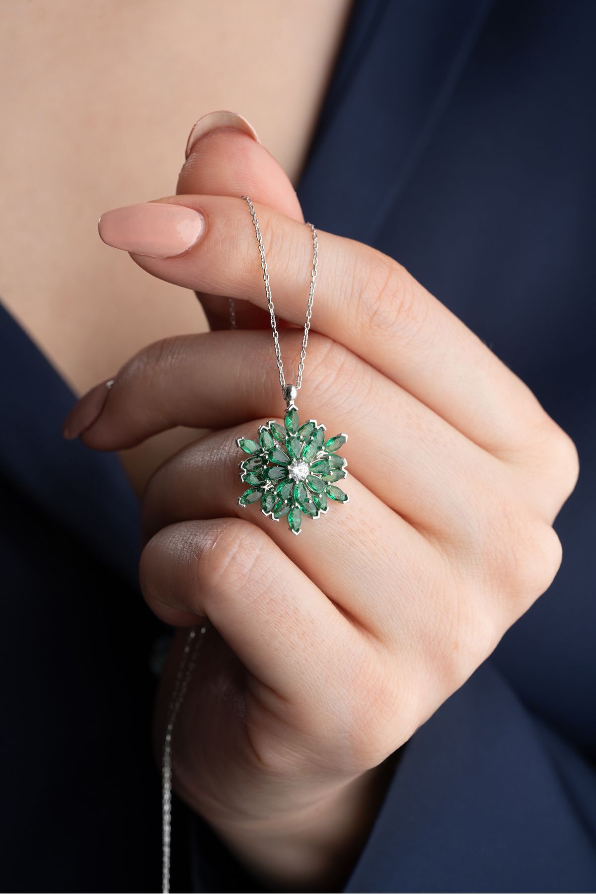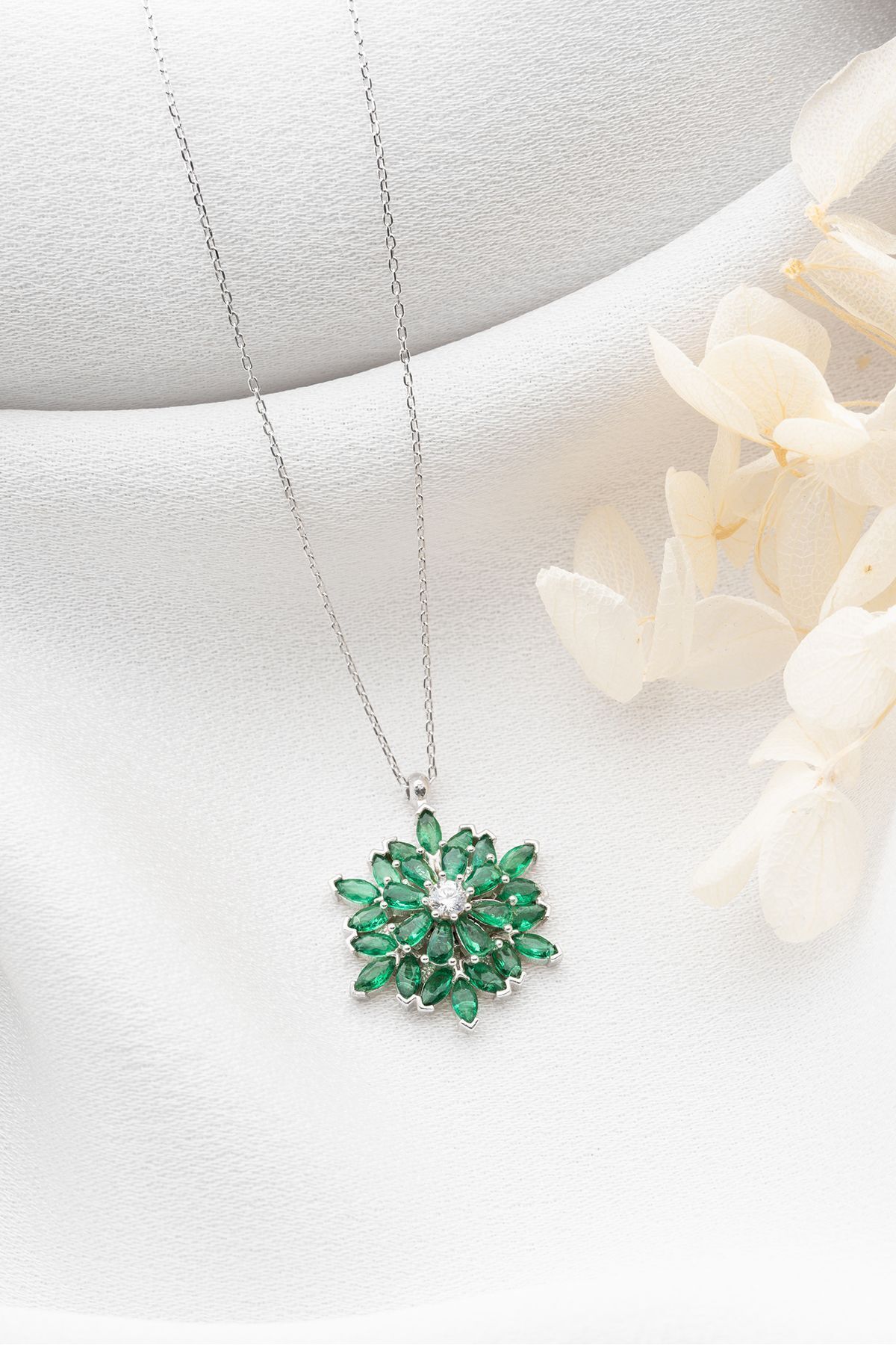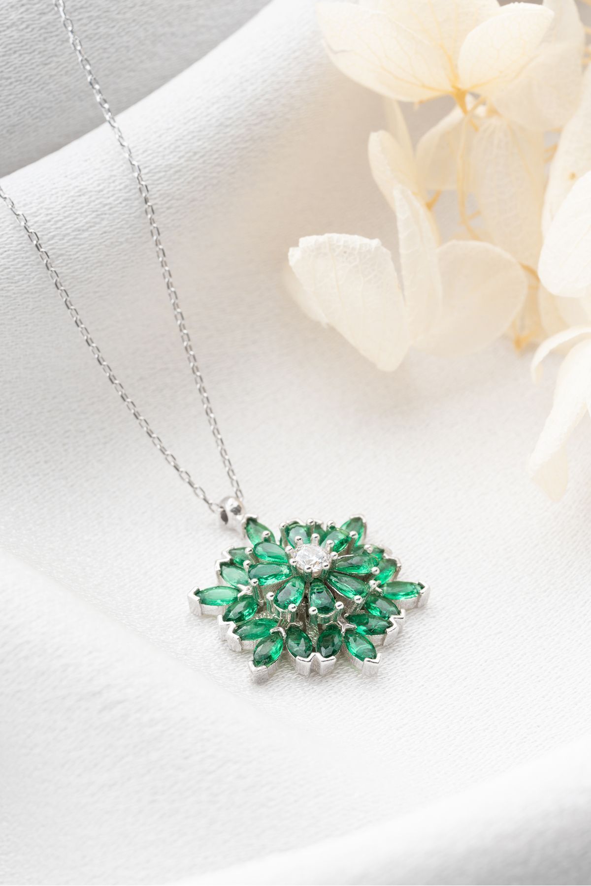 925 Ayar Gümüş Dönen Büyük Lotus Çiçeği Kolye
