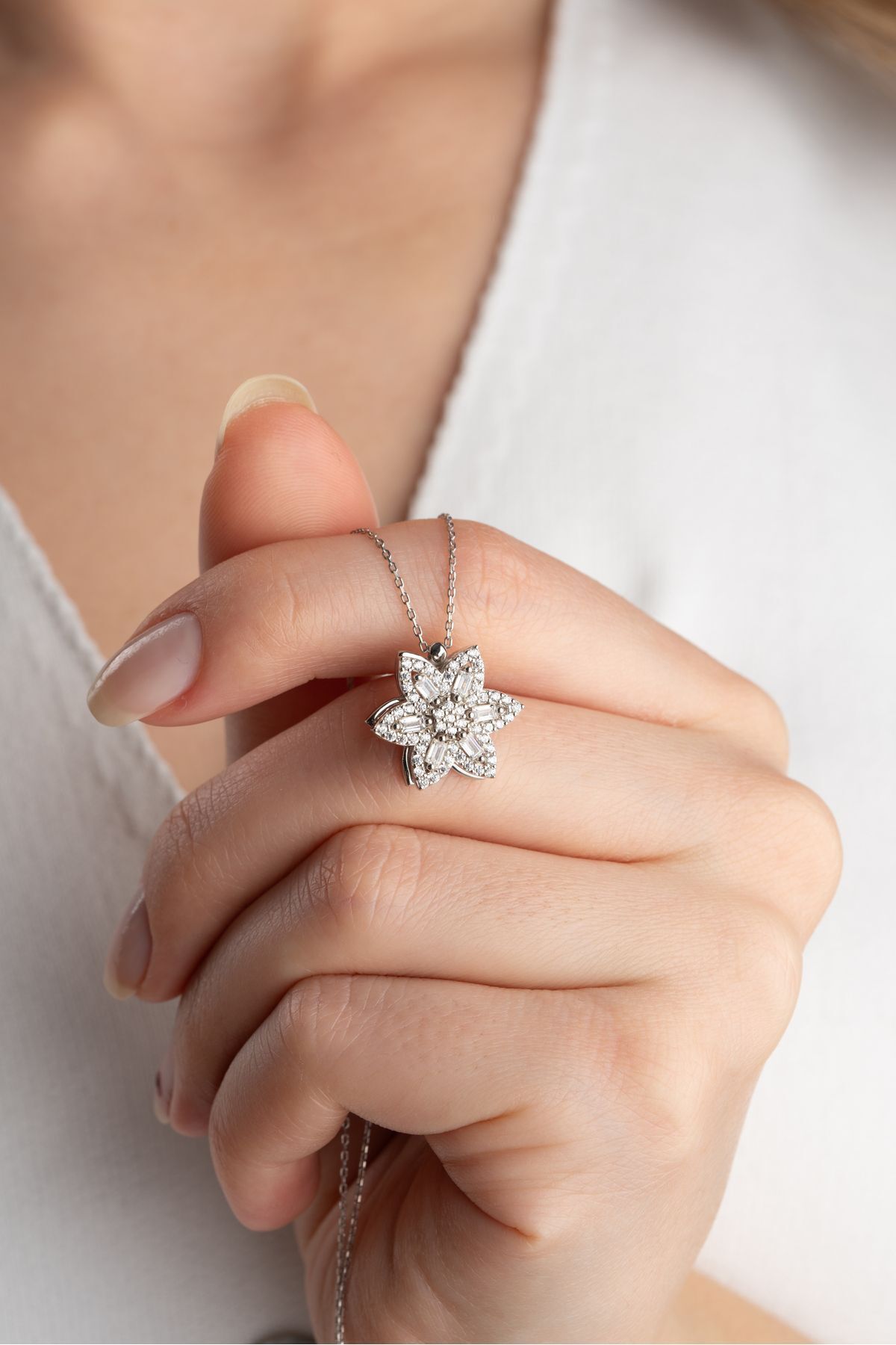925 AYAR GÜMÜŞ DÖNEN LOTUS ÇİÇEĞİ KOLYE | IŞIKLI KUTUDA