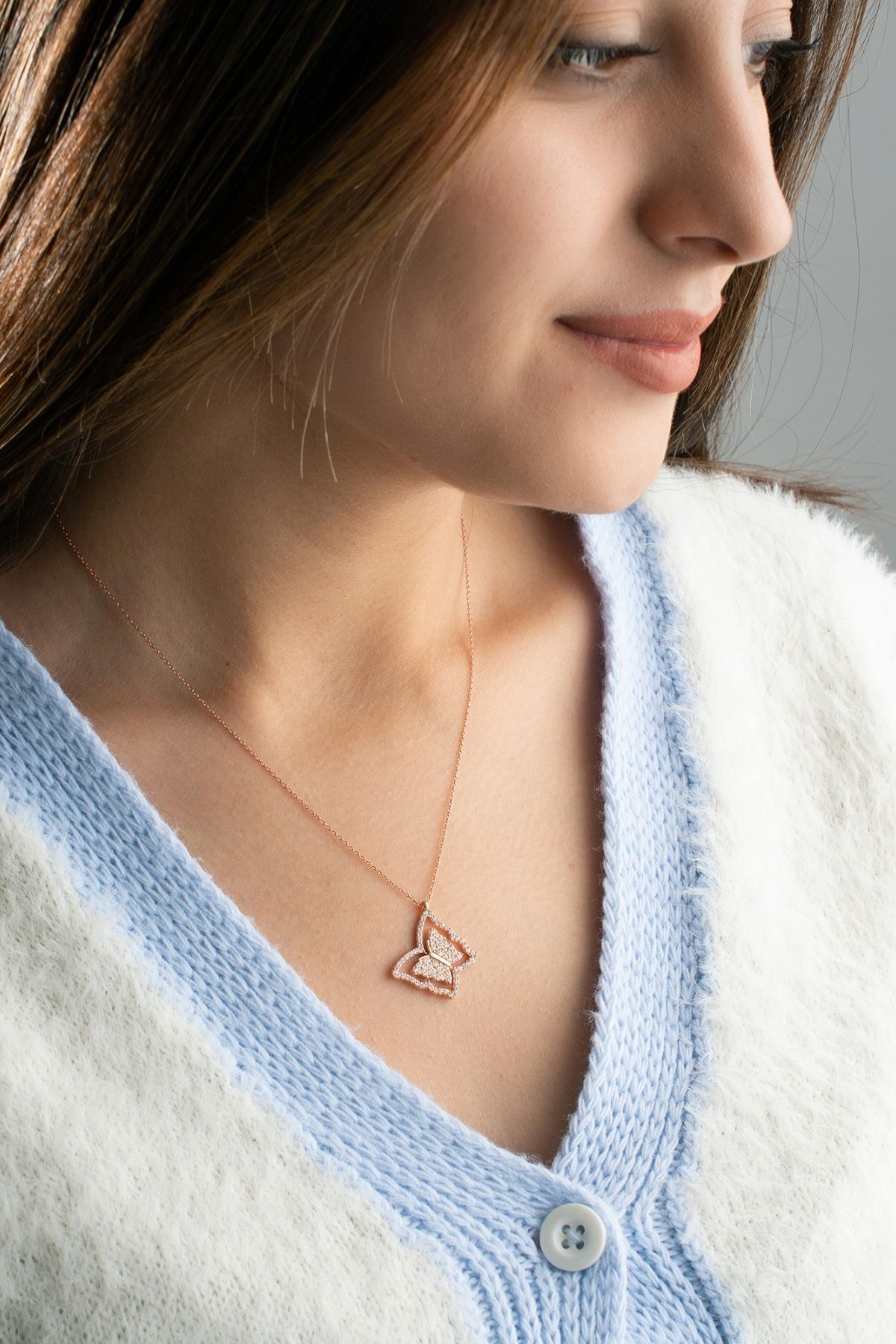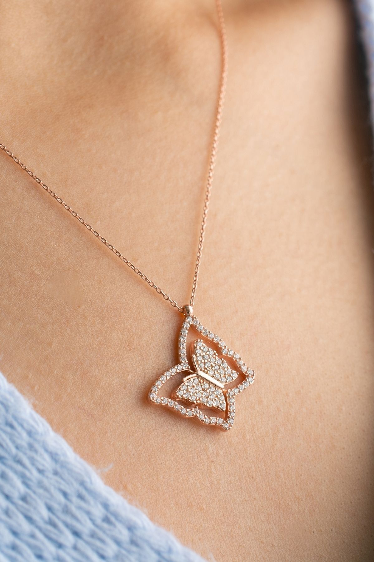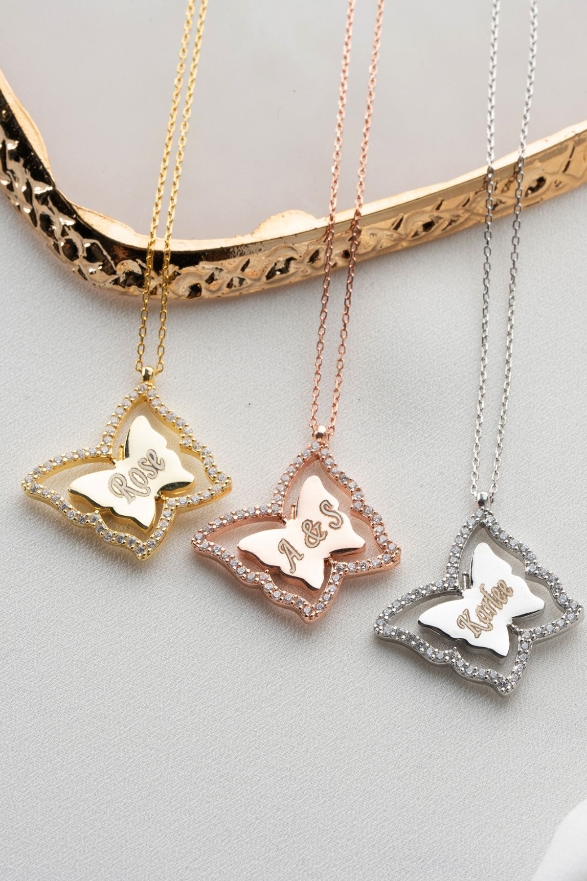 925 Ayar Gümüş Dönence Kelebek ( Kişiye Özel ) Kolye