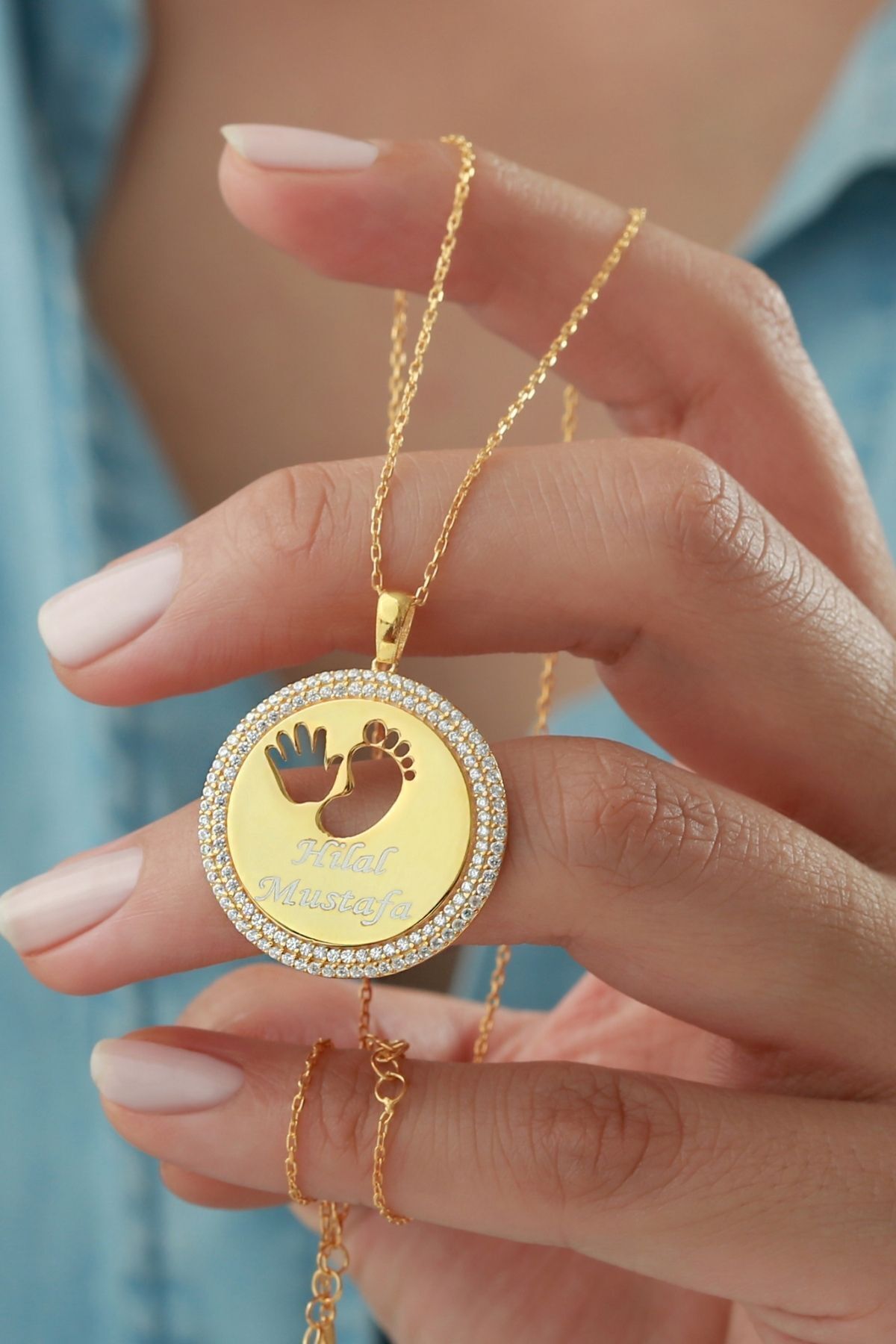 925 Ayar Gümüş El Ayaklı Kişiye Özel Isimli Kolye