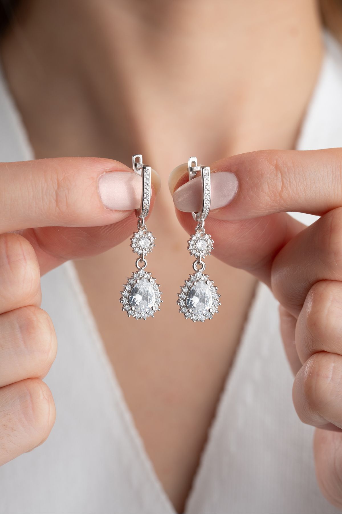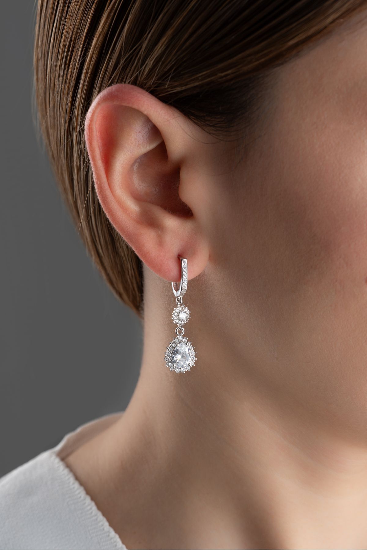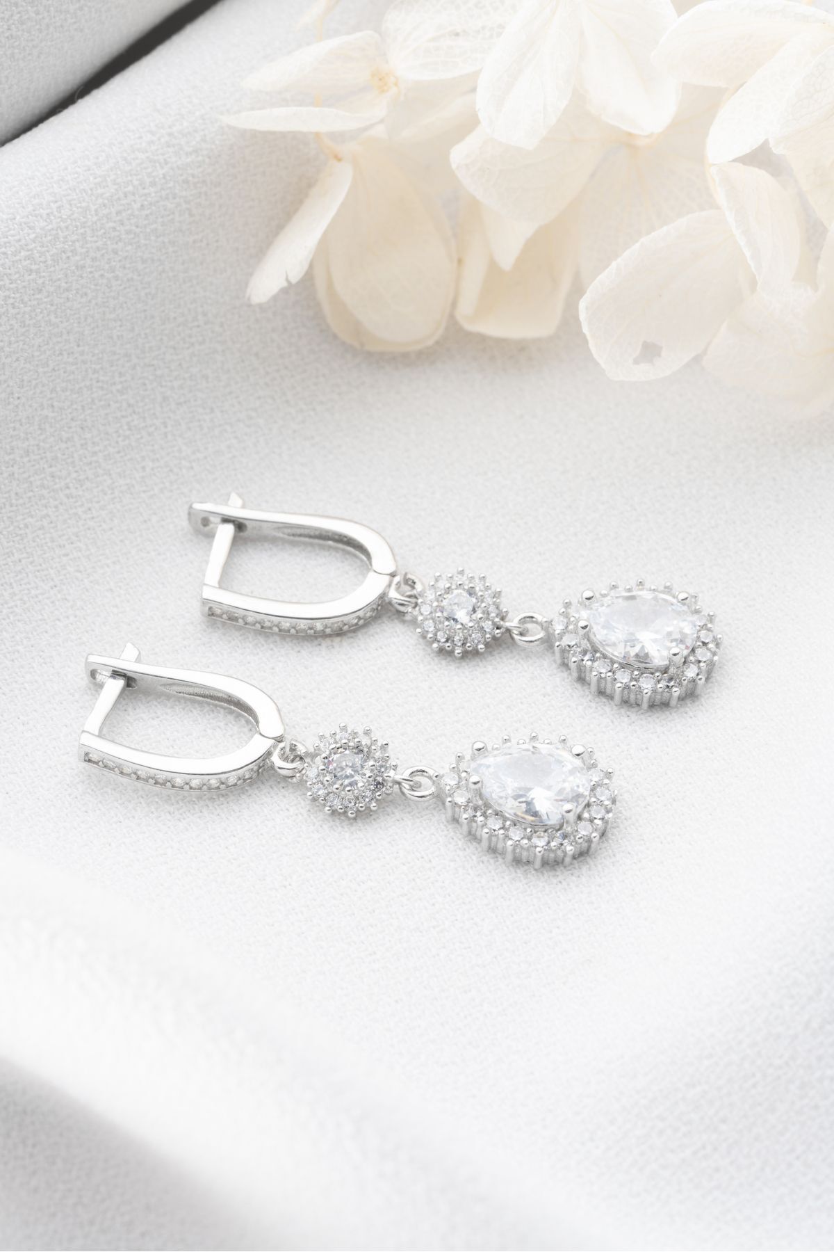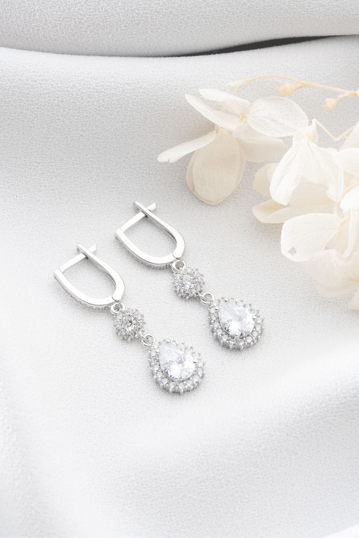 925 Ayar Gümüş Elmas Montür Damla Küpe