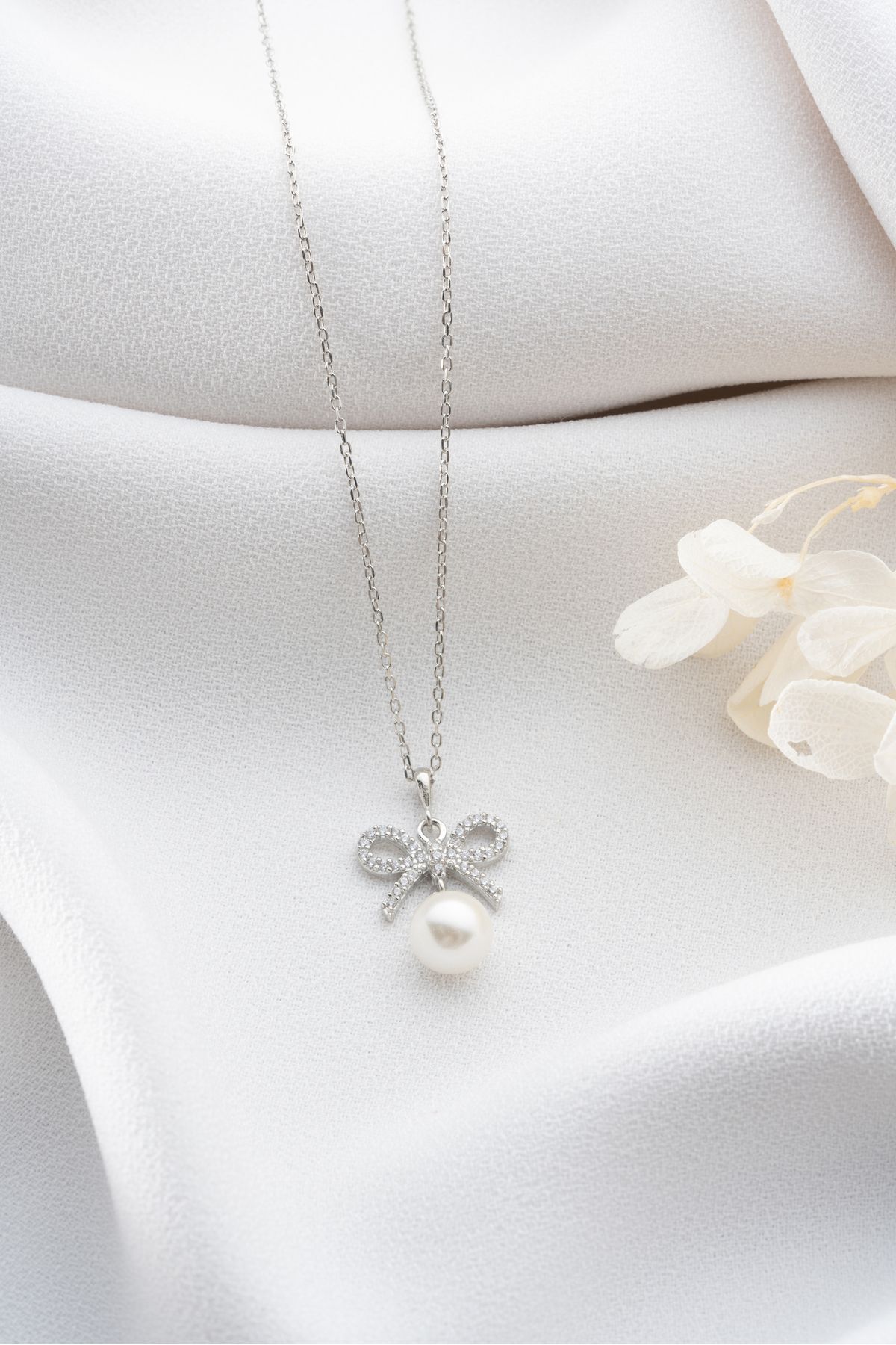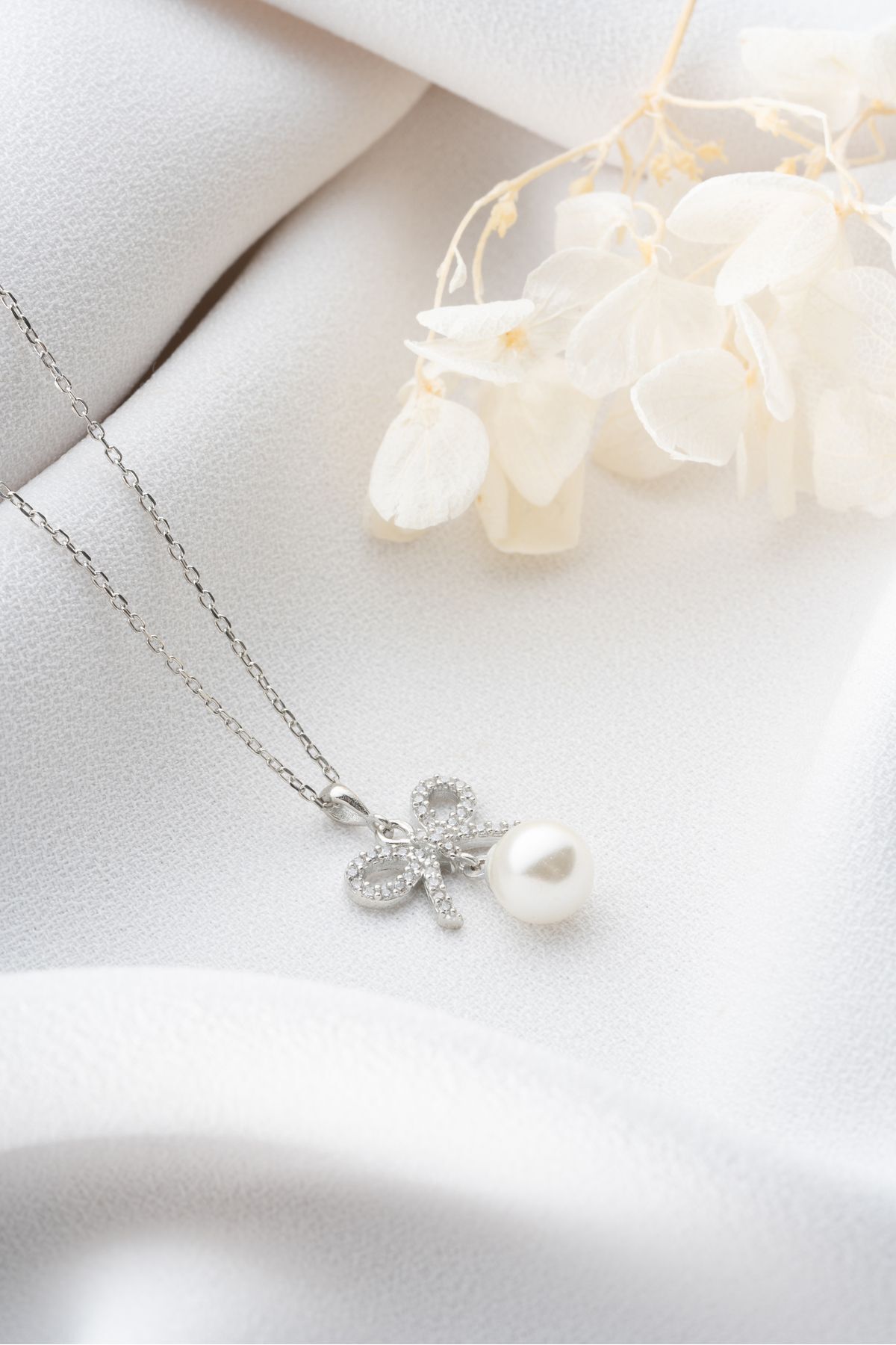 925 Ayar Gümüş Fiyonklu İnci Kolye