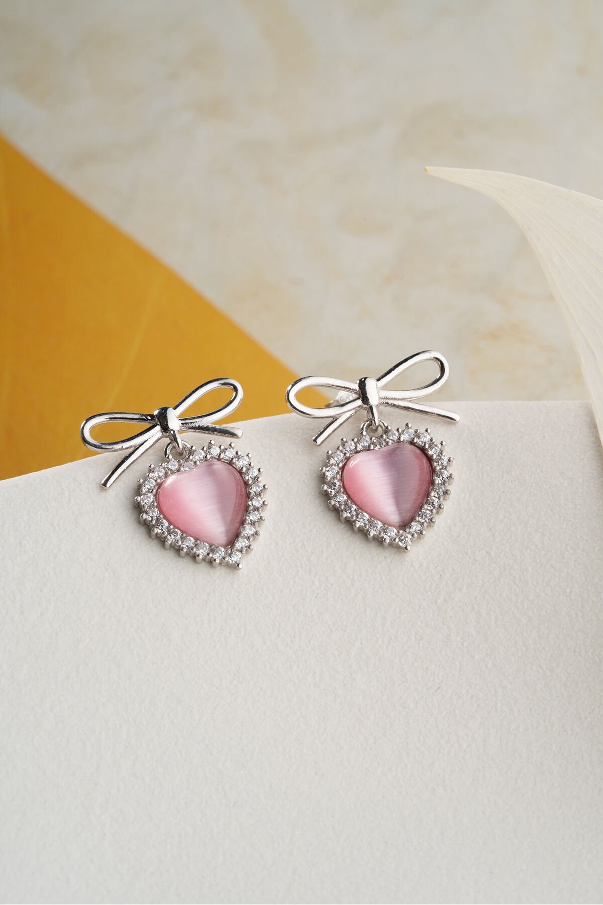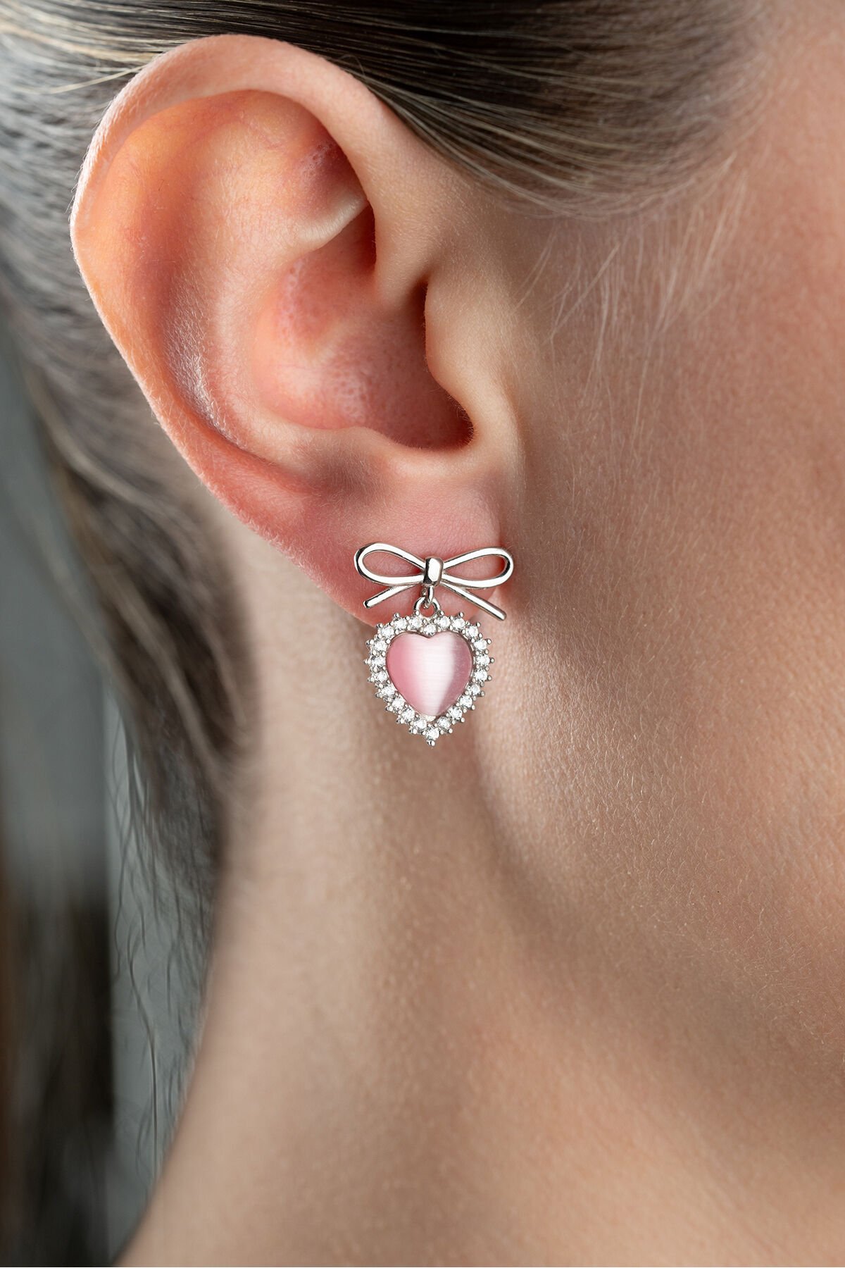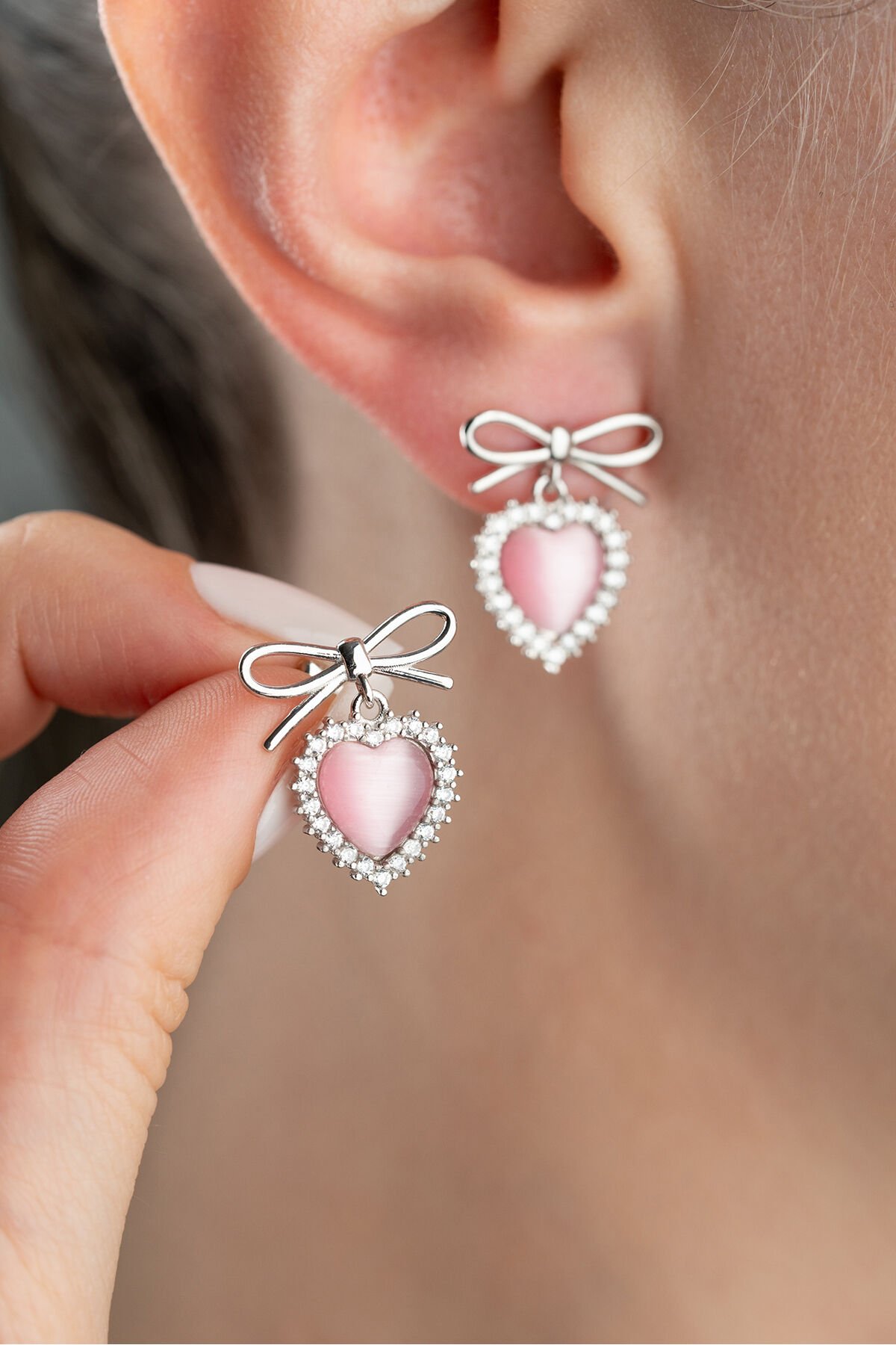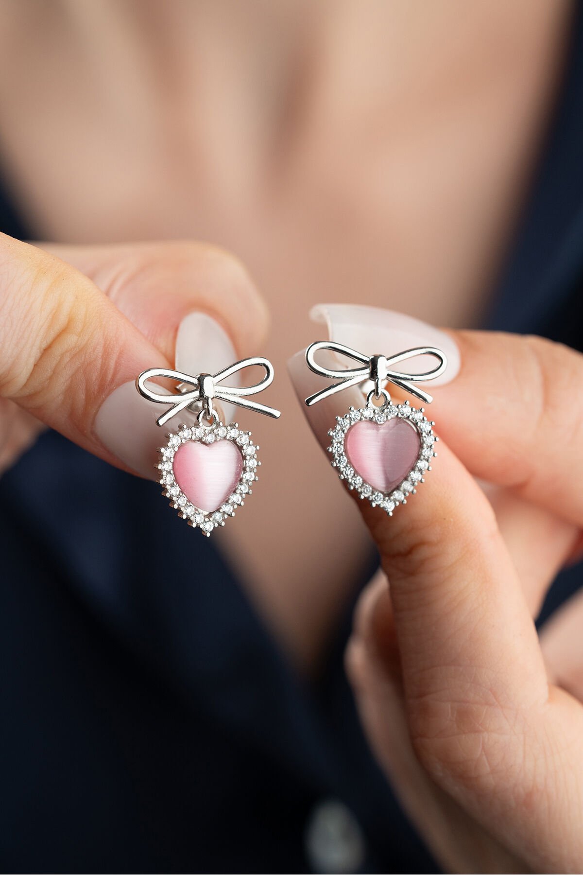 925 Ayar Gümüş Fiyonklu Pembe Kalp Küpe