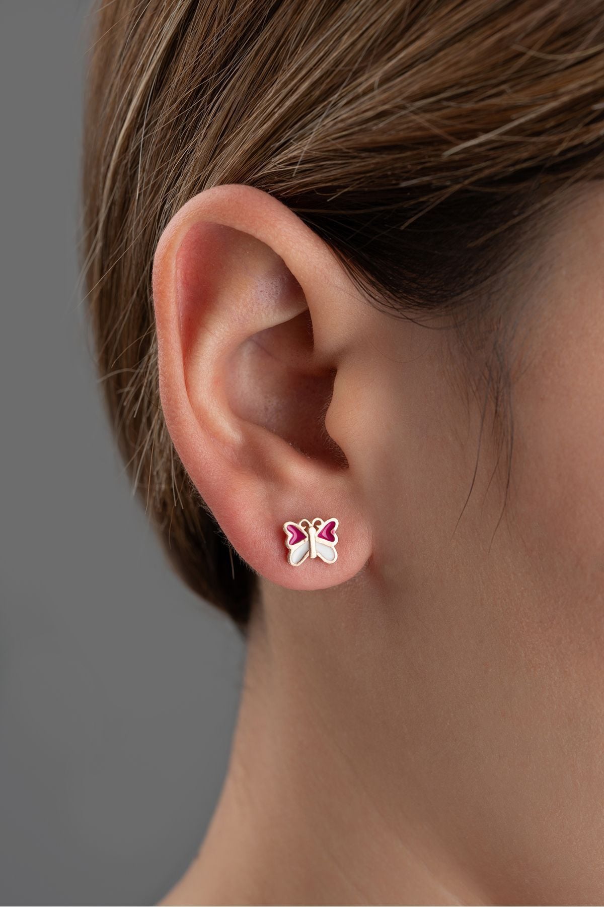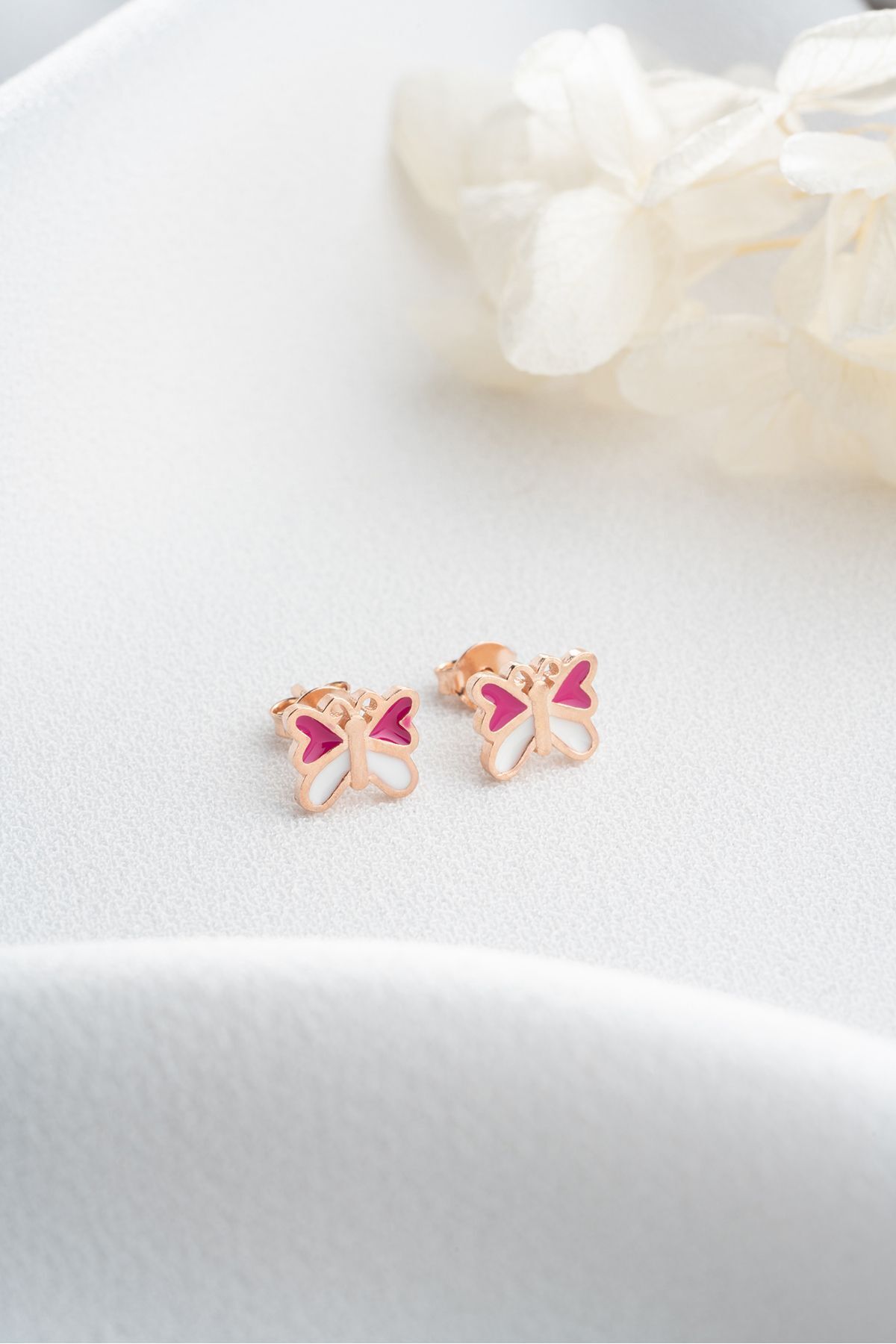 925 Ayar Gümüş Fuşya Kelebek Minik Çivili Küpe