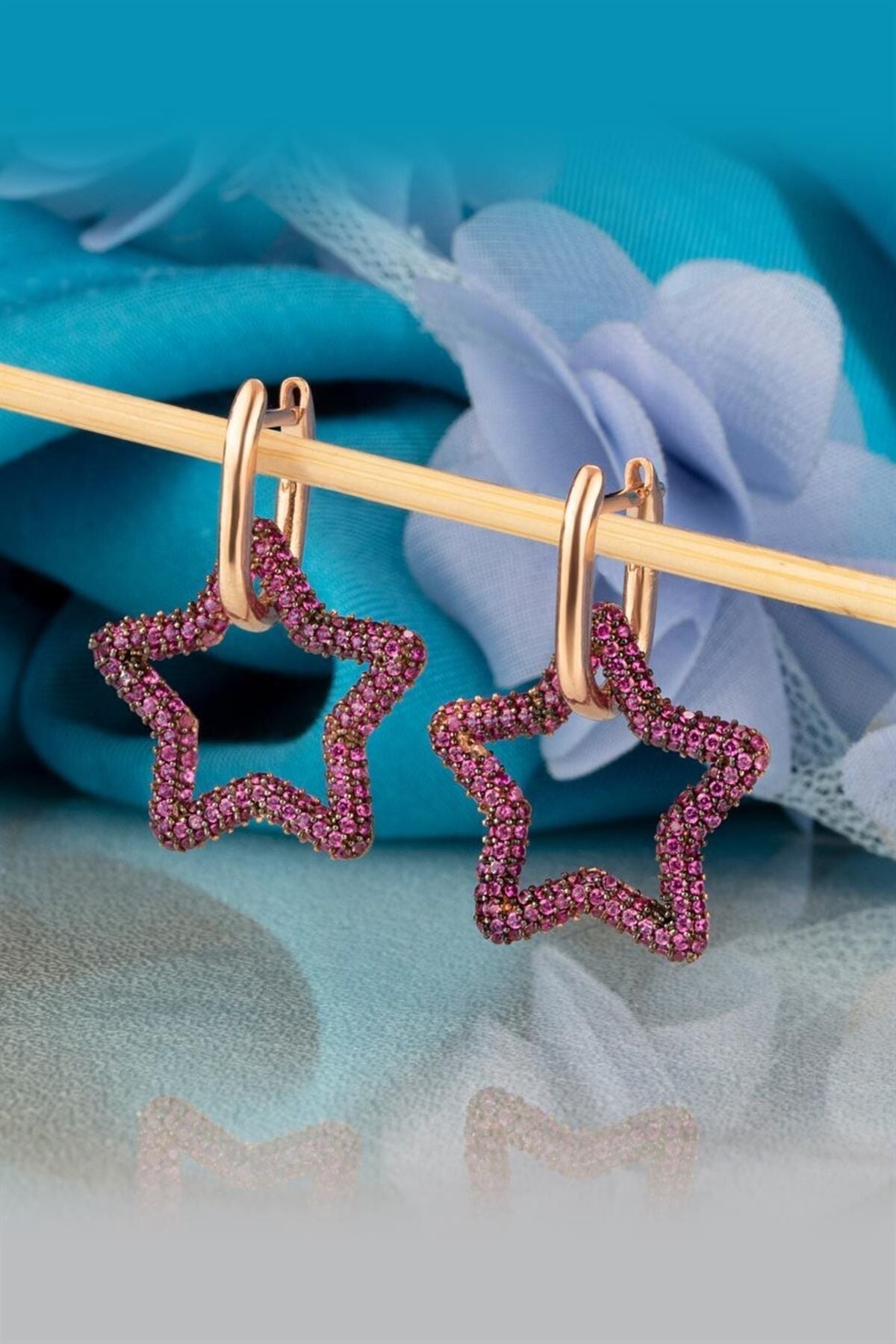 925 Ayar Gümüş Fuşya Taşlı Yıldız Küpe