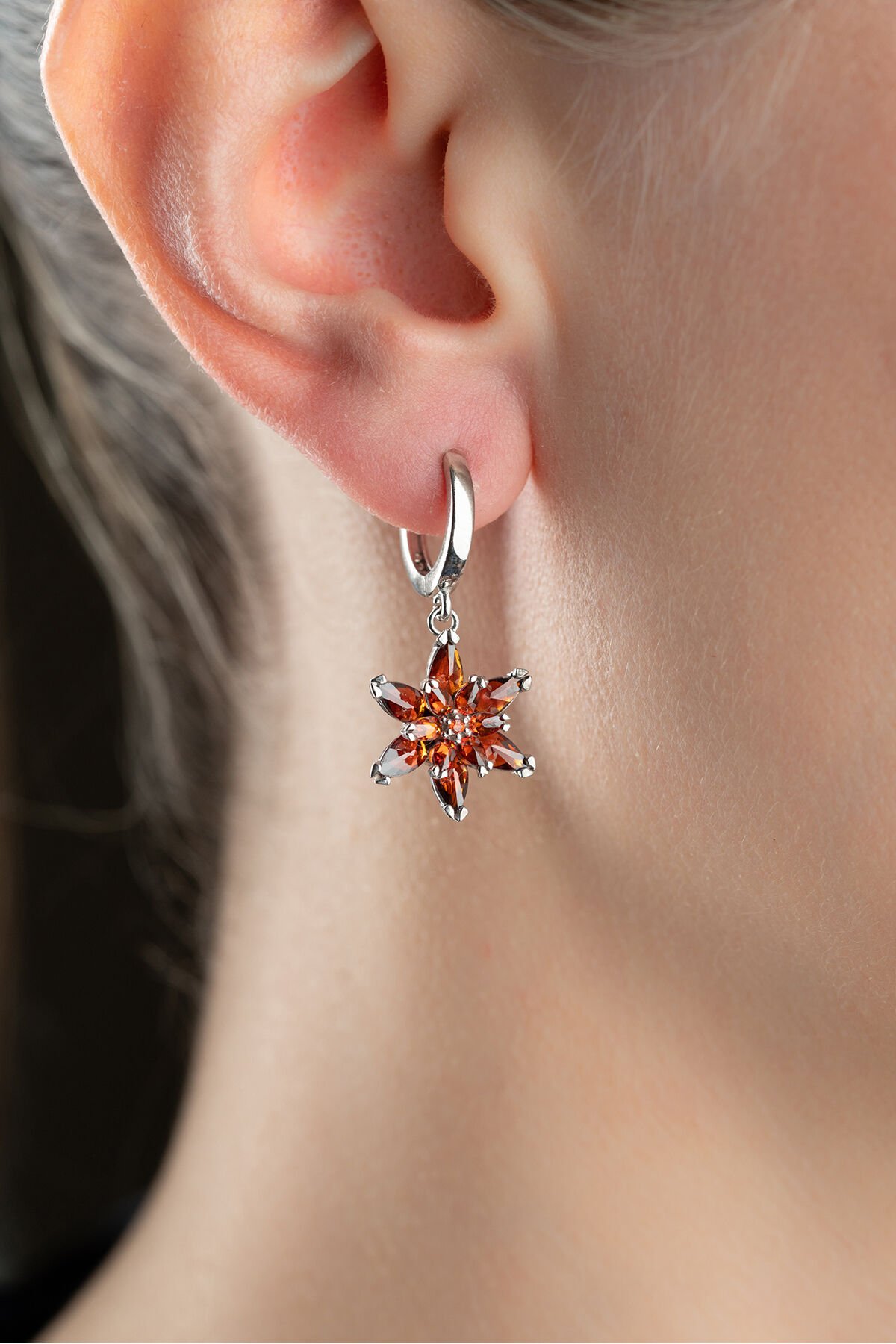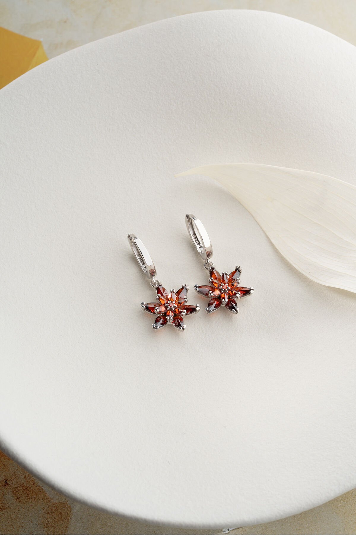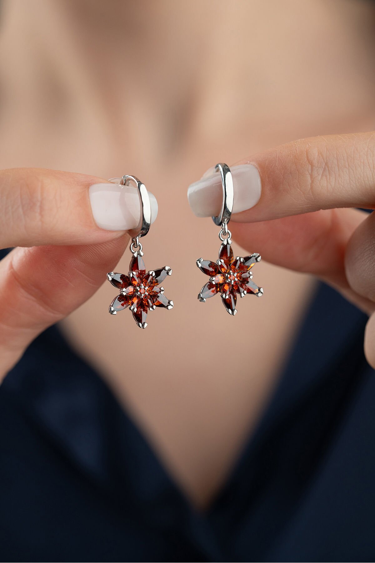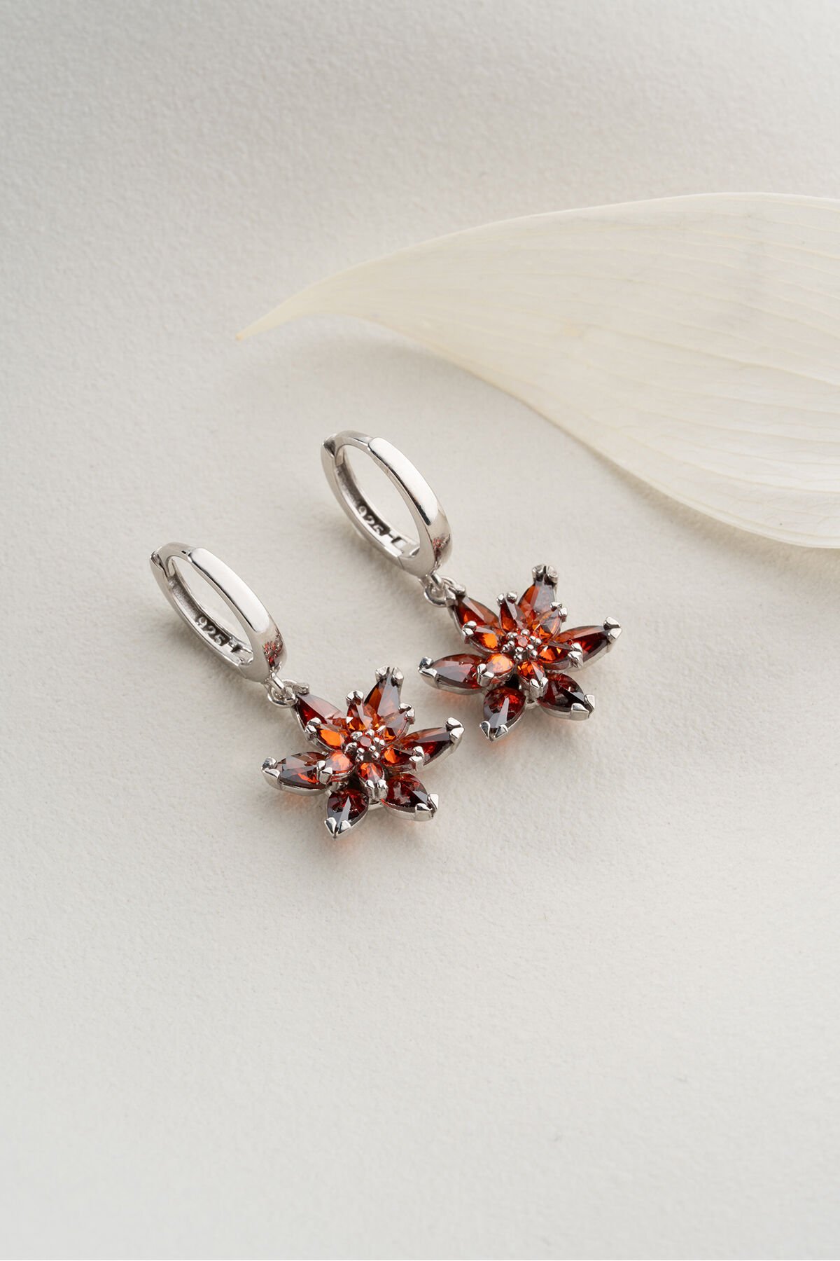 925 Ayar Gümüş Garnet Taşlı Küpe