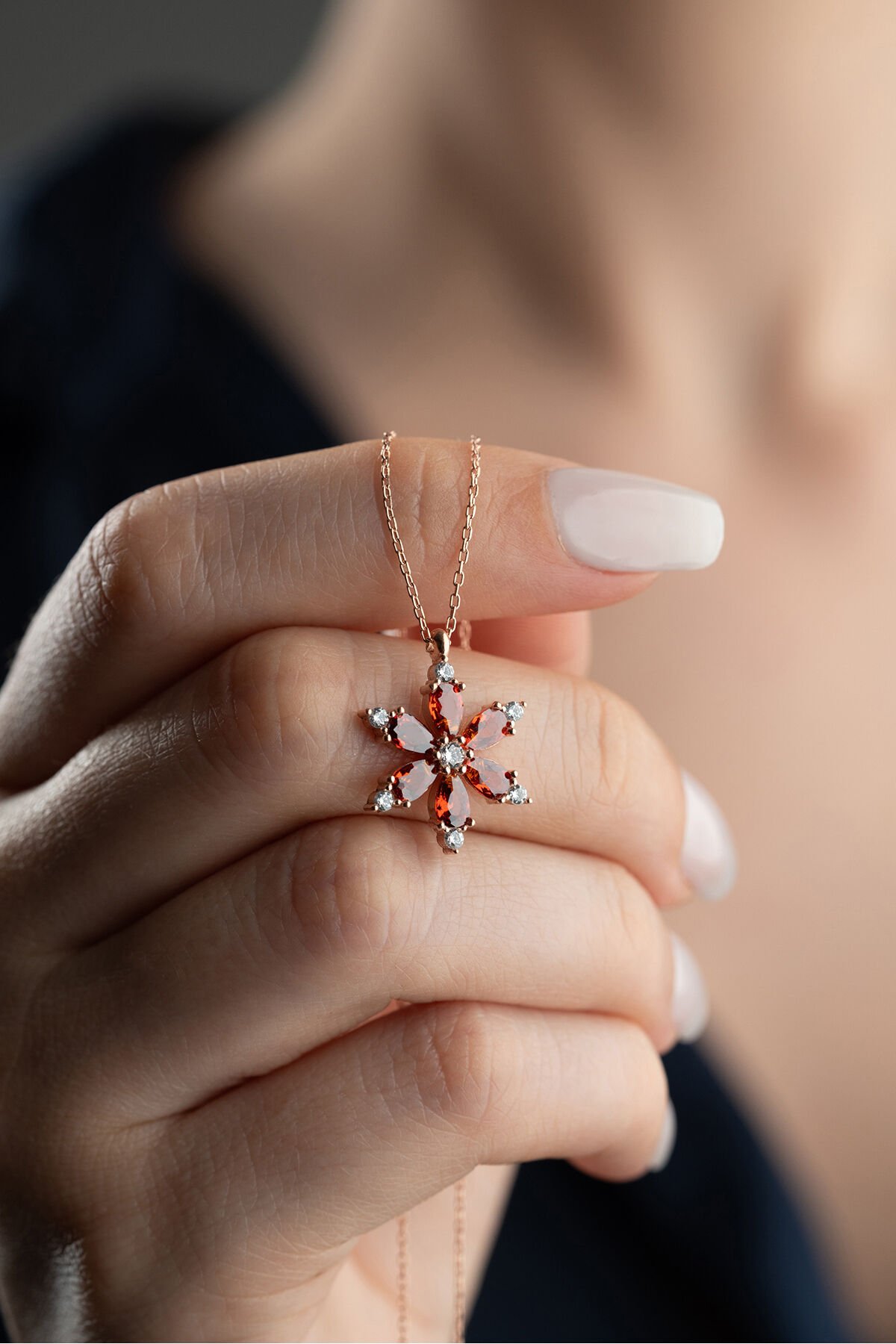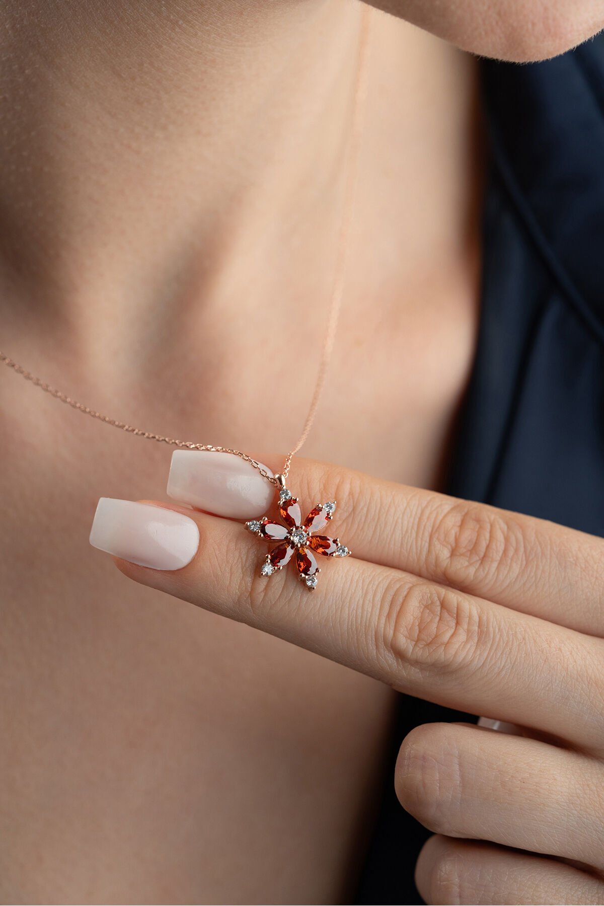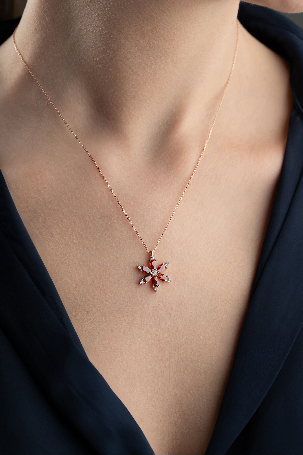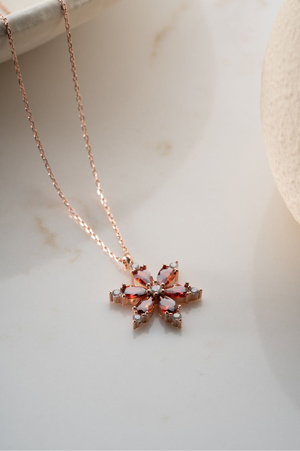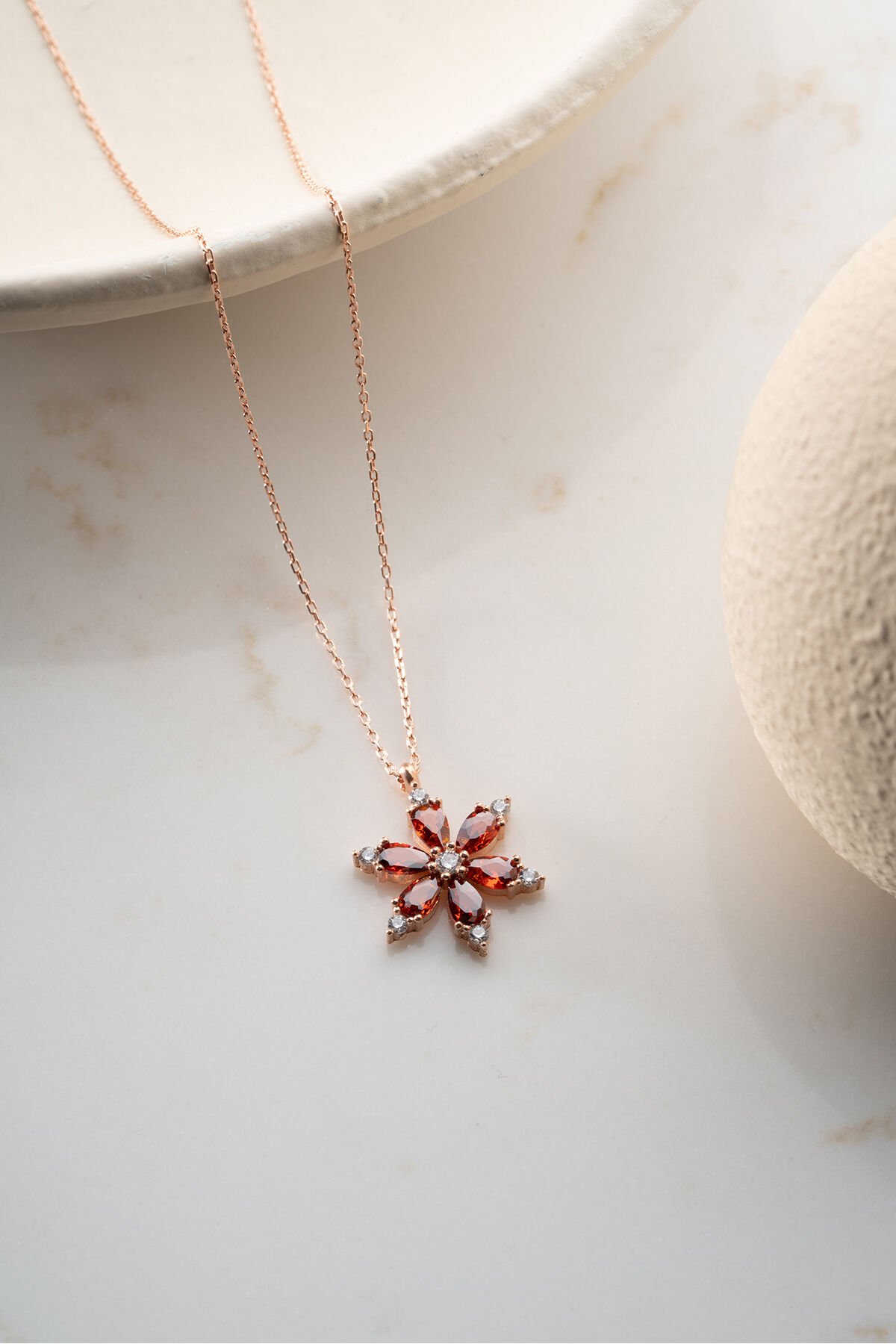 925 Ayar Gümüş Garnet Taşlı Lotus Kolye