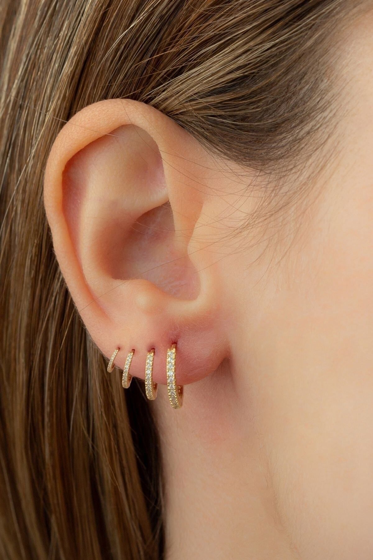925 Ayar Gümüş Gold 4'lü Set Küpe