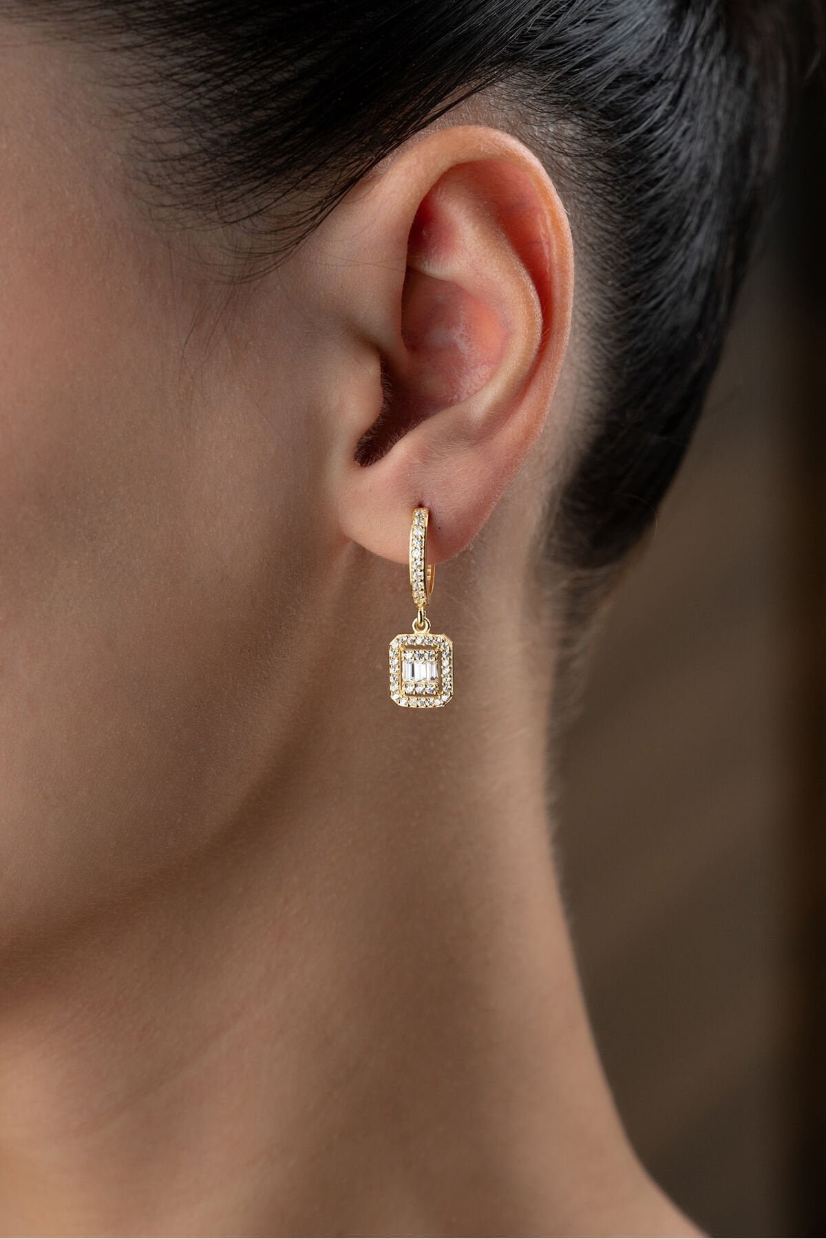 925 Ayar Gümüş Gold Baget Küpe