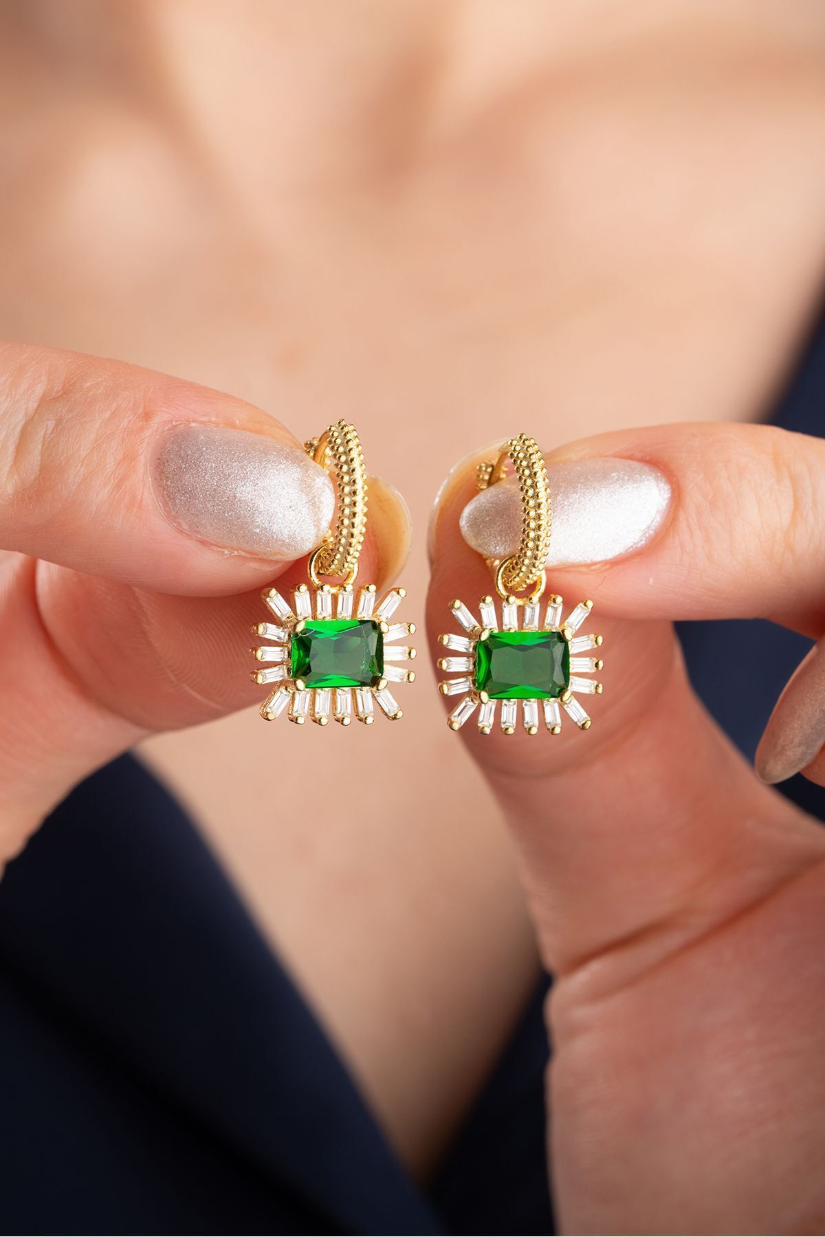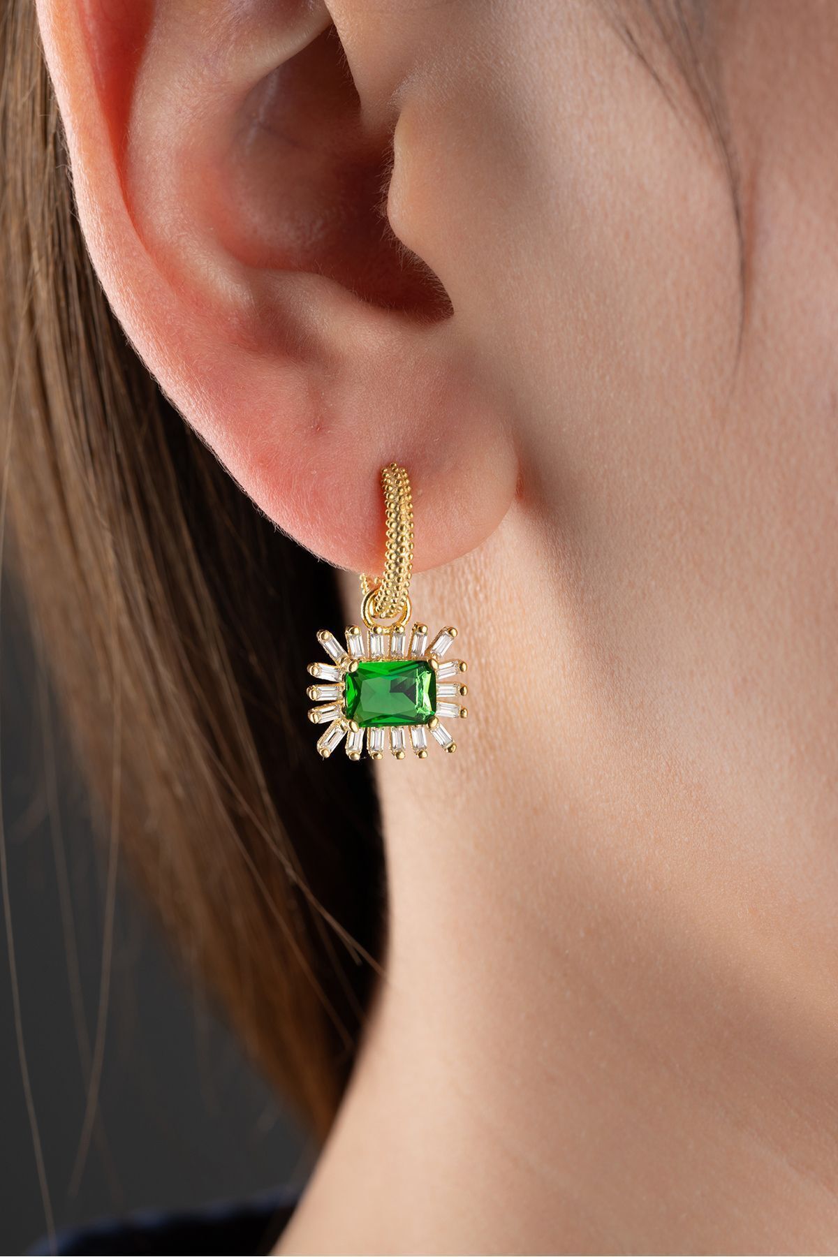 925 Ayar Gümüş Gold Baget Model Küpe