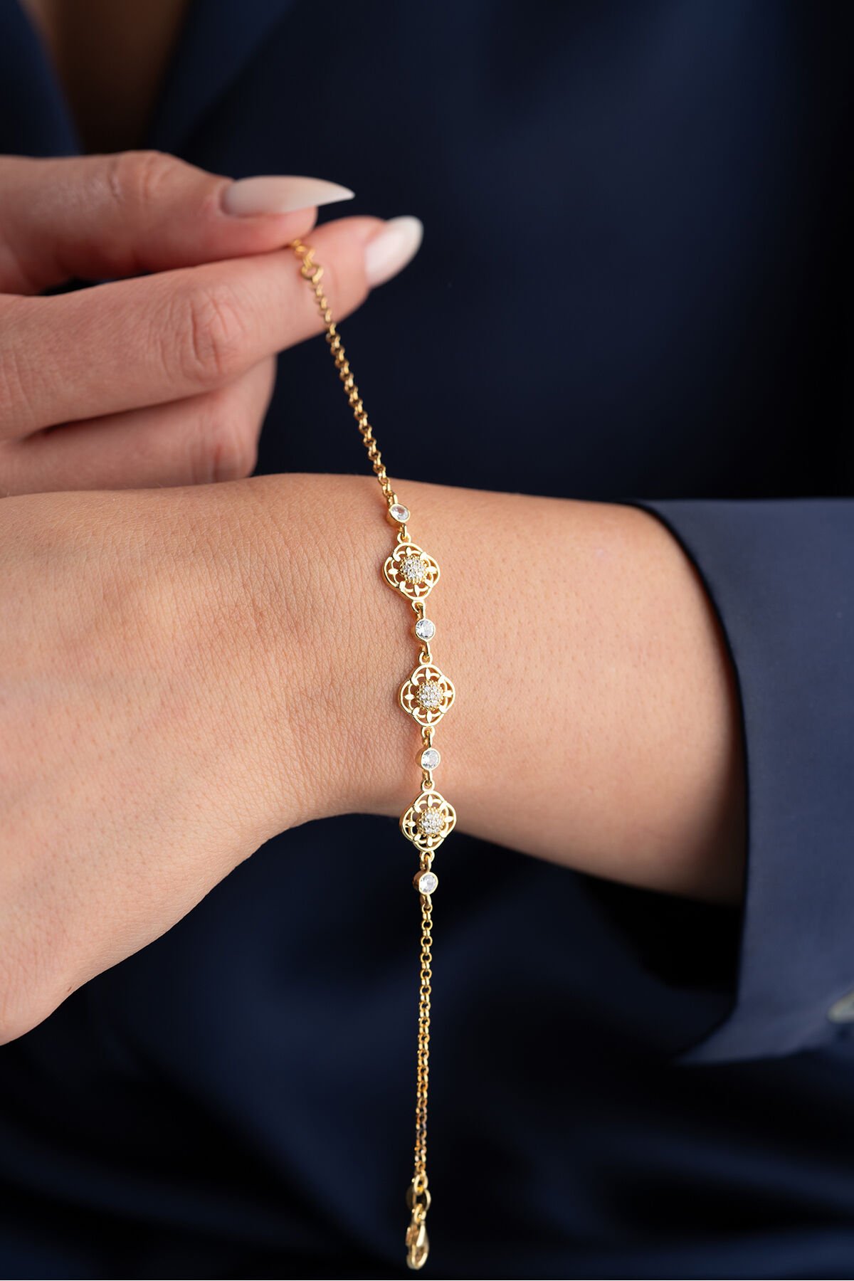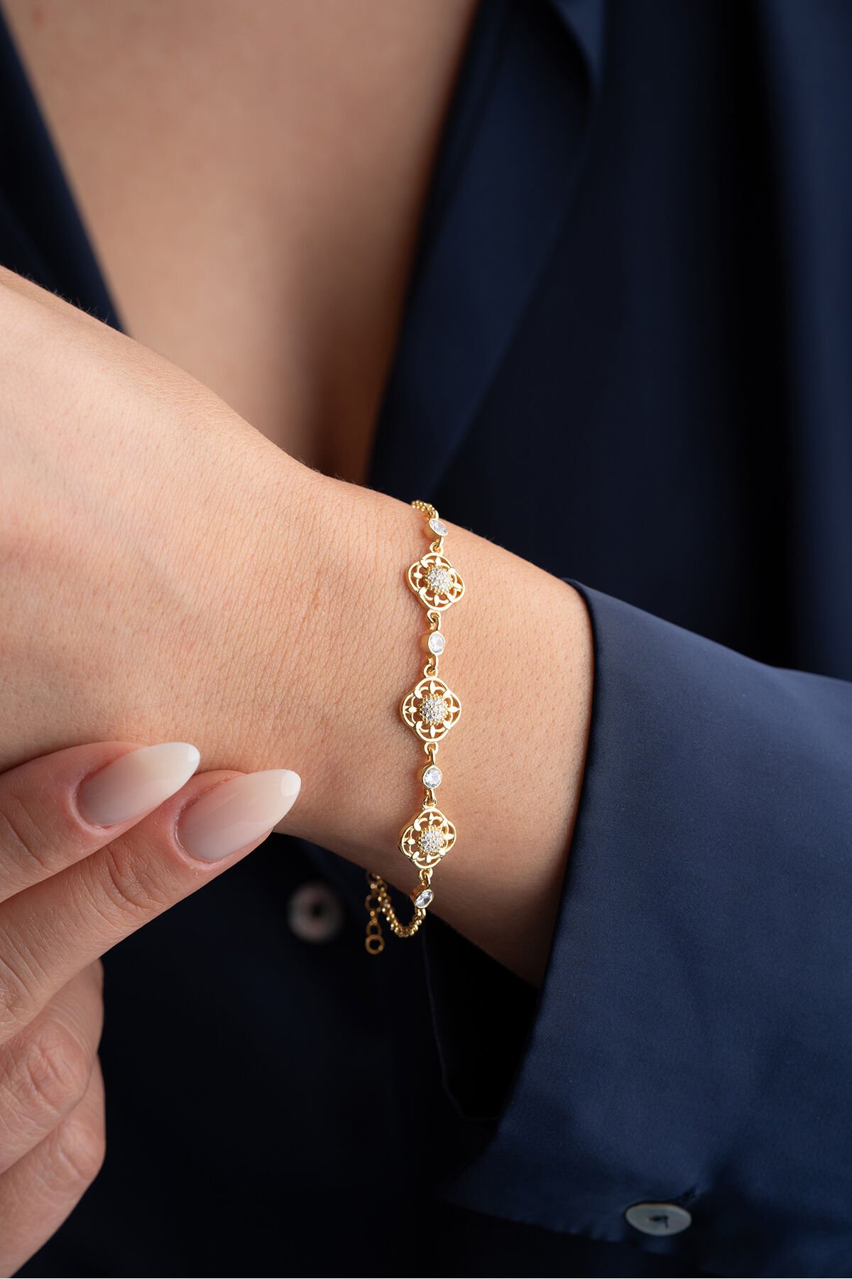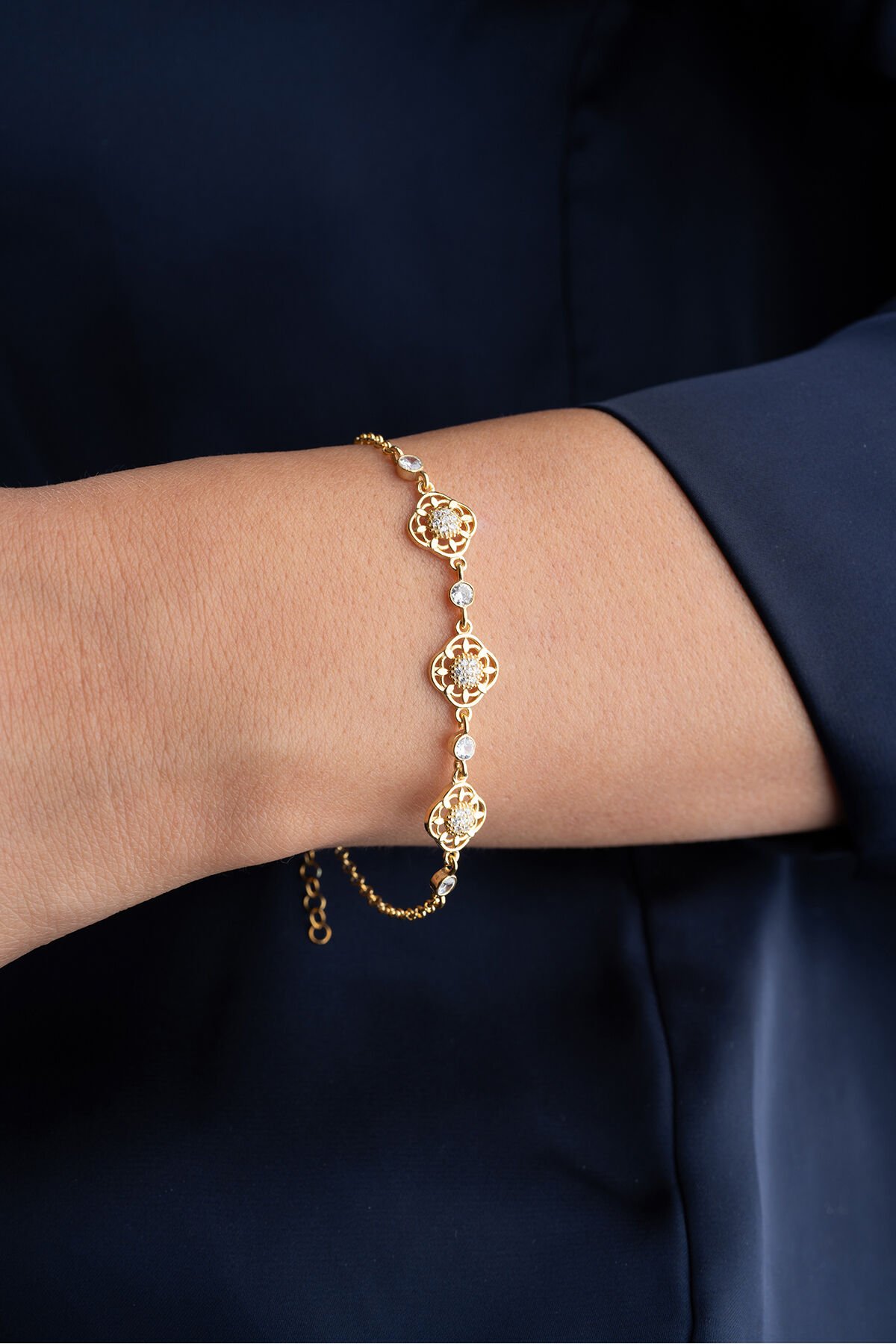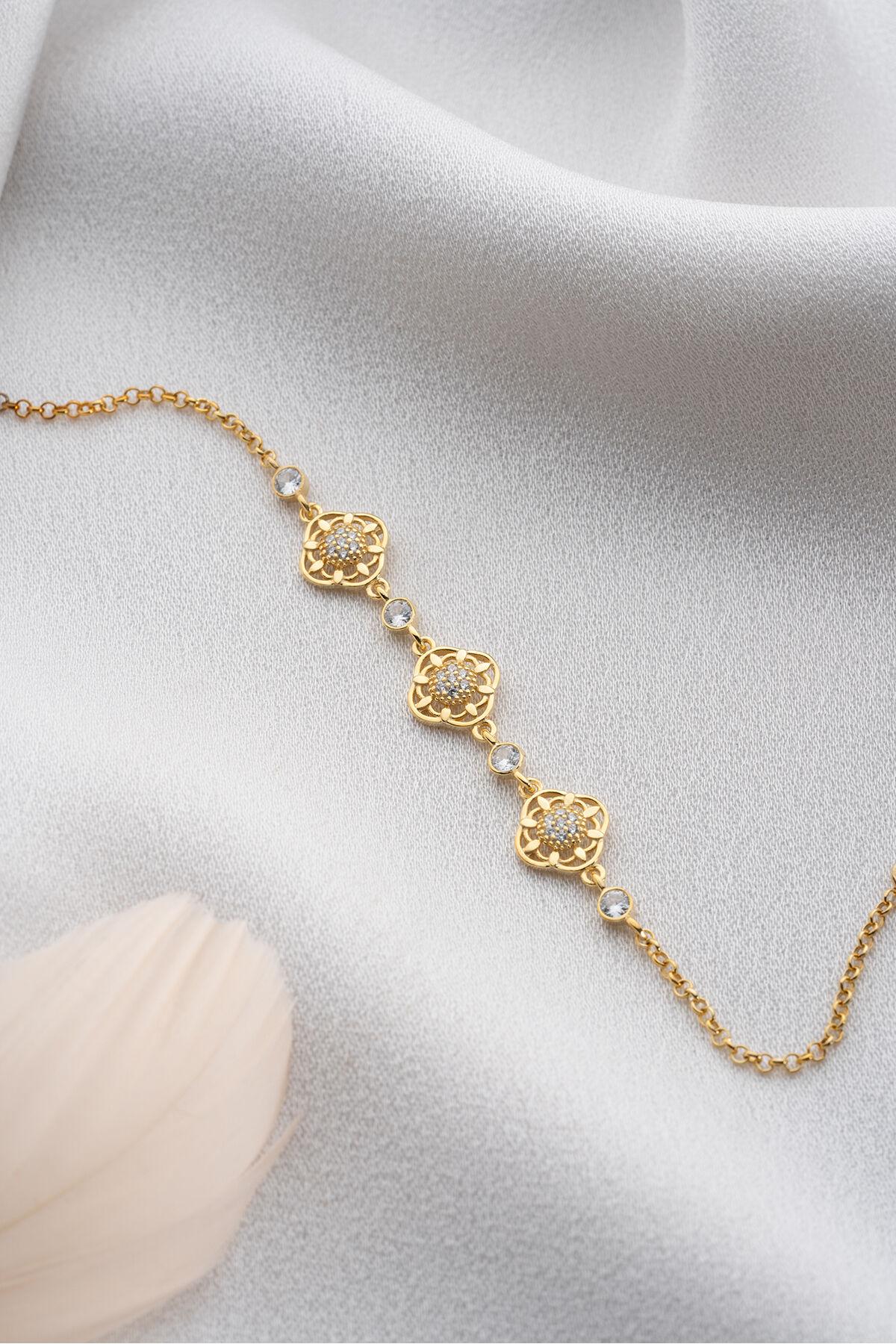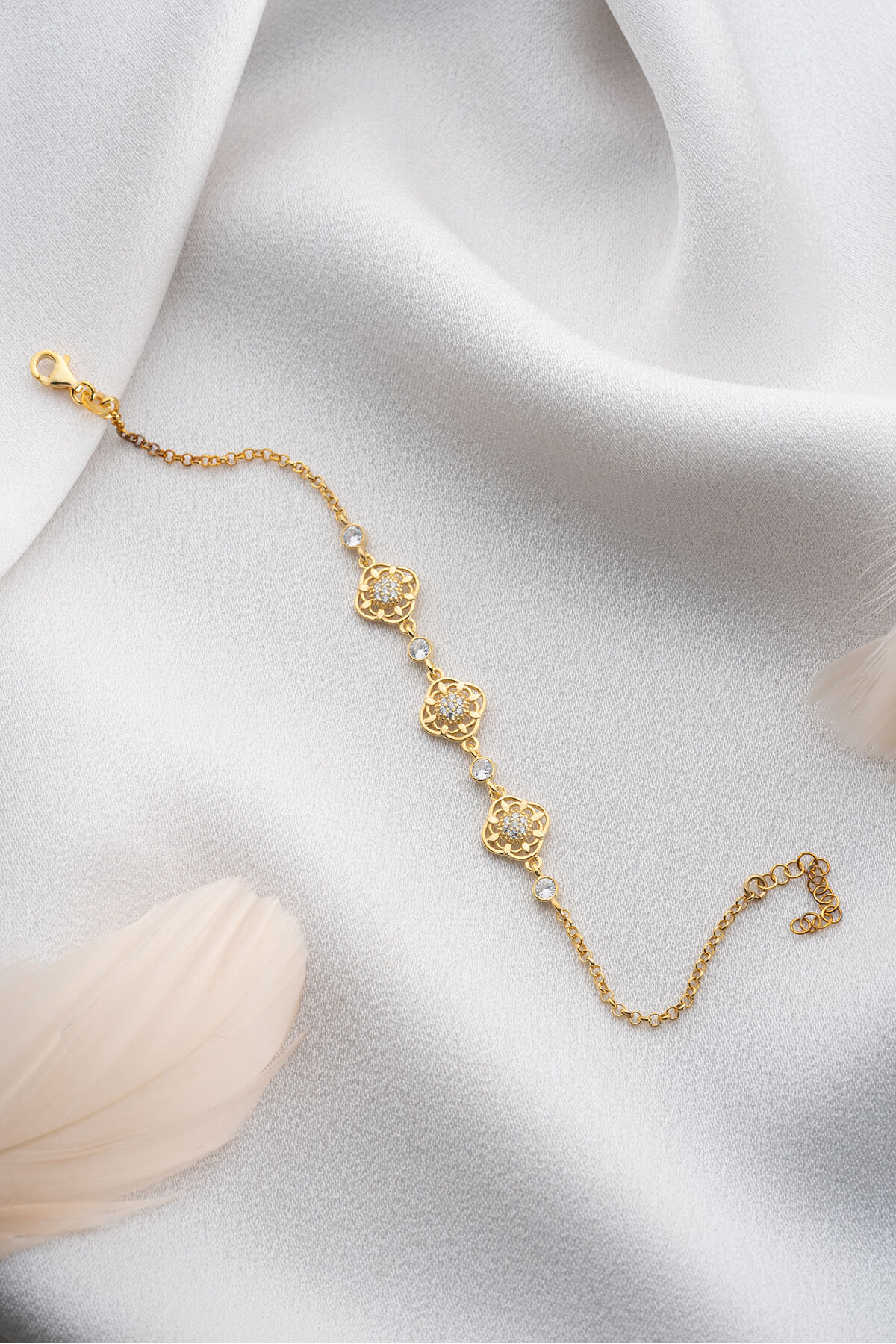 925 Ayar Gümüş Gold Çiçek Bileklik