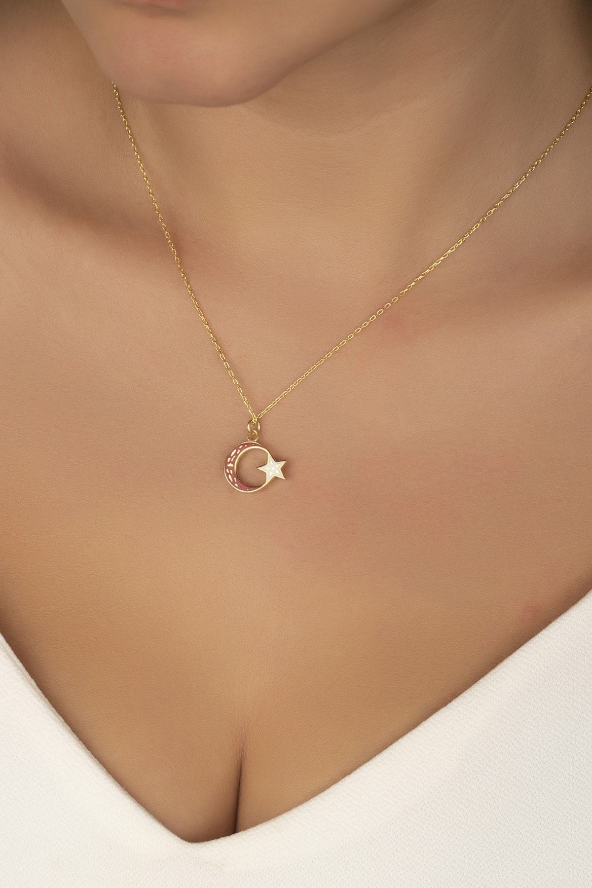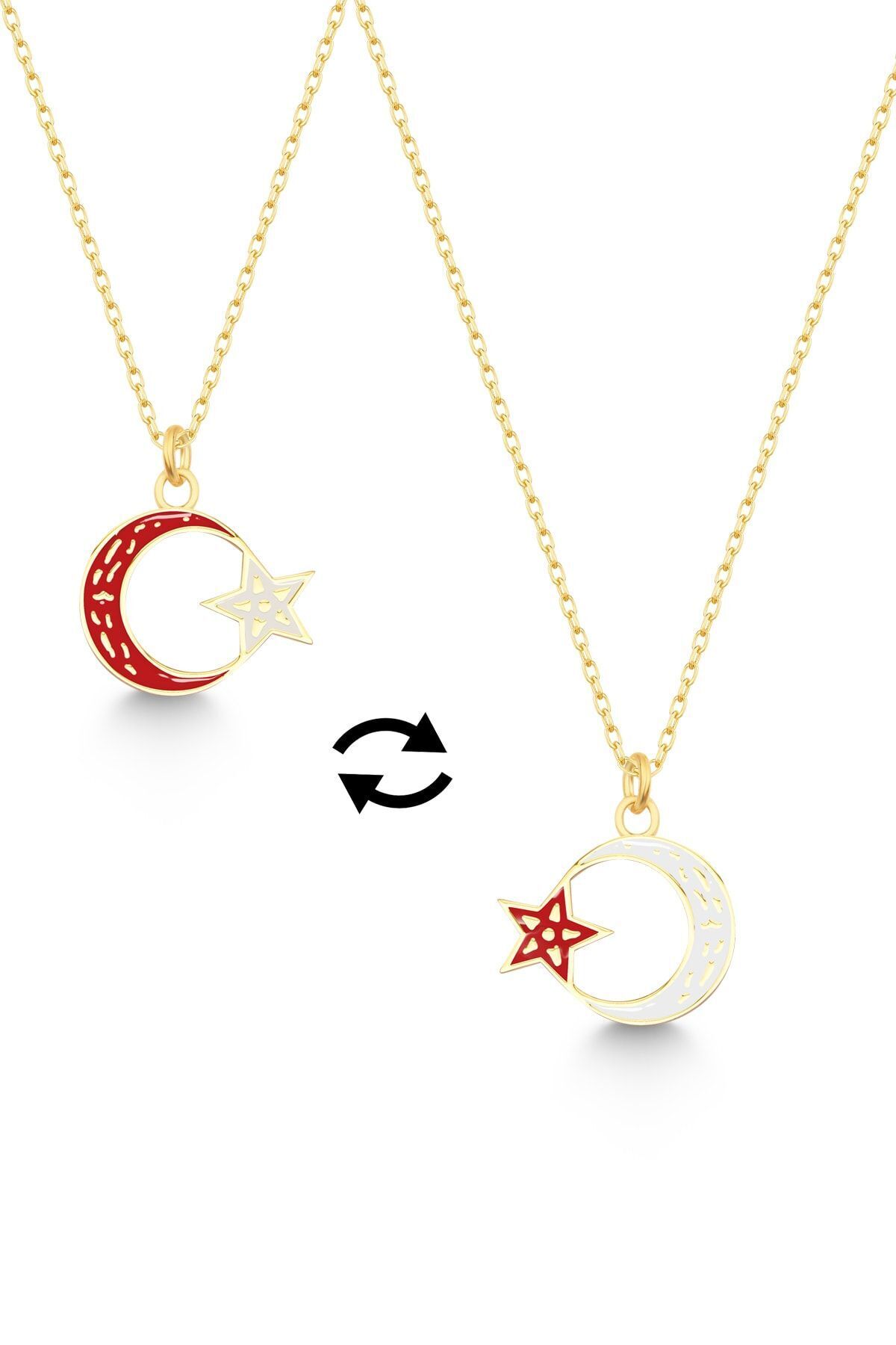 925 Ayar Gümüş Gold Çift Taraflı Ayyıldız Kolye