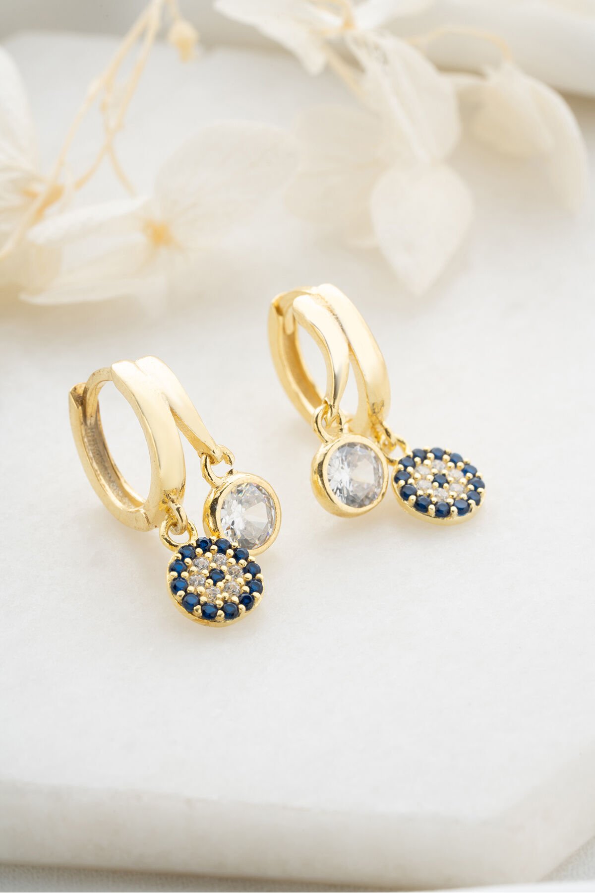 925 Ayar Gümüş Gold Çift Taşlı Nazar Küpe