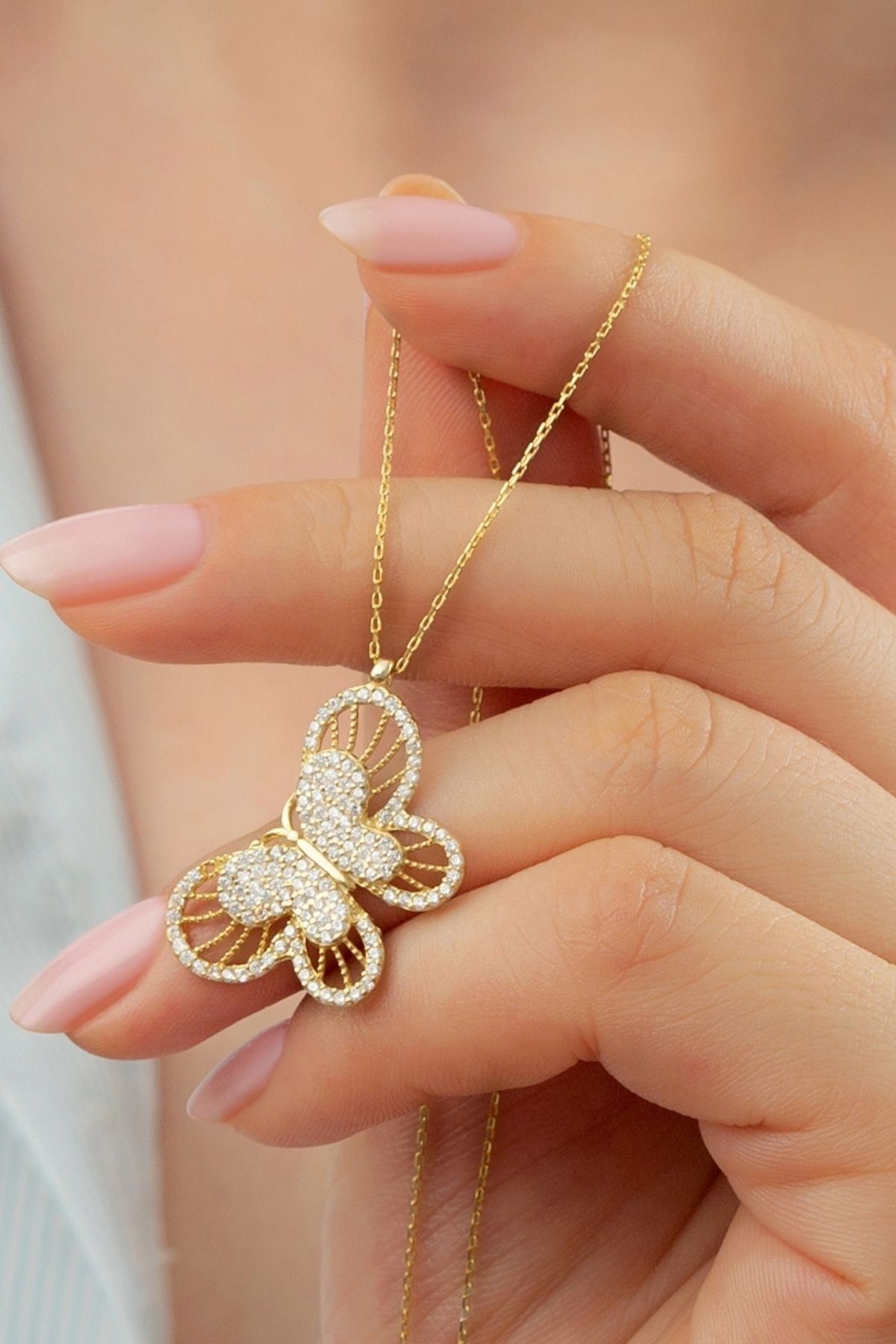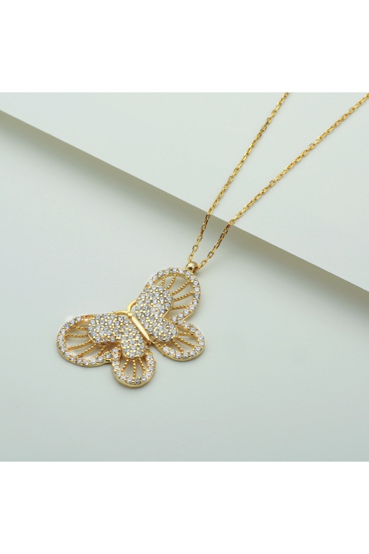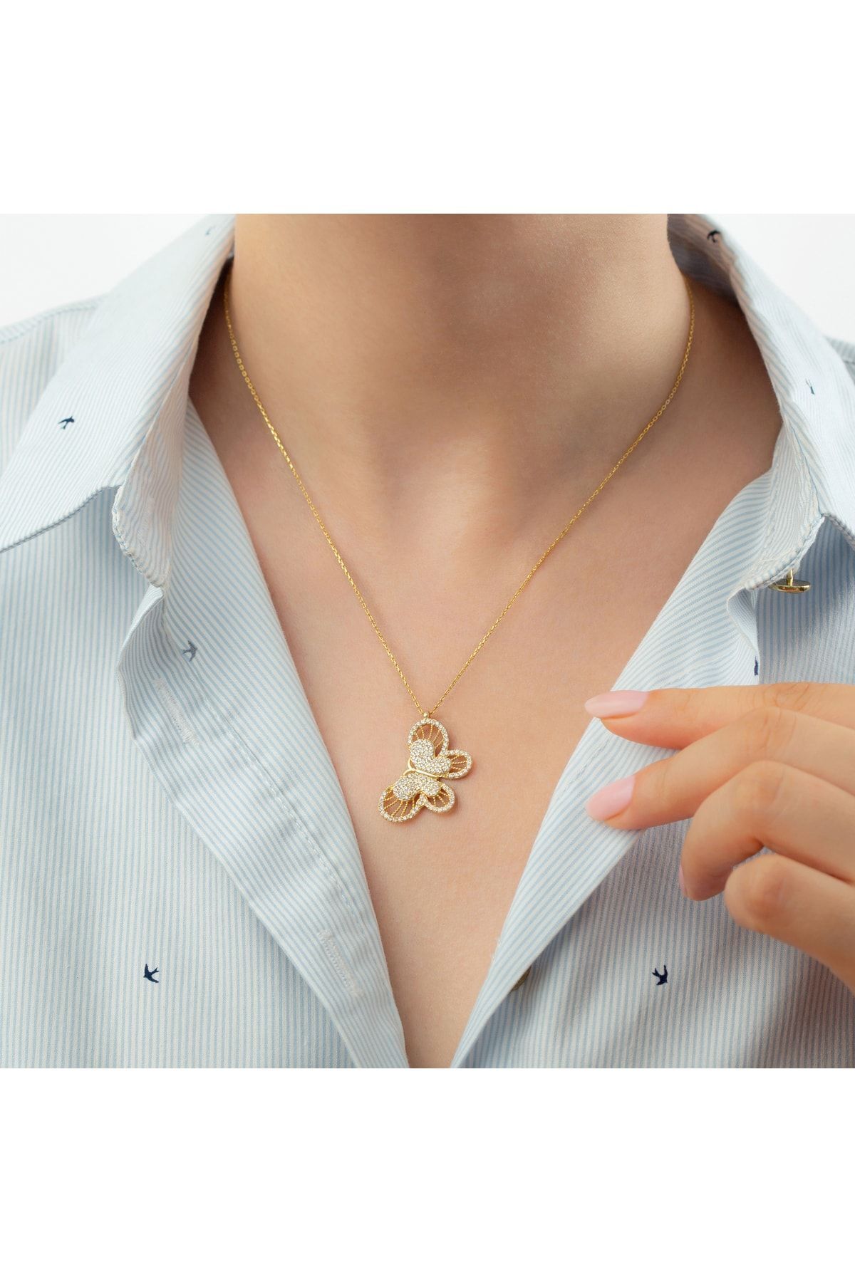 925 Ayar Gümüş Gold Çiftli Kelebek Kolye