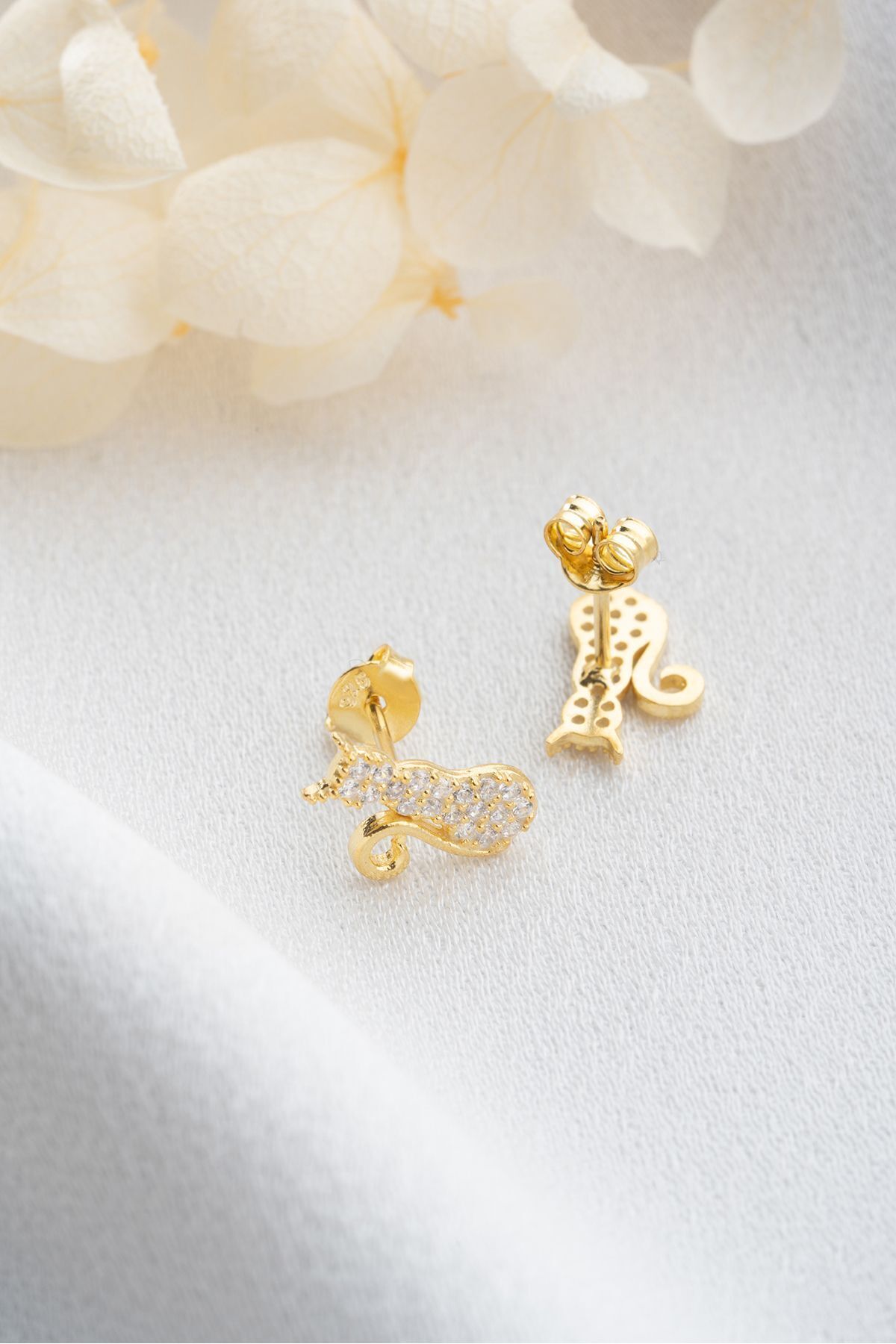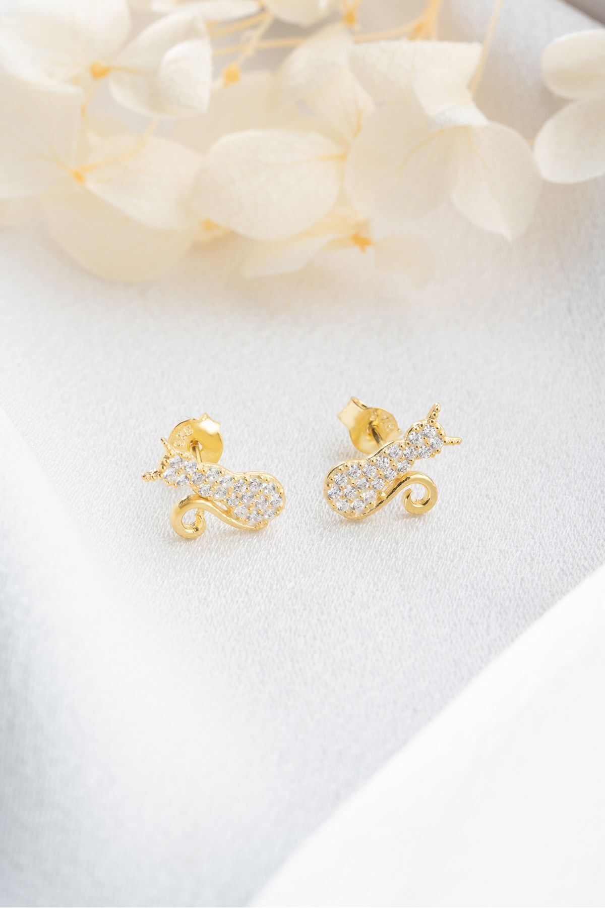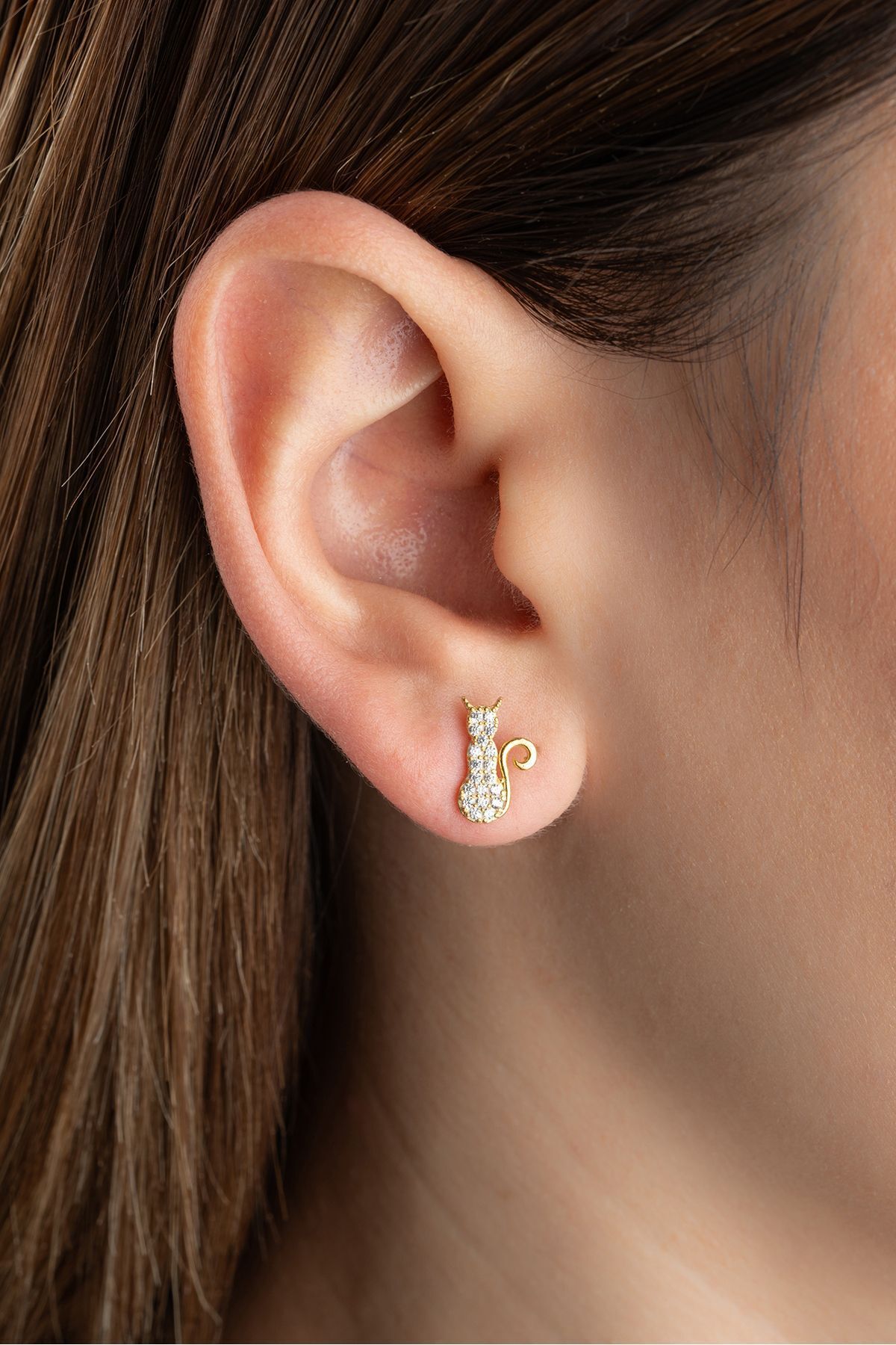 925 Ayar Gümüş Gold Çivili Kedi Küpe