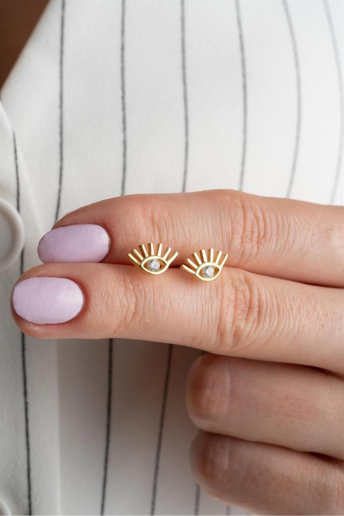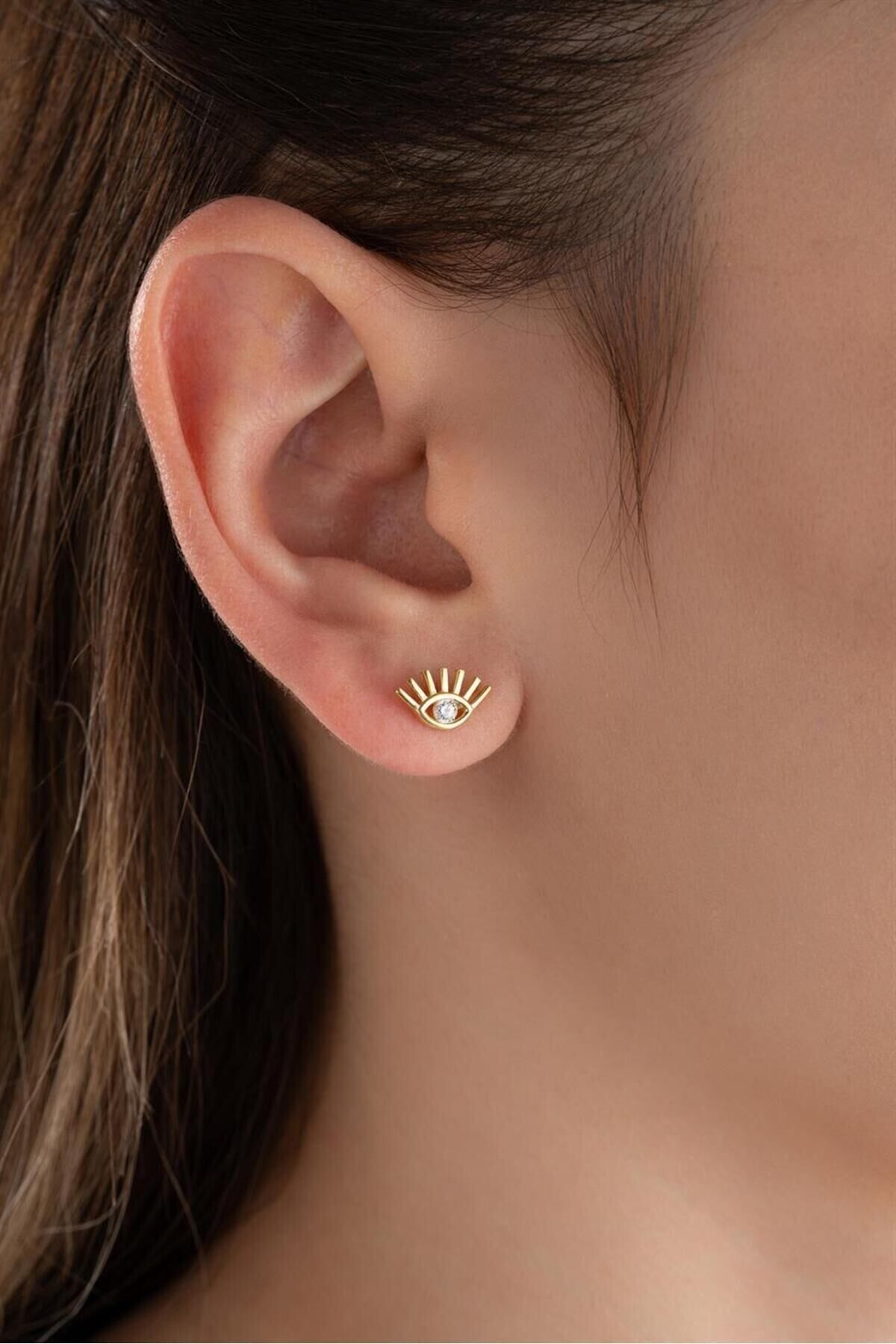 925 Ayar Gümüş Gold Damla Göz Küpe