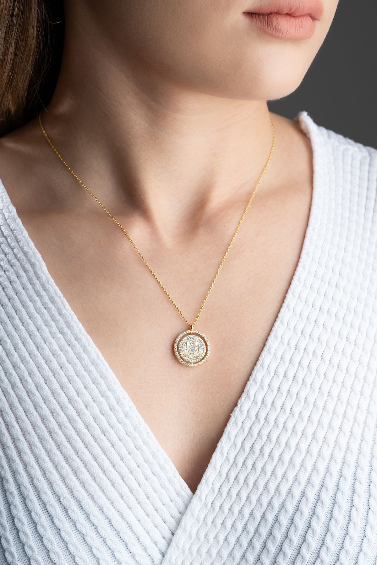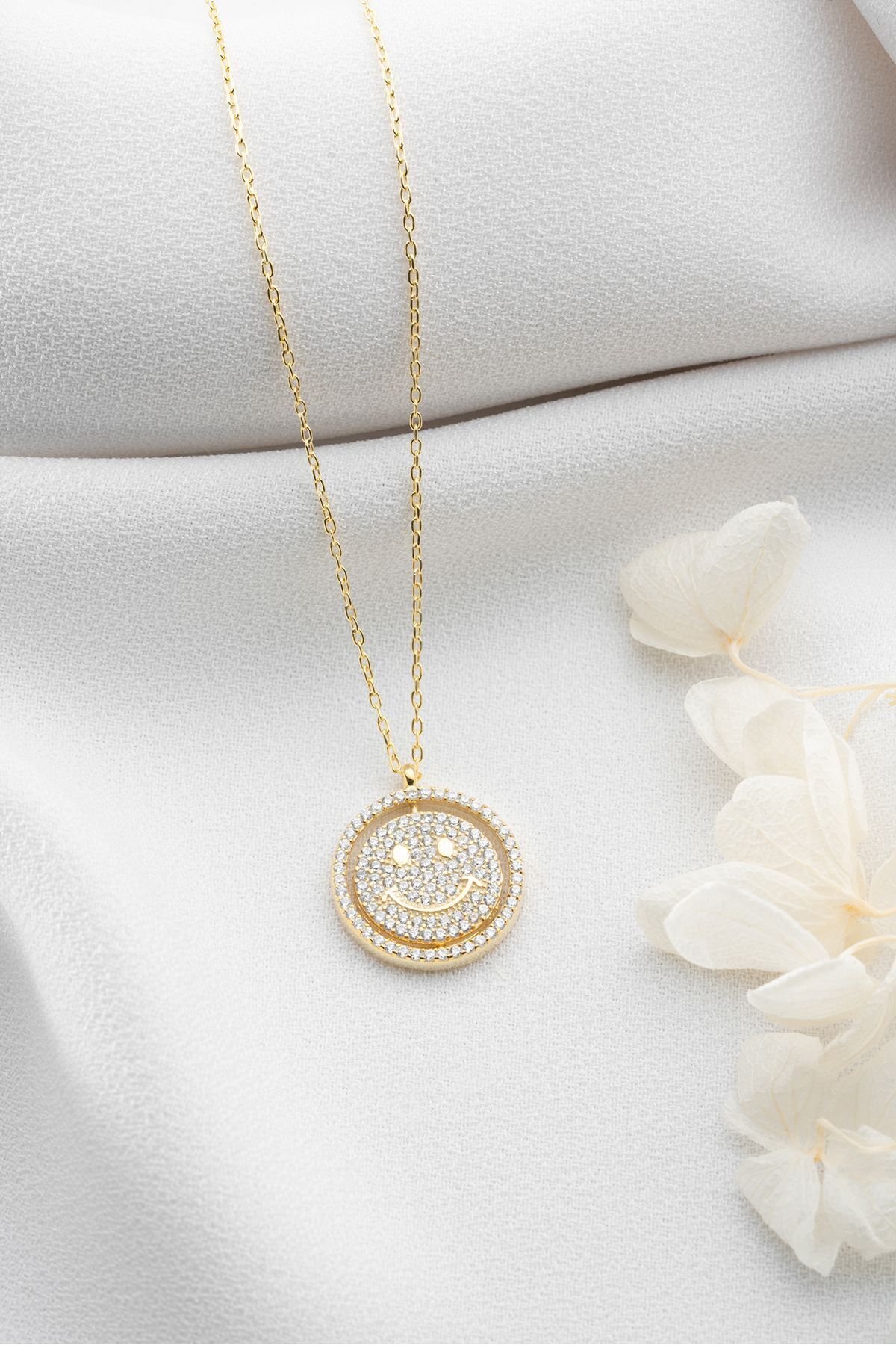 925 Ayar Gümüş Gold Dönebilen Gülen Yüz Kolye