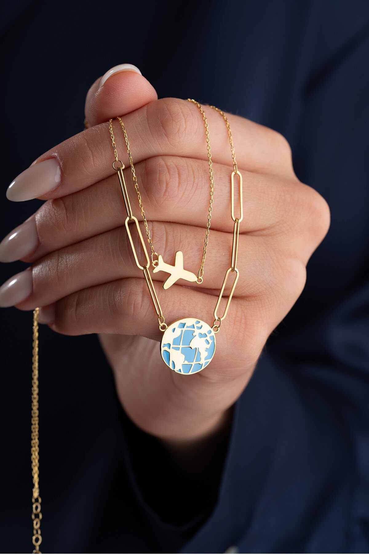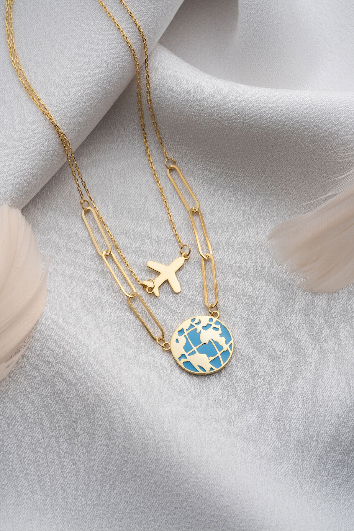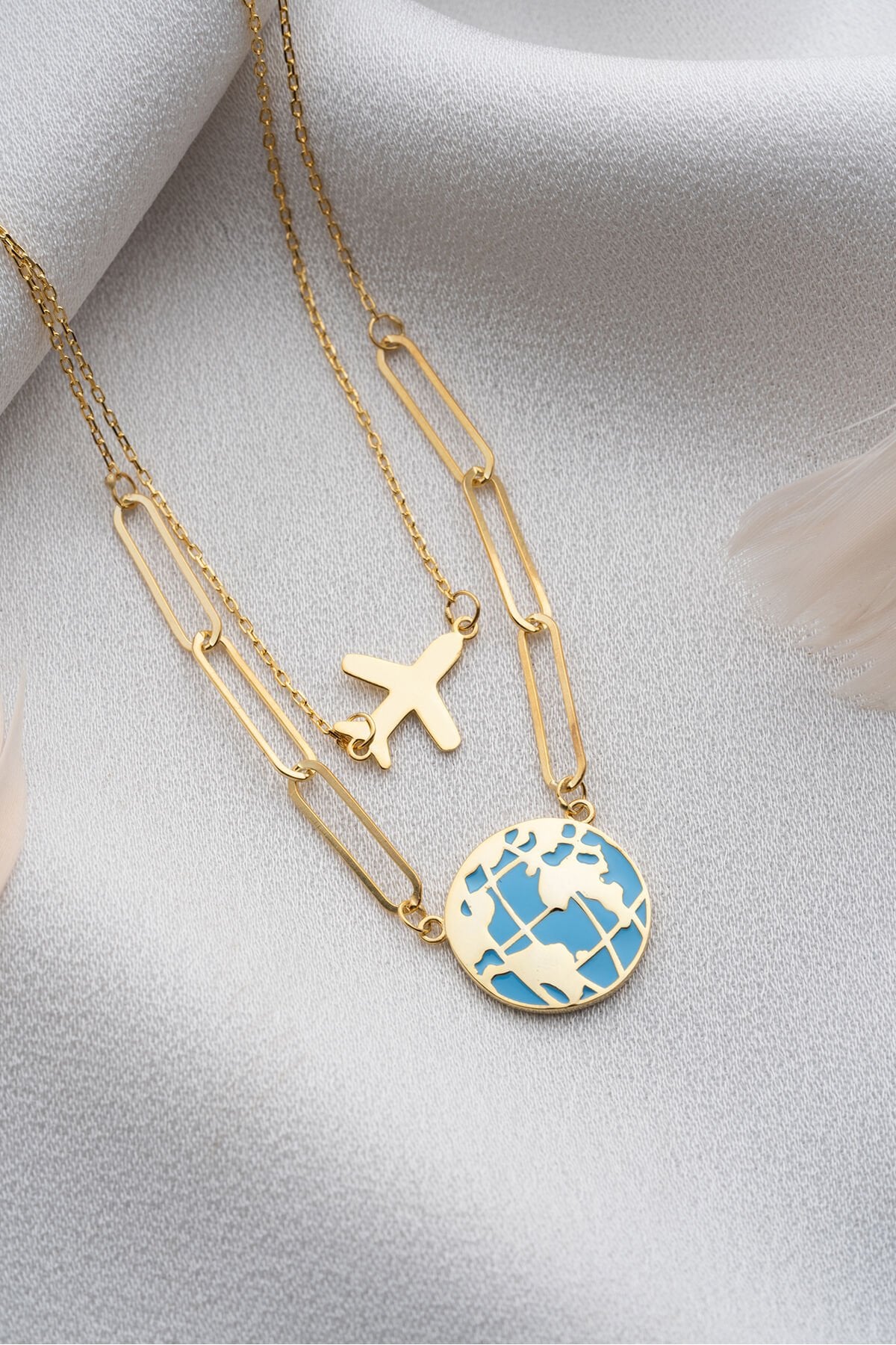 925 Ayar Gümüş Gold Dünya Kolye