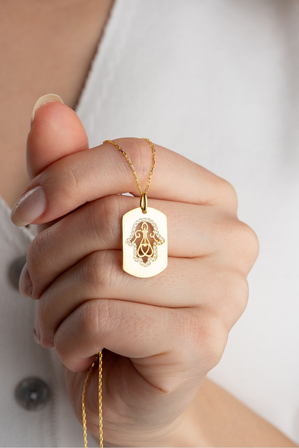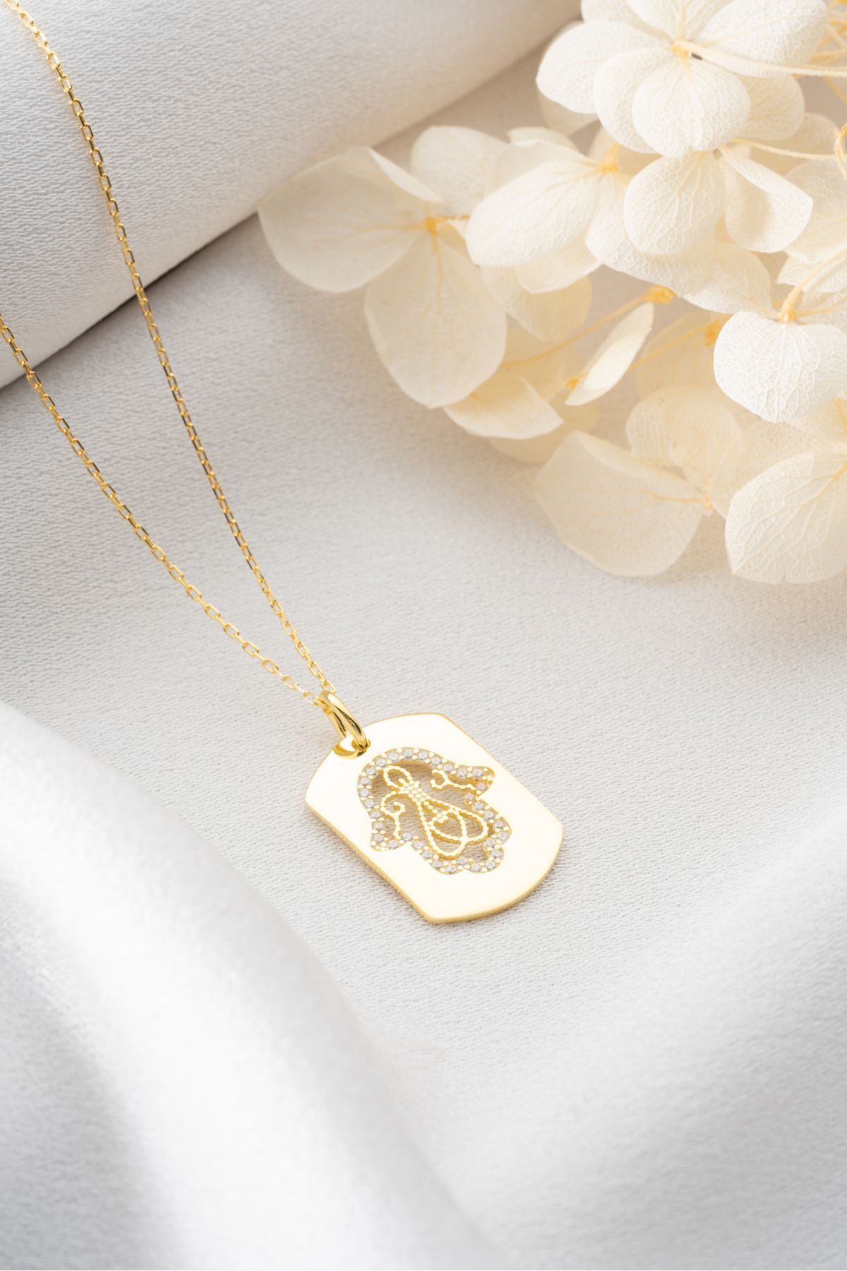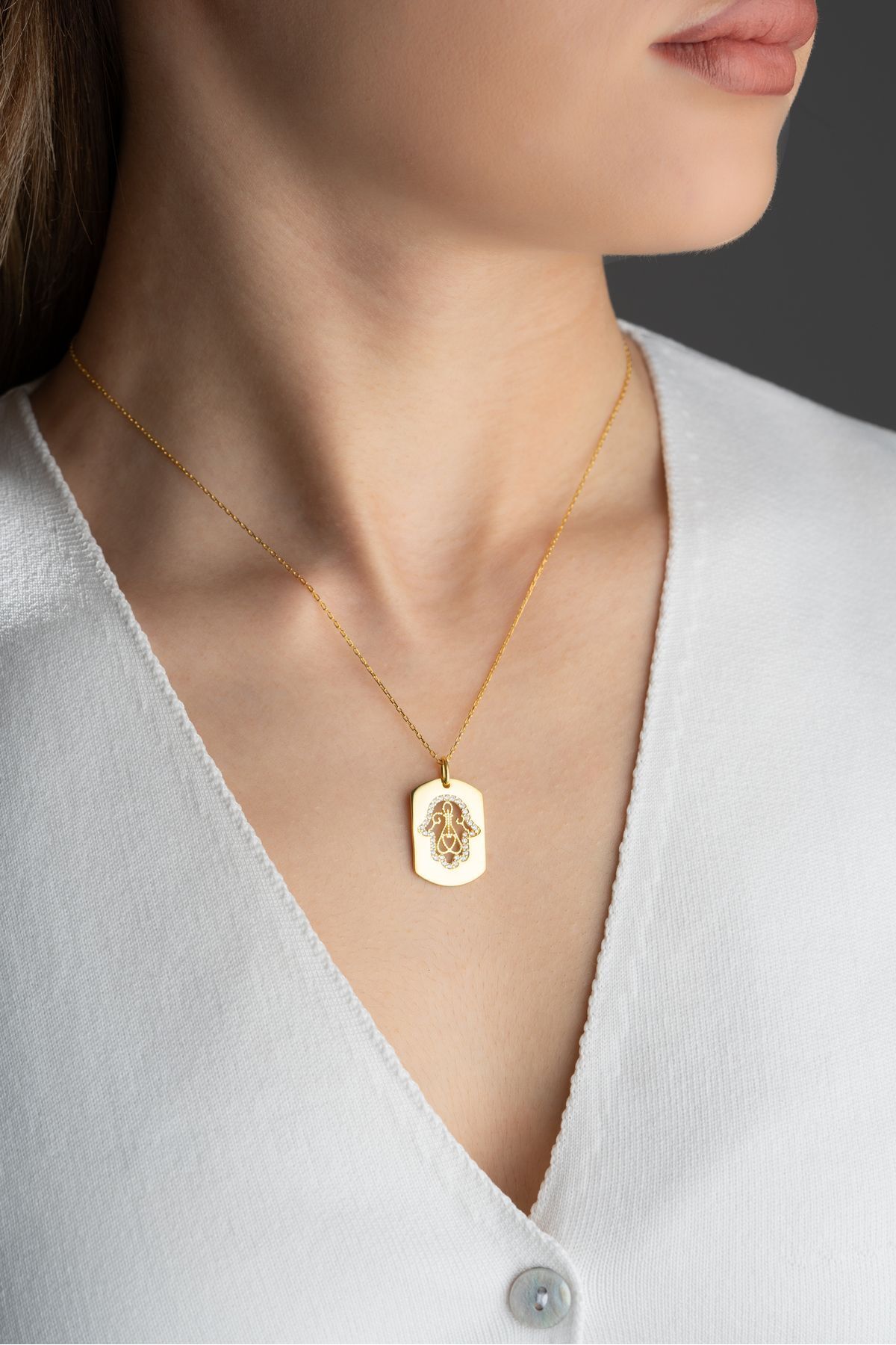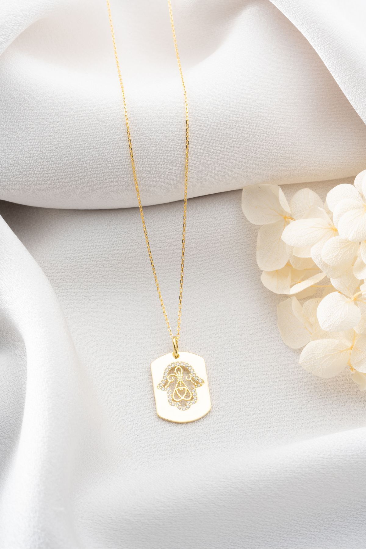 925 Ayar Gümüş Gold Fatma Ana Eli Kolye