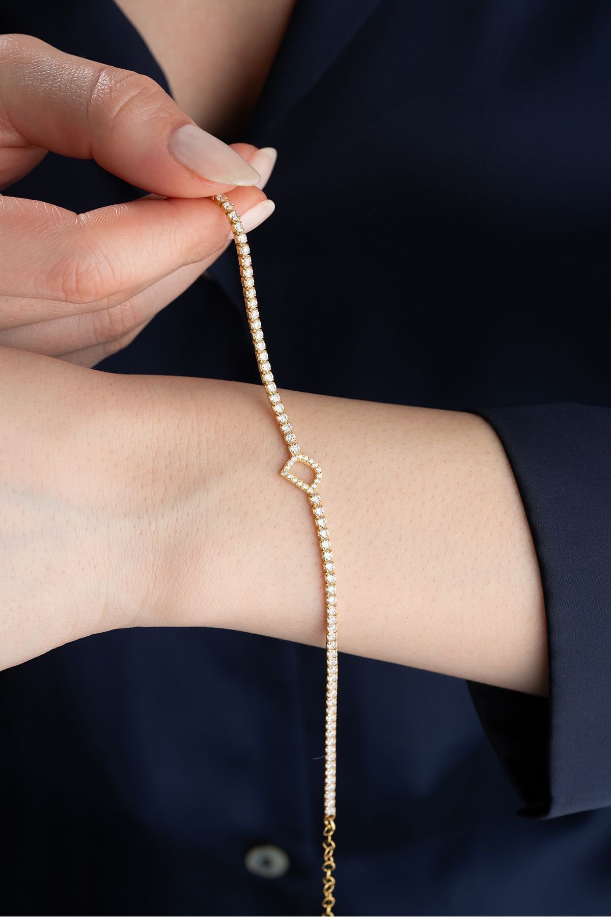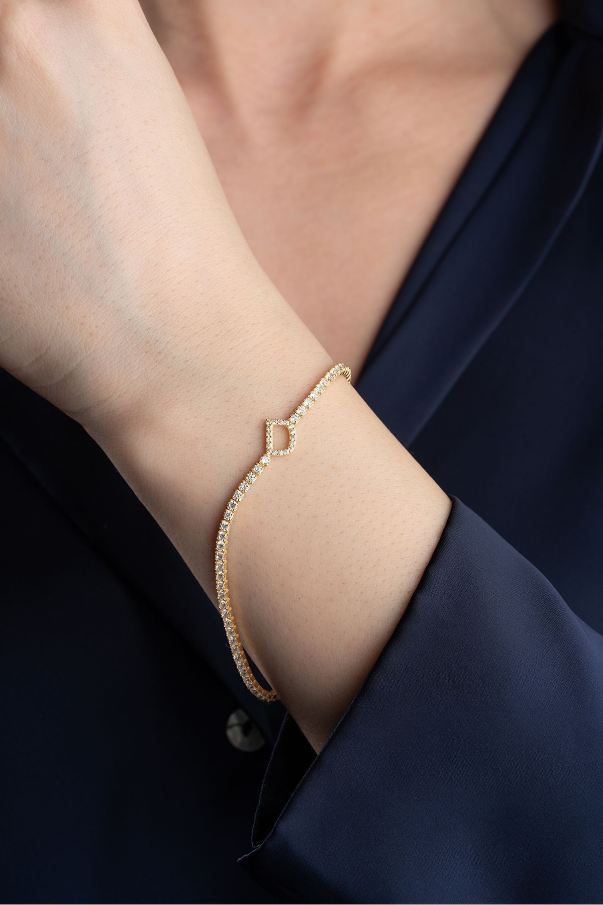 925 Ayar Gümüş Gold Harf Su Yolu Bileklik