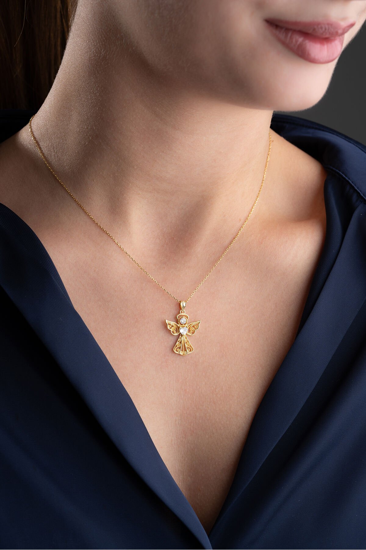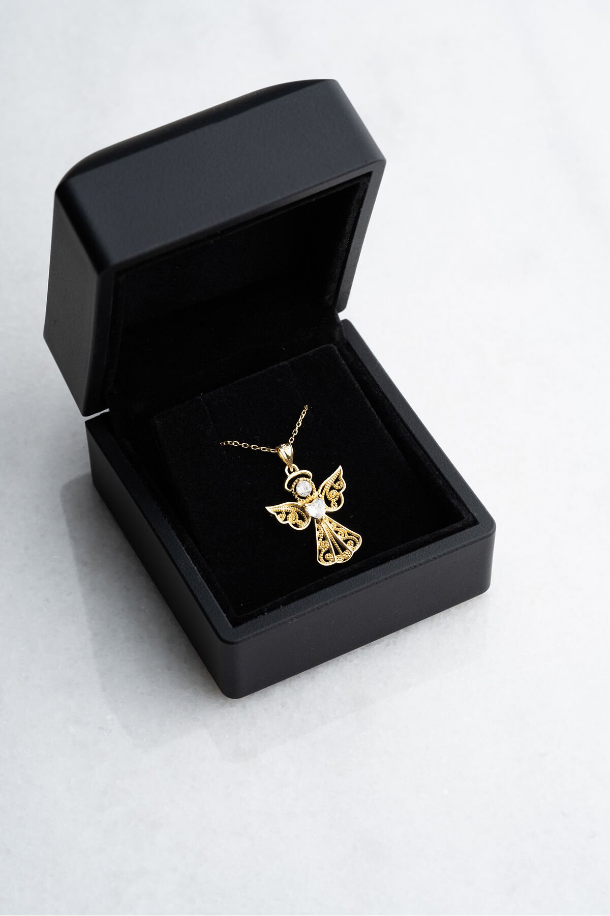 925 Ayar Gümüş Gold Işıklı Kutu Kalp Tektaş Melek Kolye