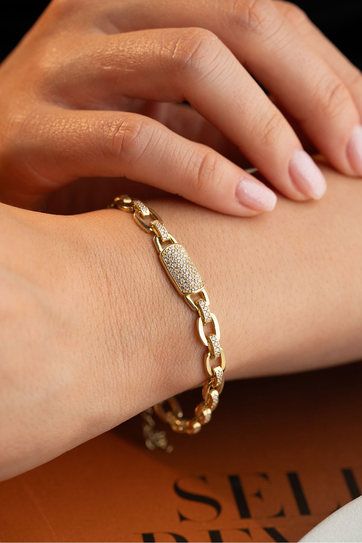925 Ayar Gümüş Gold Kaplama Özel Tasarım Bileklik