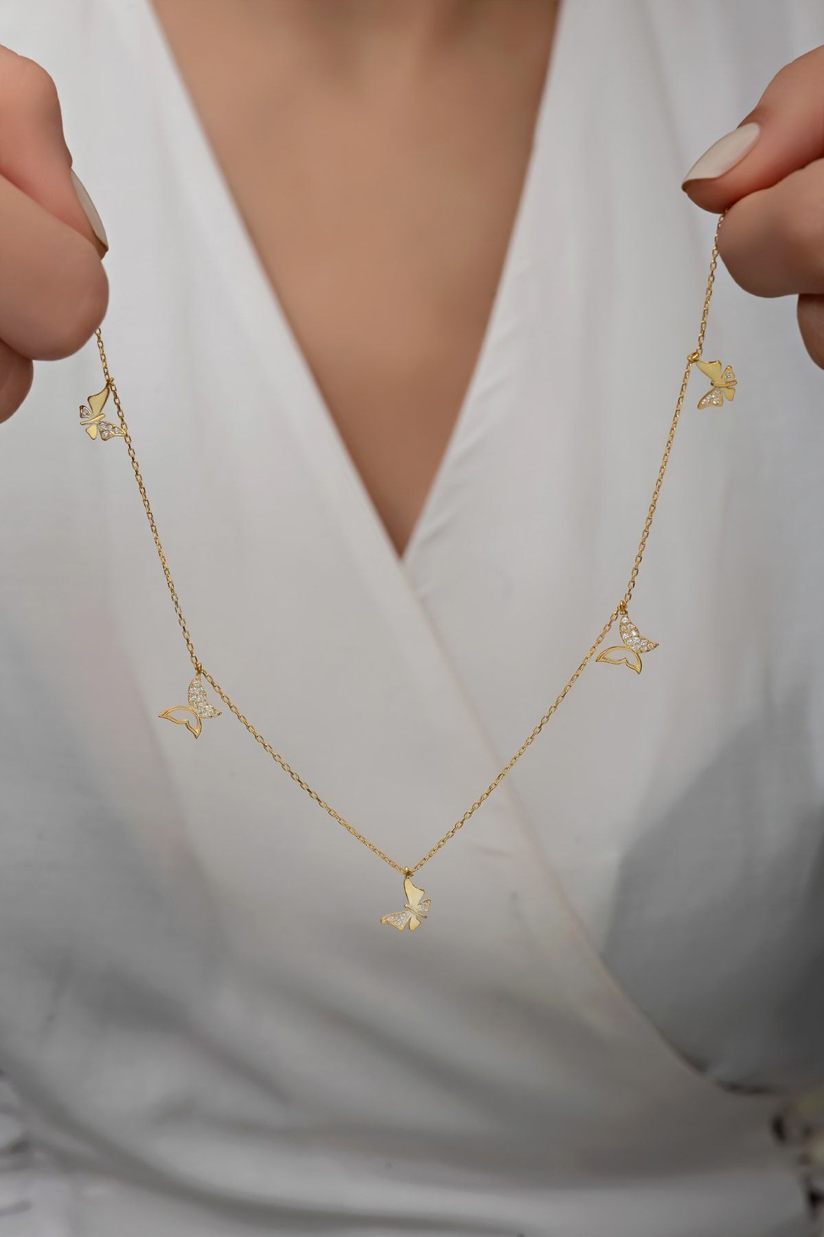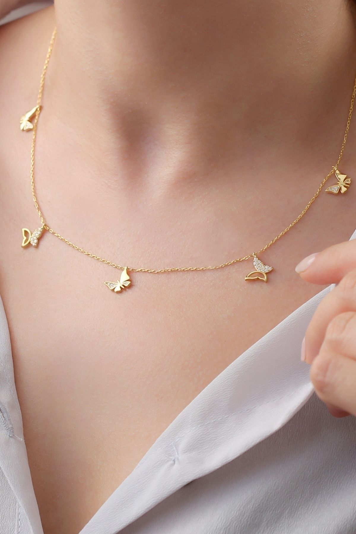 925 Ayar Gümüş Gold Kelebek Şans Kolye