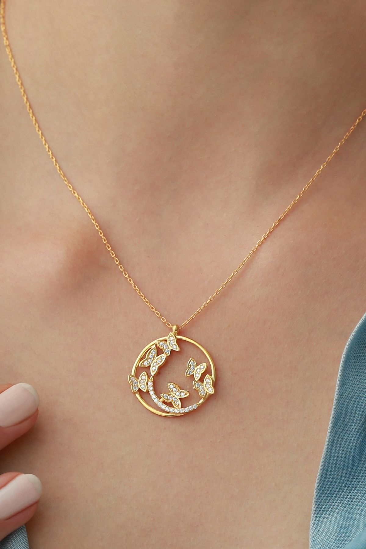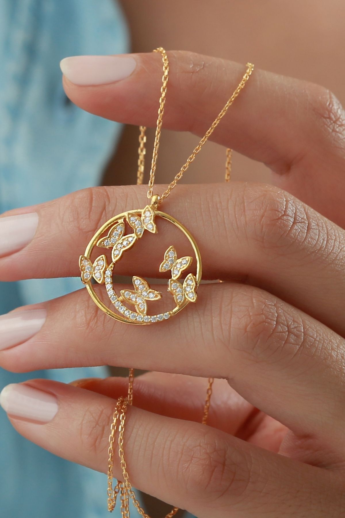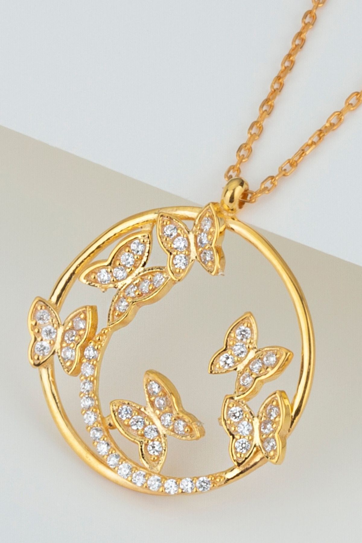 925 Ayar Gümüş Gold Kelebekli Halka Kolye