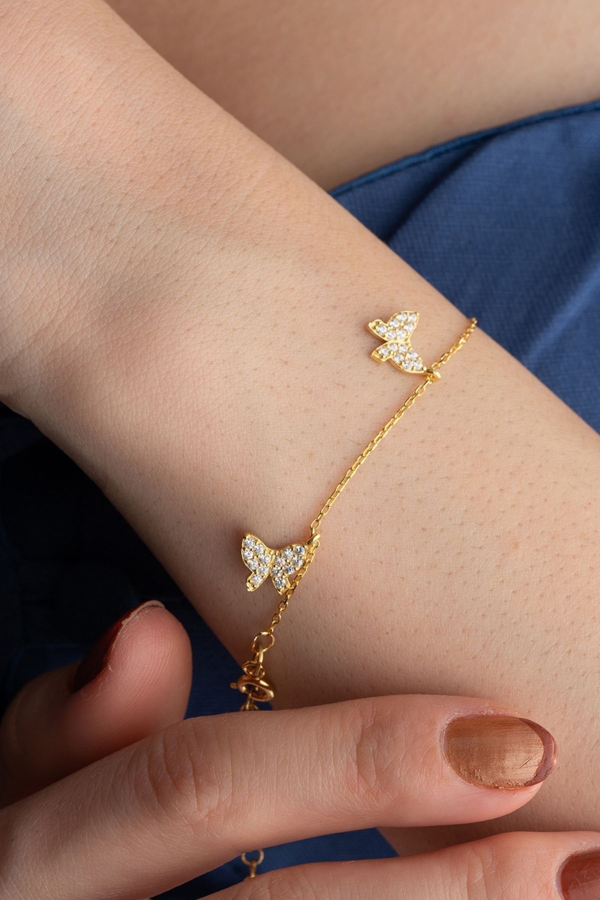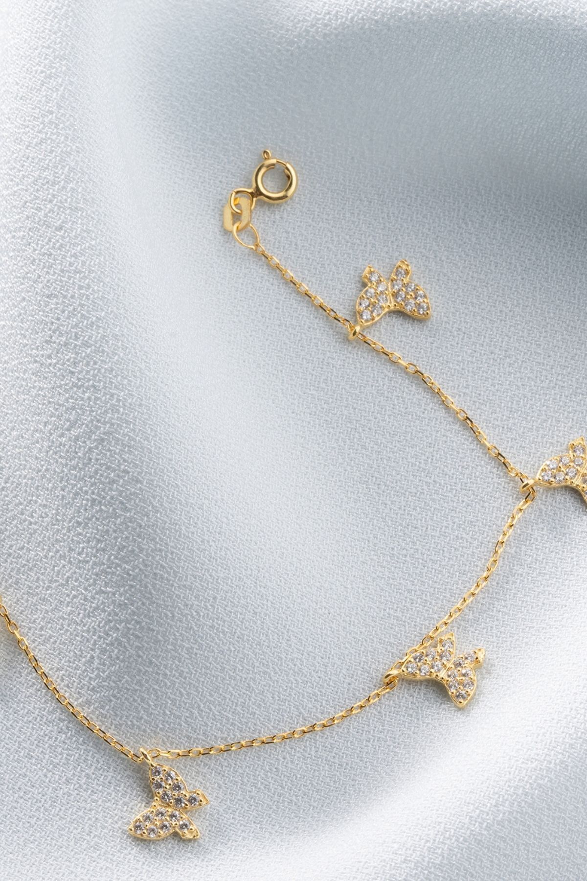 925 Ayar Gümüş Gold Kelebekli Şans Bileklik