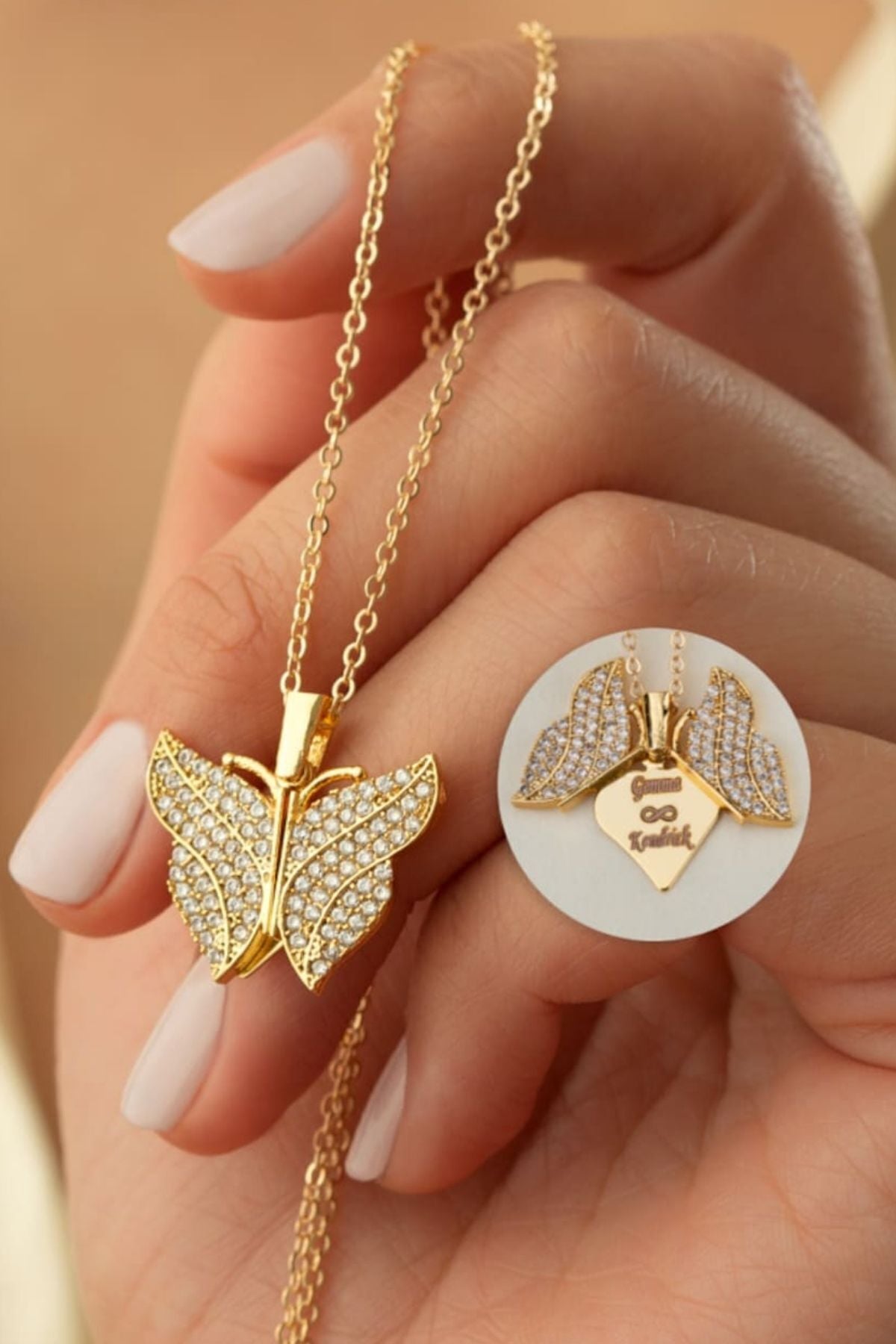 925 Ayar Gümüş Gold Kişiye Özel Açılan Kelebek Kolye