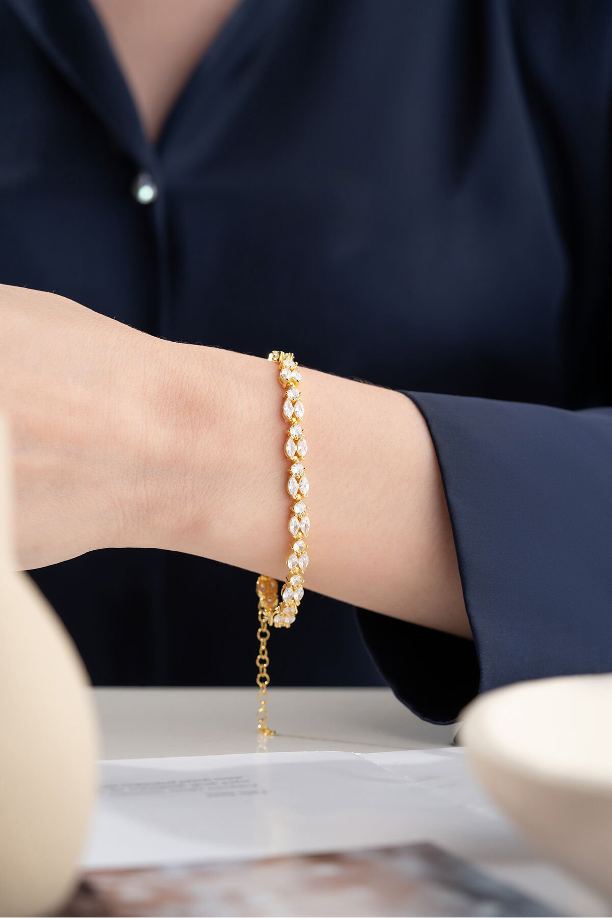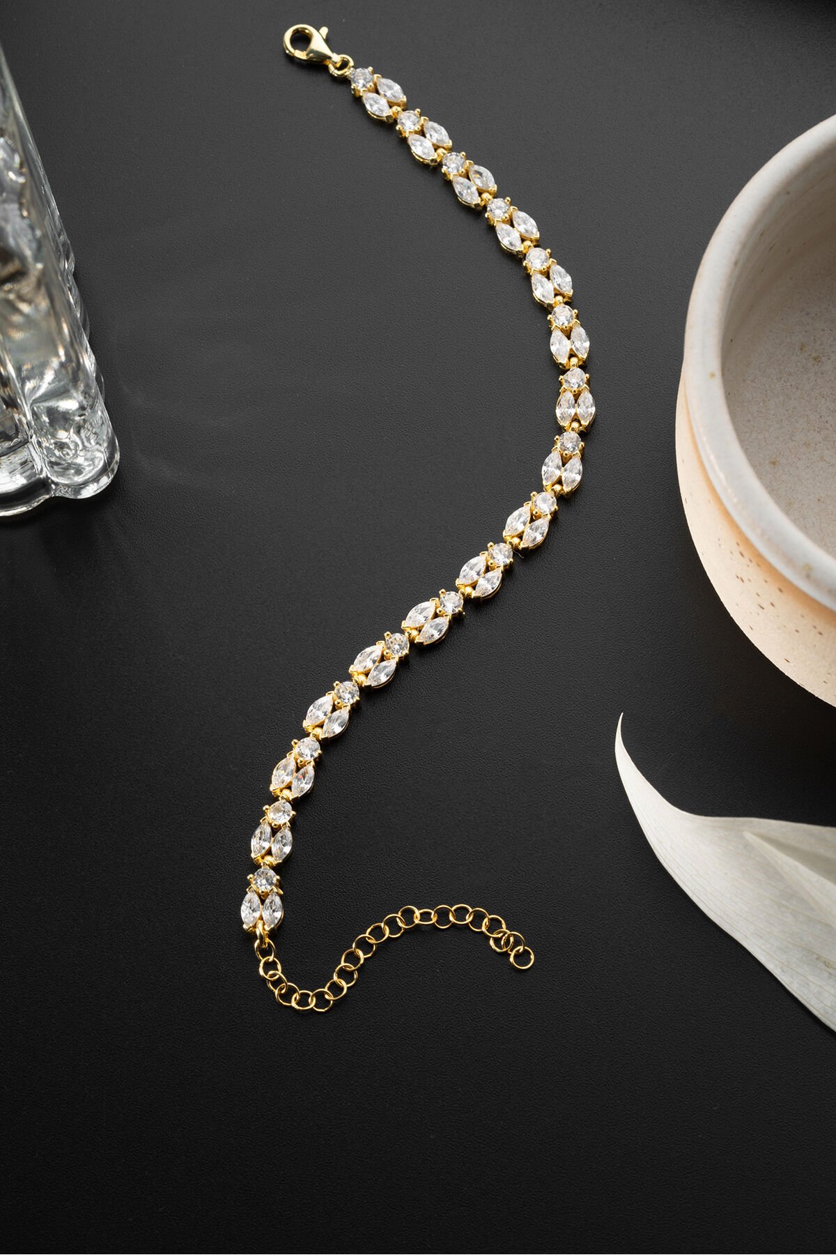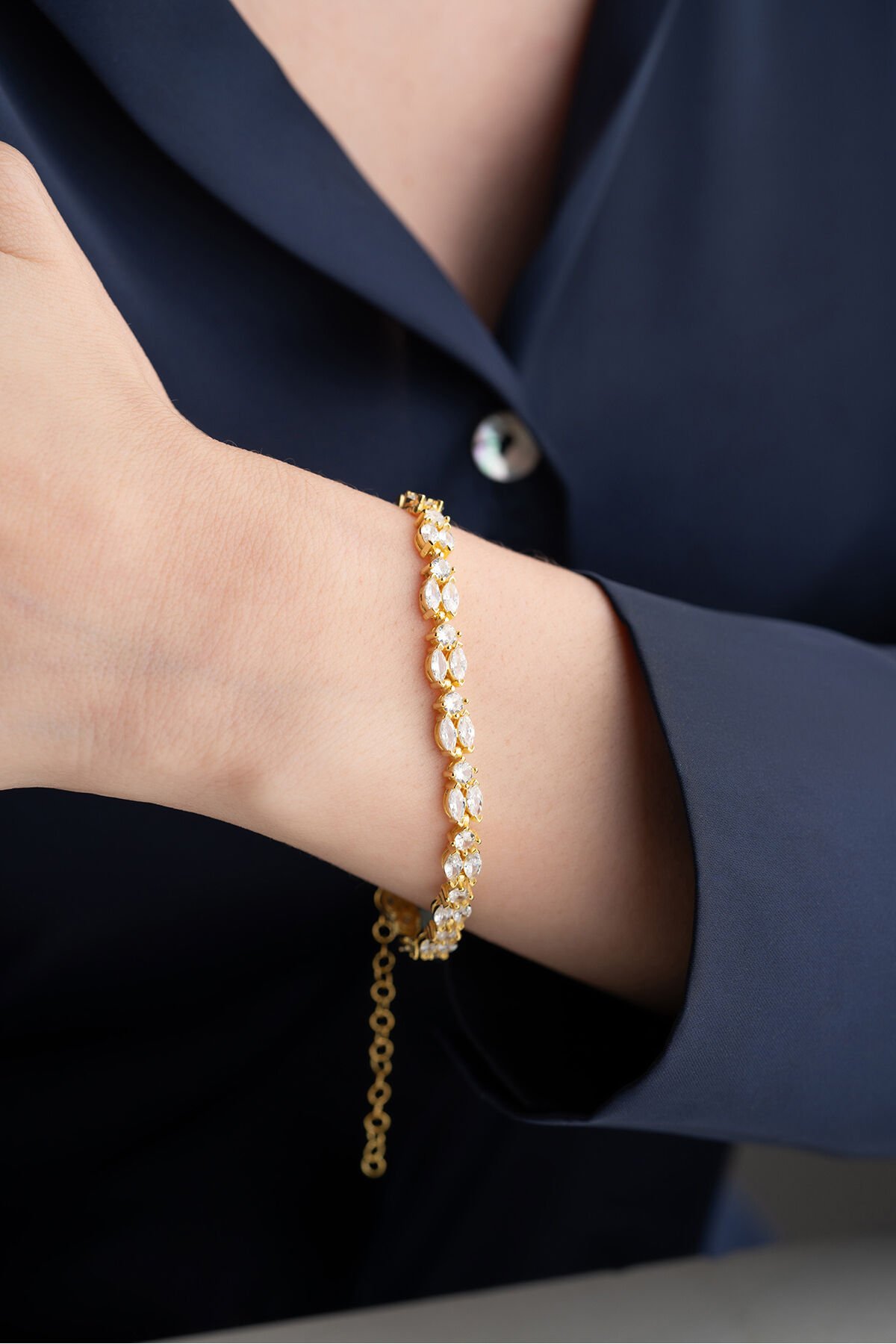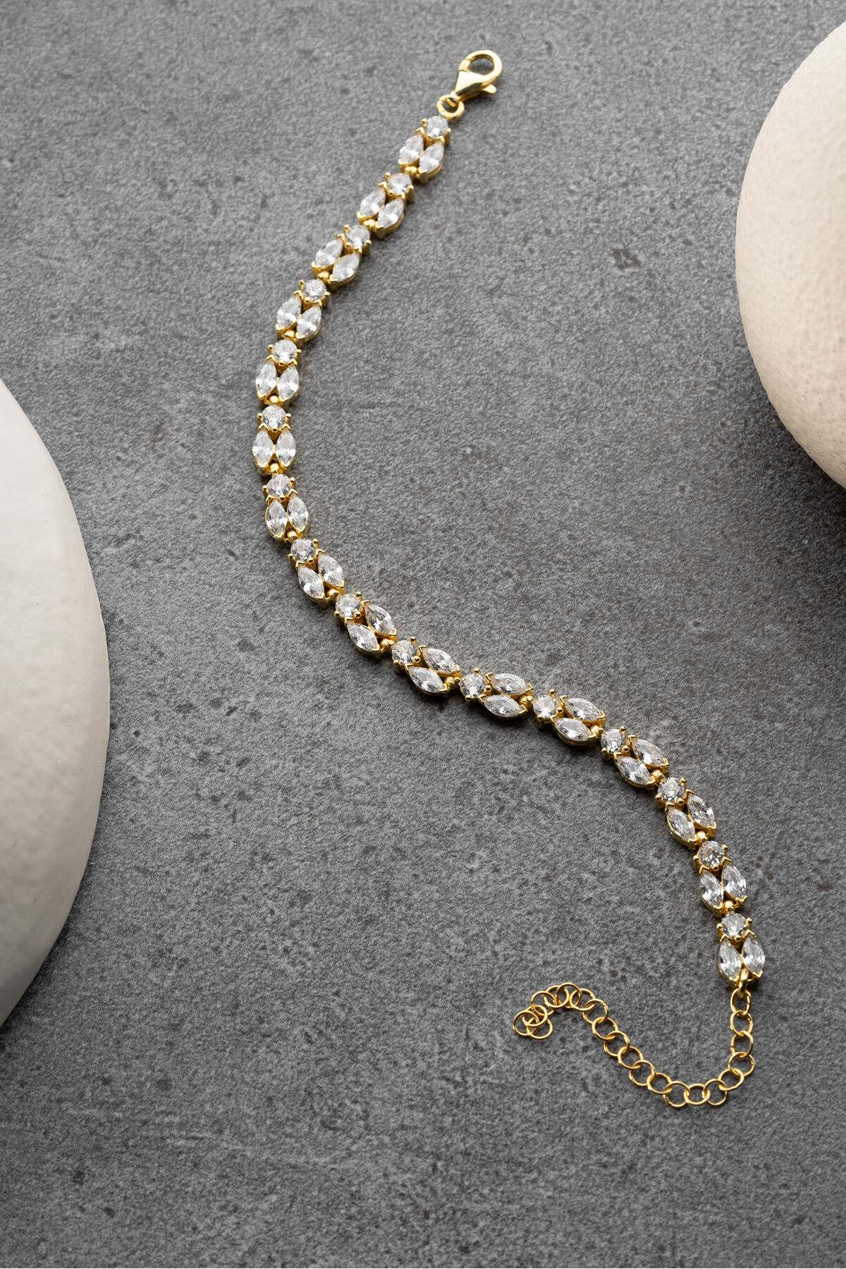 925 Ayar Gümüş Gold Mekik Taşlı Bileklik