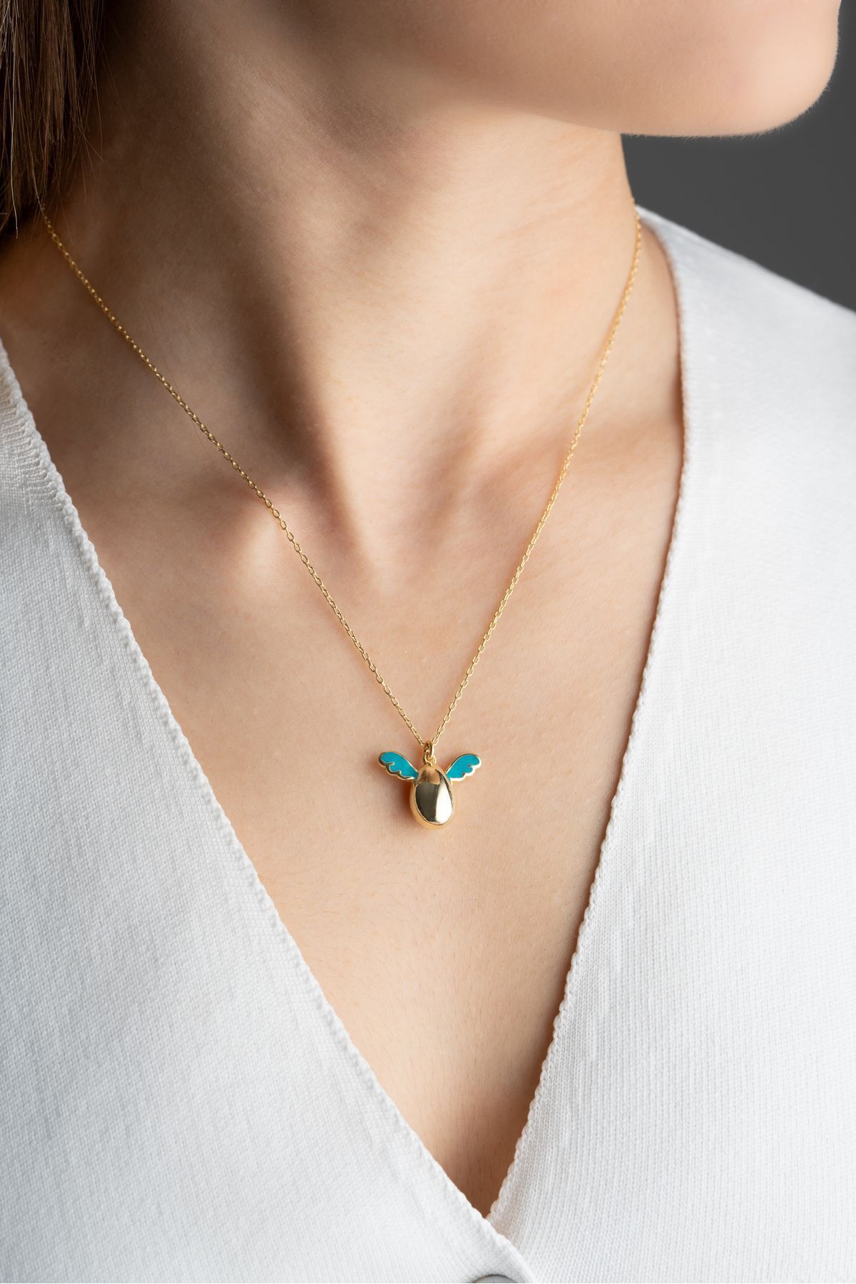 925 Ayar Gümüş Gold Melek Kolye