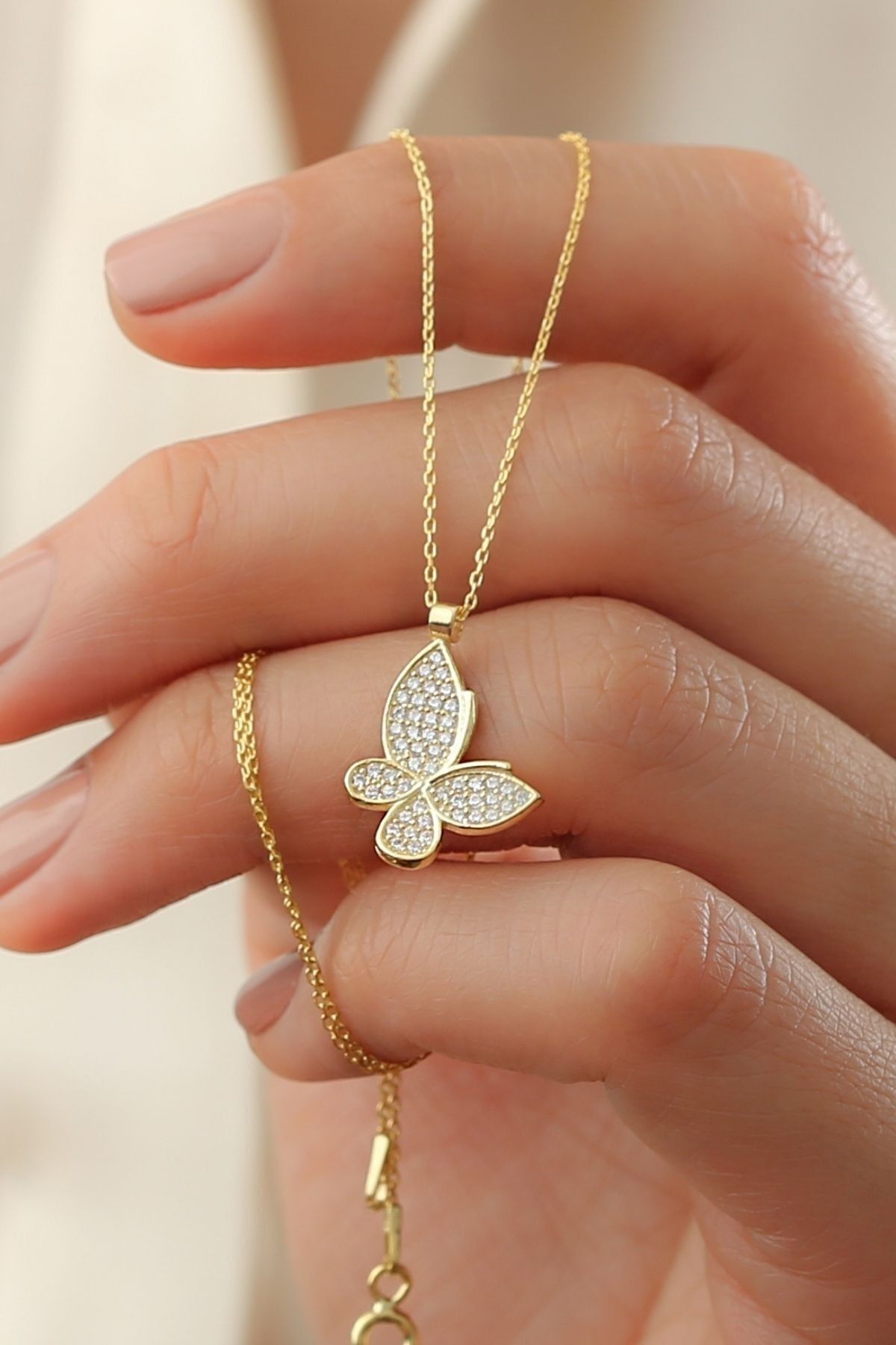 925 Ayar Gümüş Gold Minimal Kelebek Kolye
