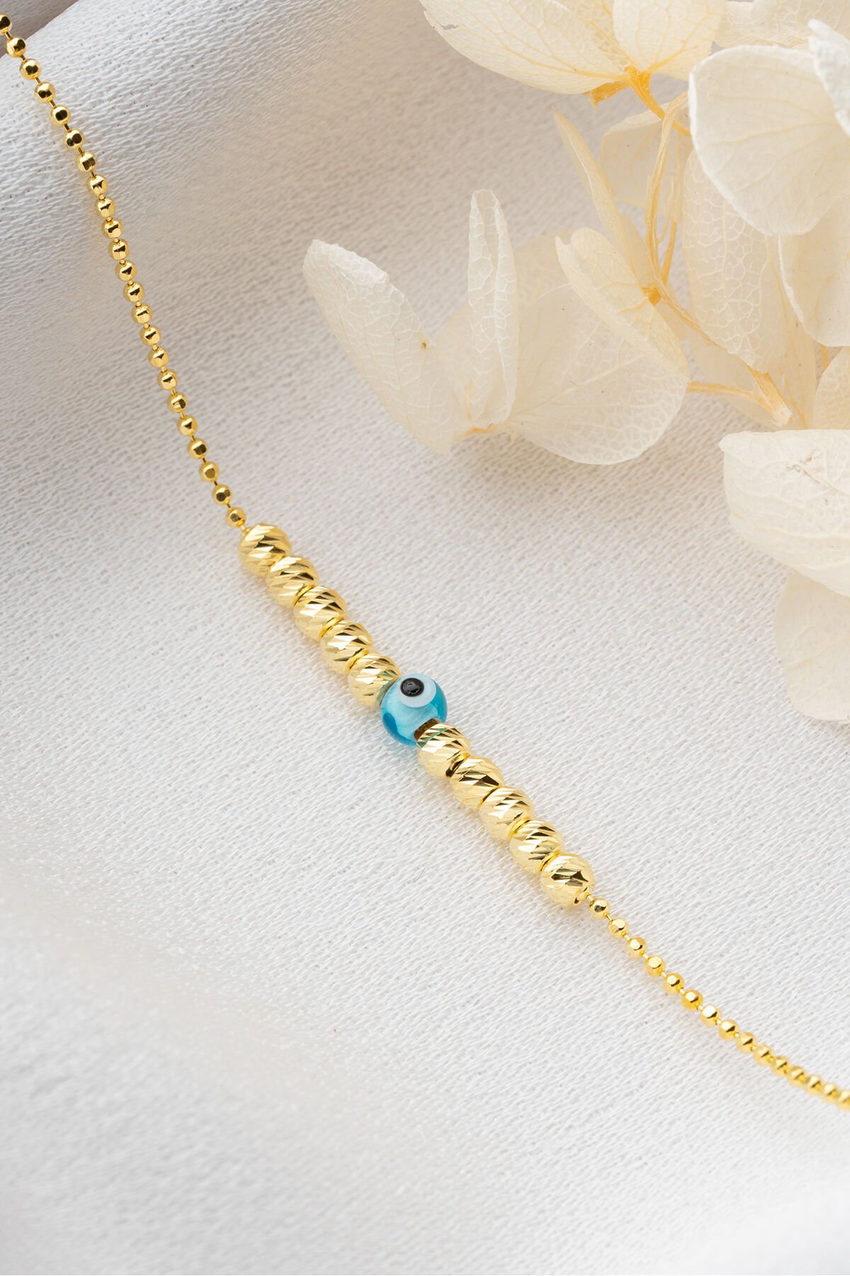 925 Ayar Gümüş Gold Nazar Boncuklu Dorika Bileklik