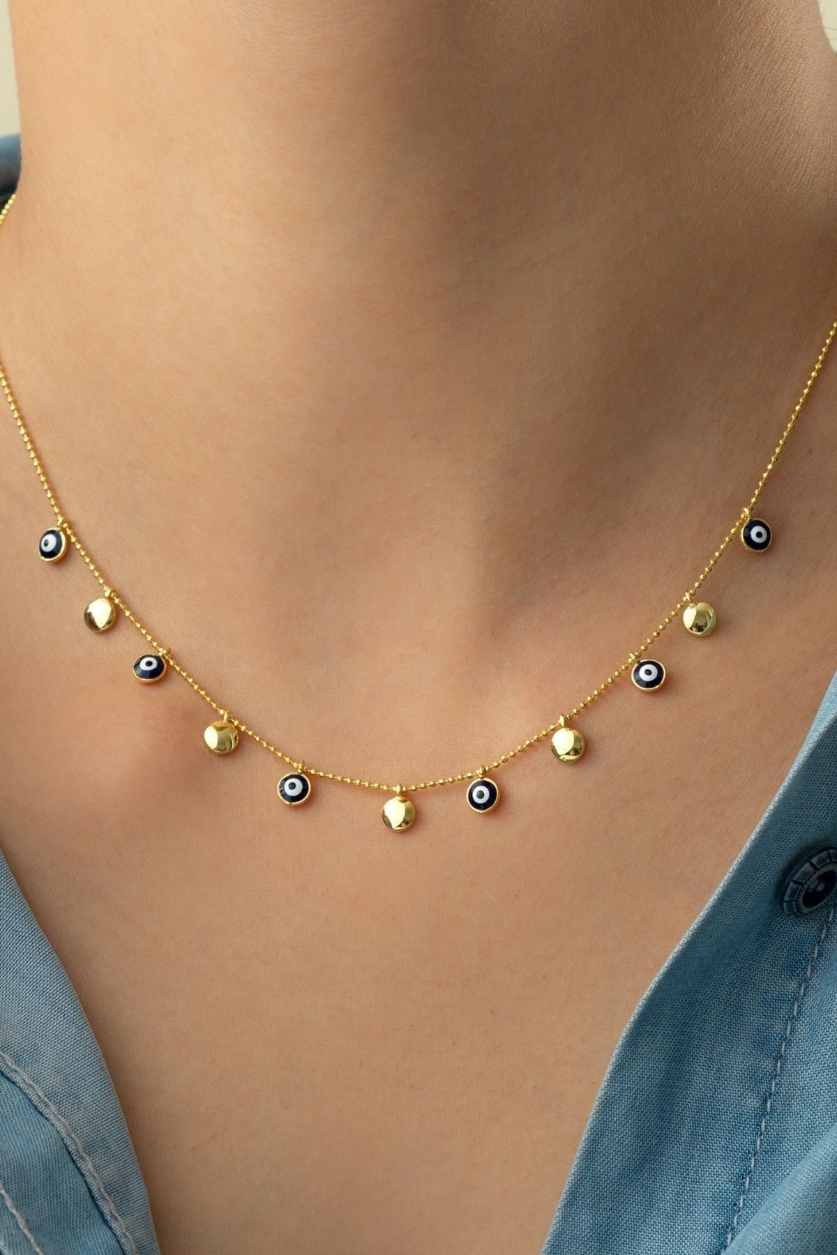 925 Ayar Gümüş Gold Nazarlı Şans Kolye