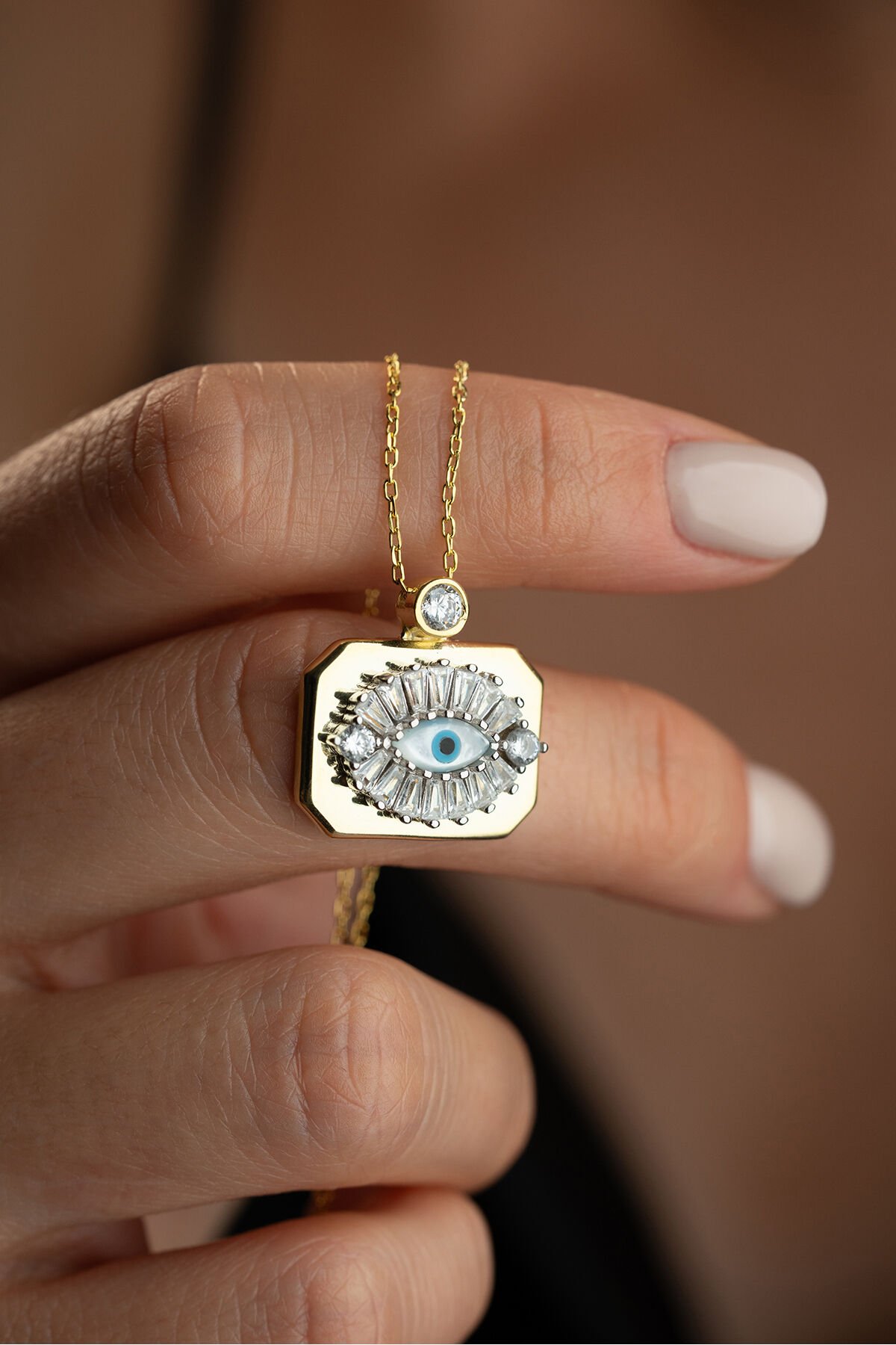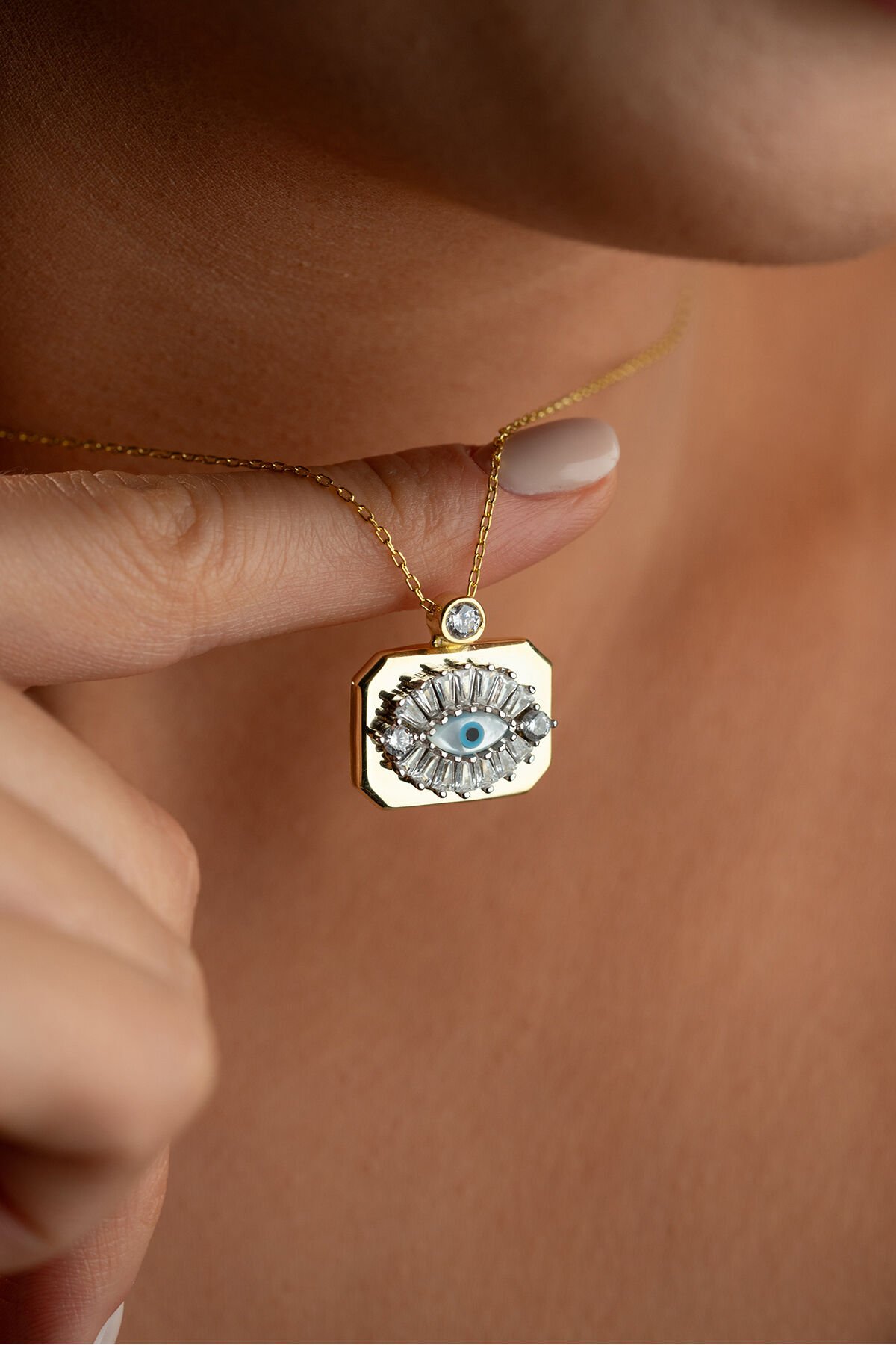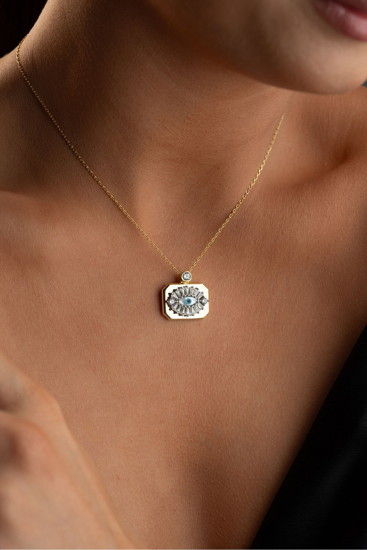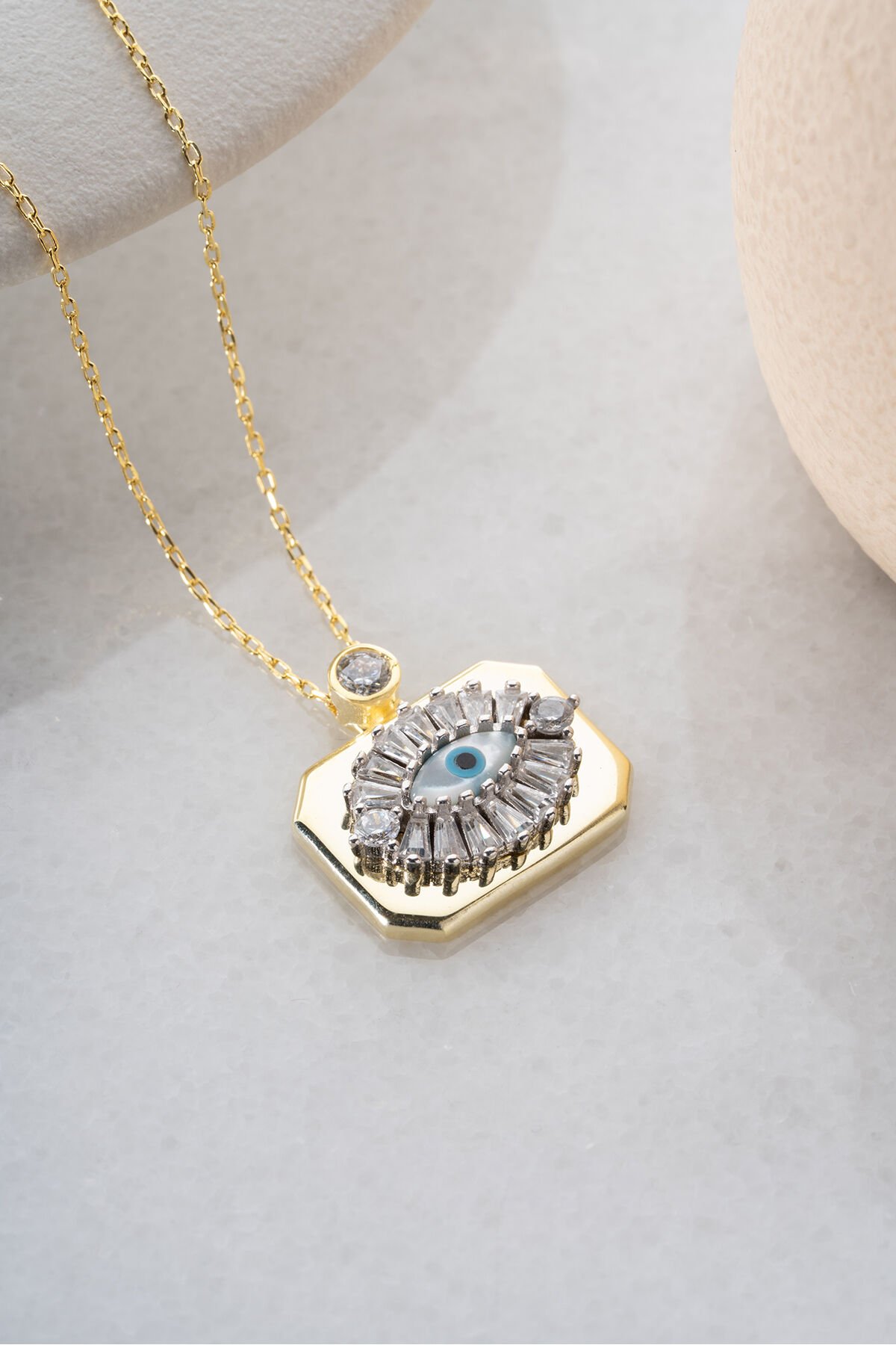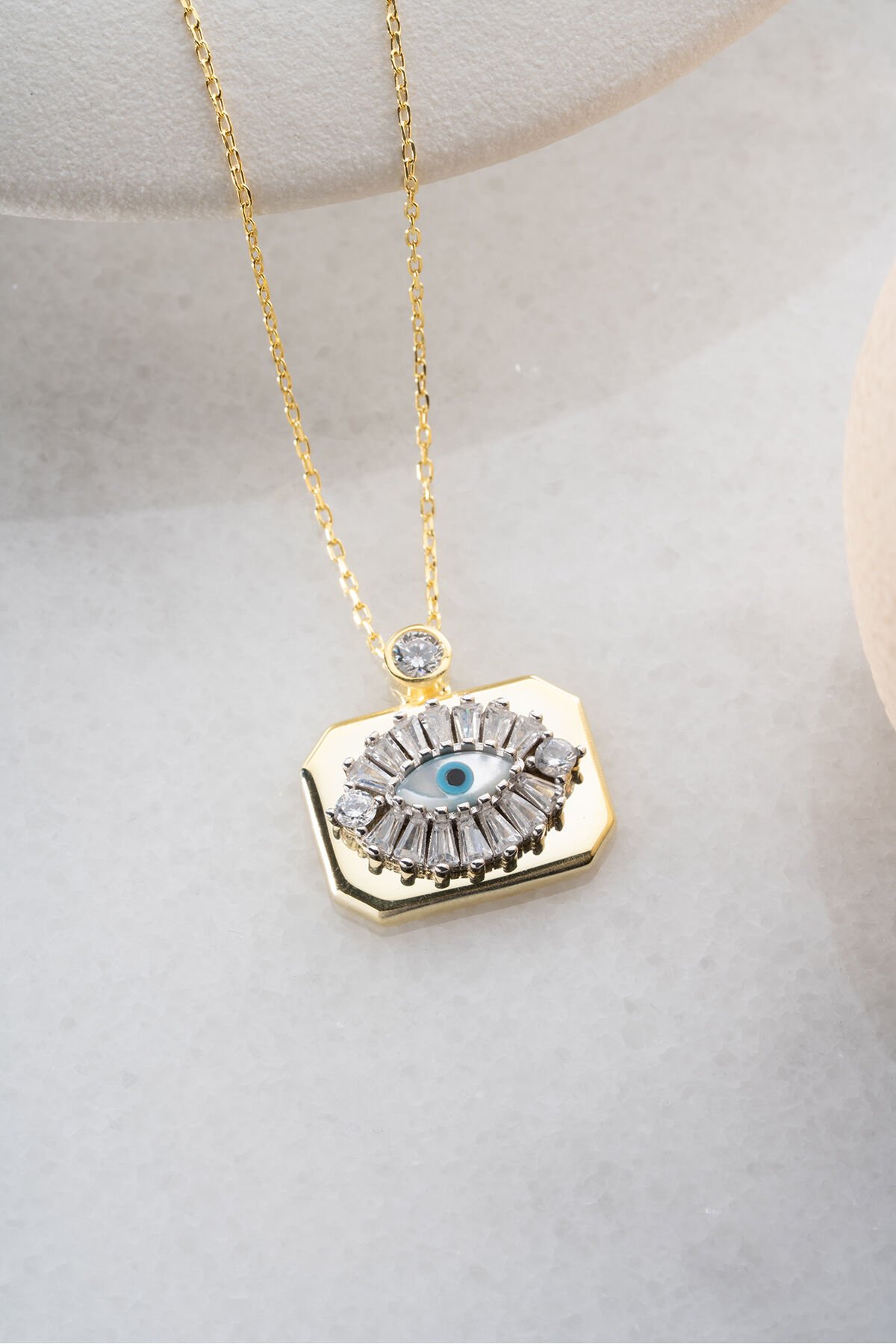 925 Ayar Gümüş Gold Plaka Göz Kolye