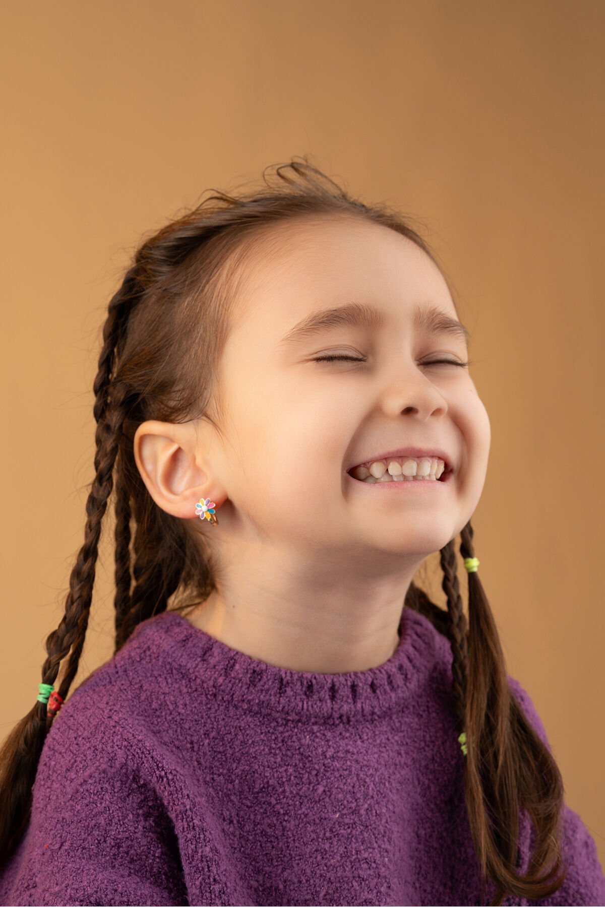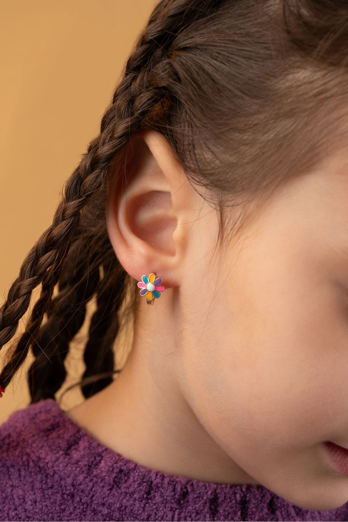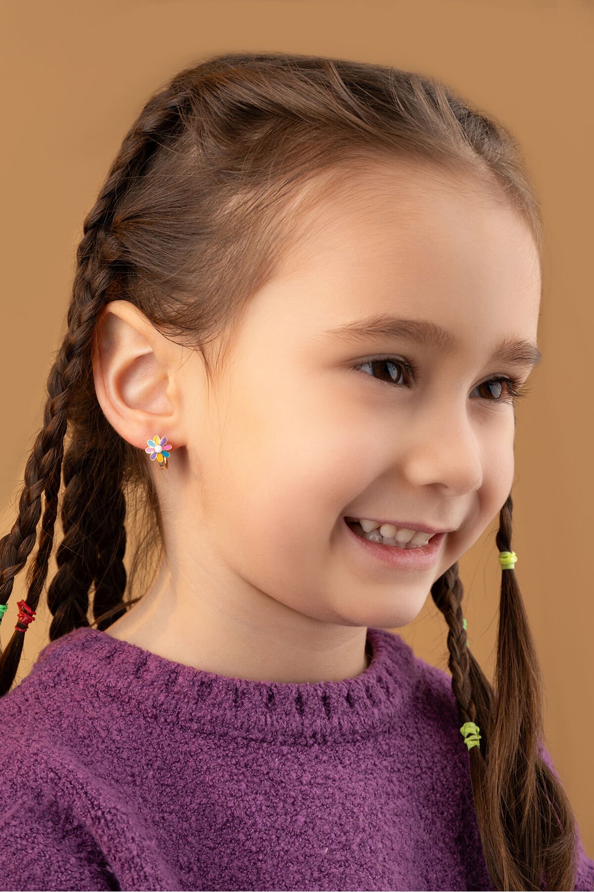 925 Ayar Gümüş Gold Renkli Mineli Papatya Çocuk Küpesi